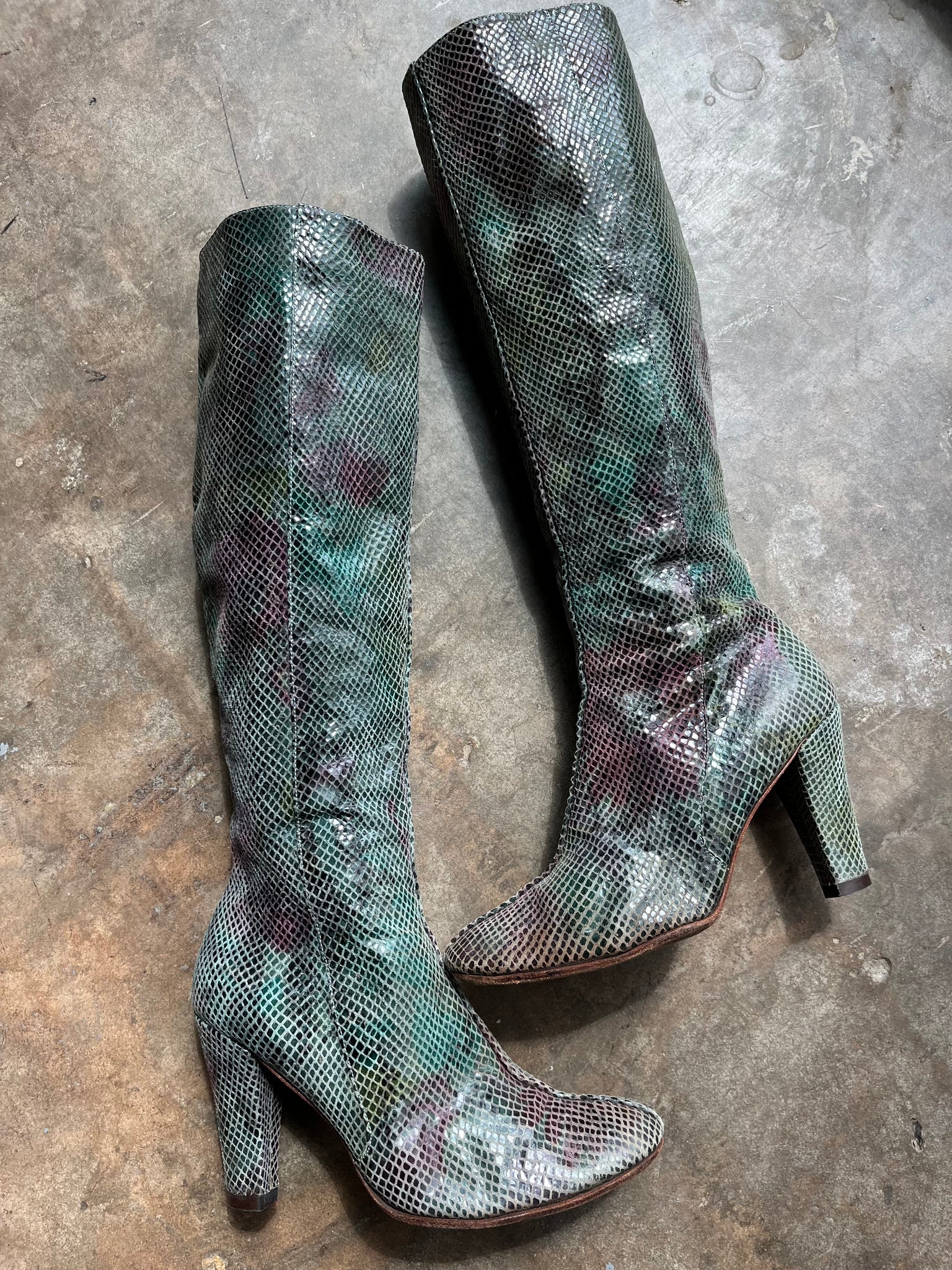 Rare 60s Shimmery Rainbow Snakeskin Knee High Boots