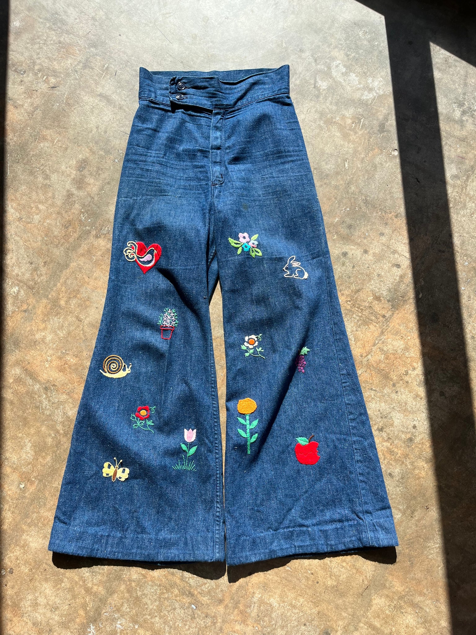 Rare One-Of-A-Kind Wrangler Embroidered High Waist Denim Elephant Ear Bell Bottoms