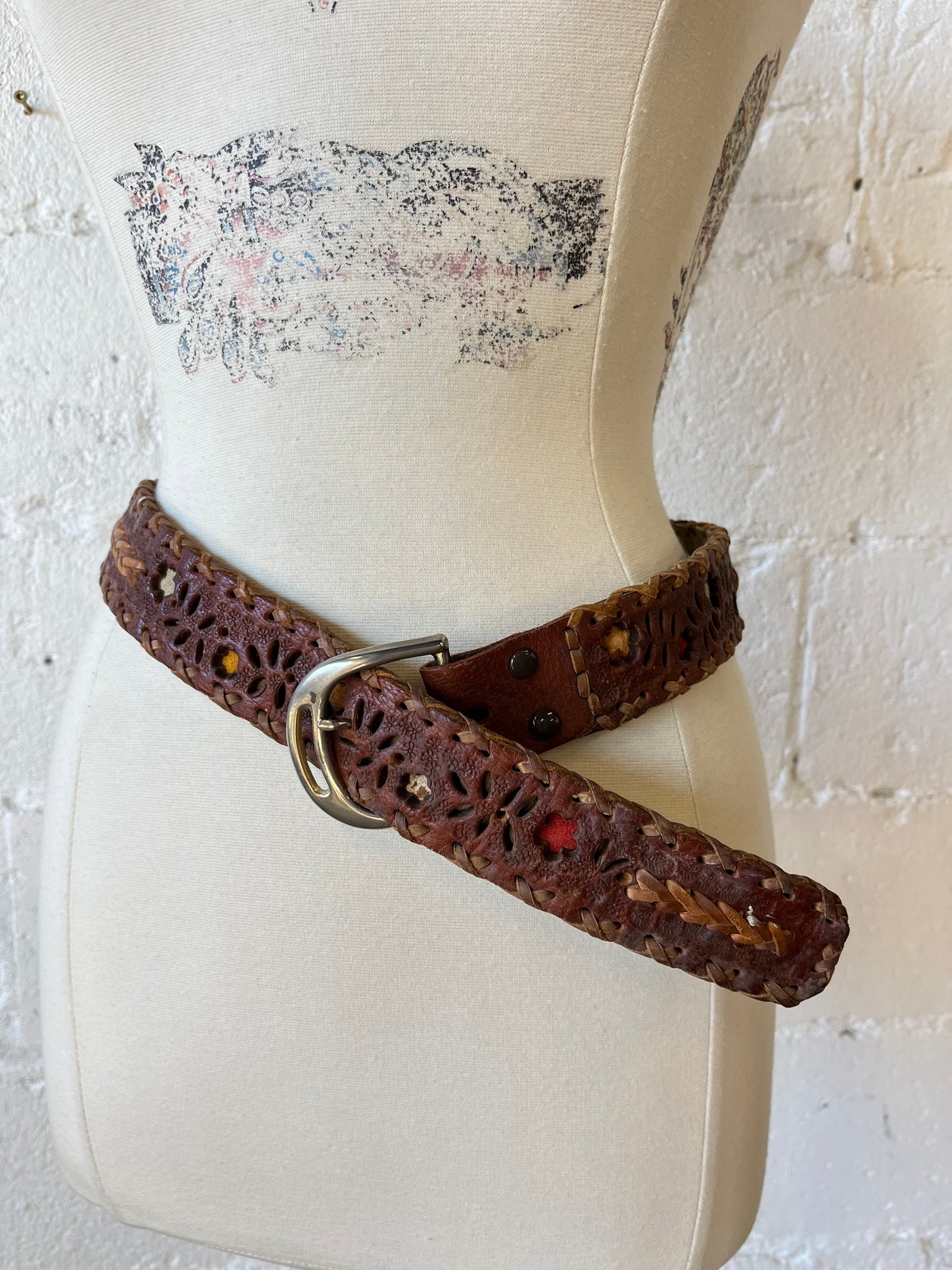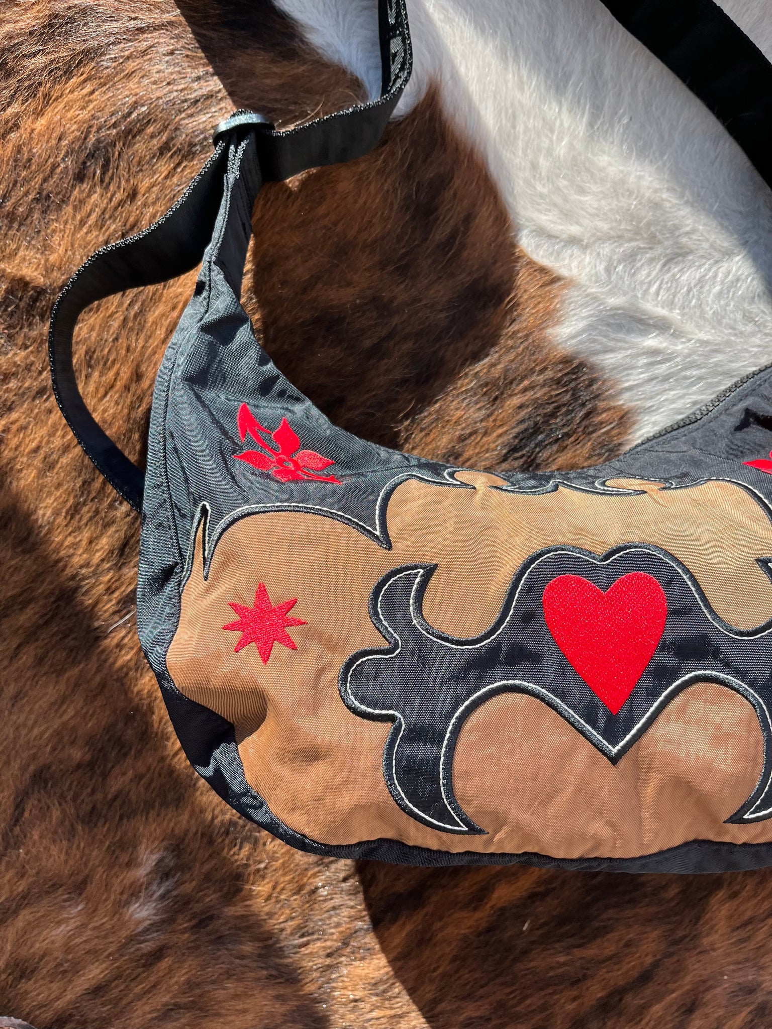80s Patchwork Multicolored Fringe Purse with Concho Accent