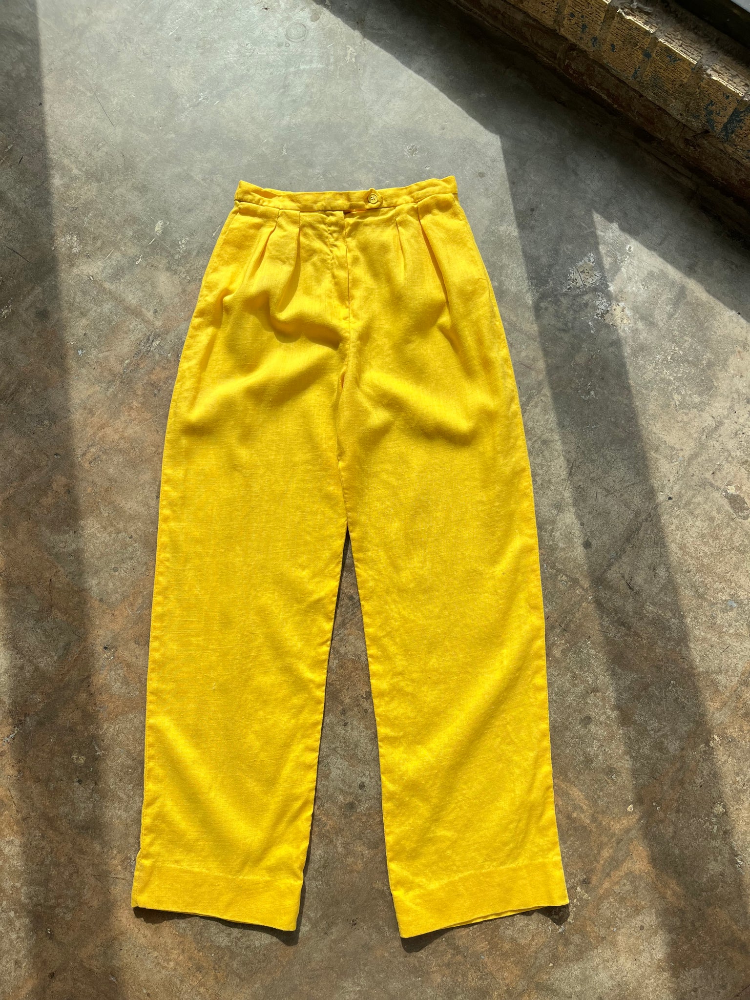 80s Yellow Linen Blend High Waist Trousers