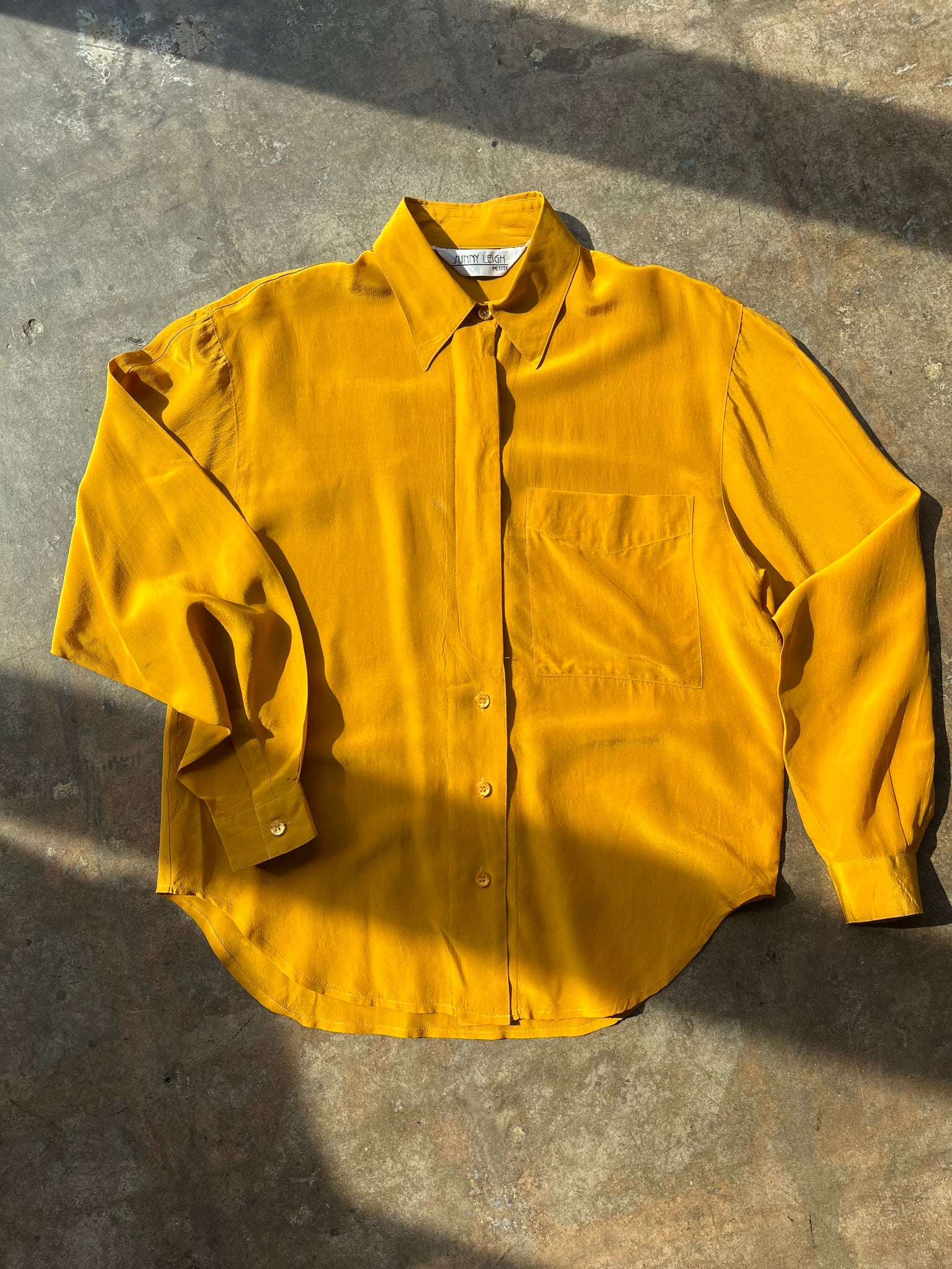 90s Mustard Silk Button Down Top