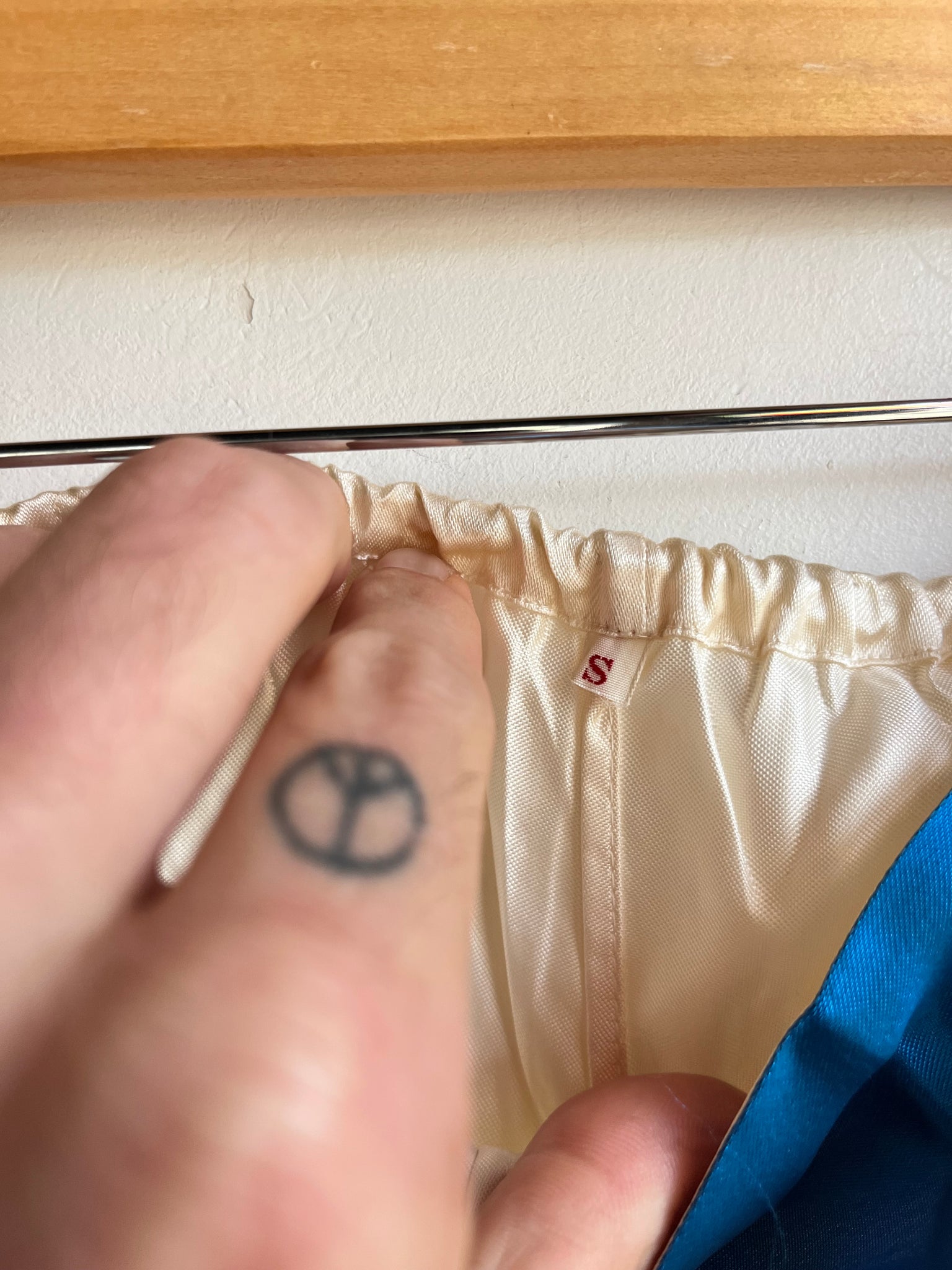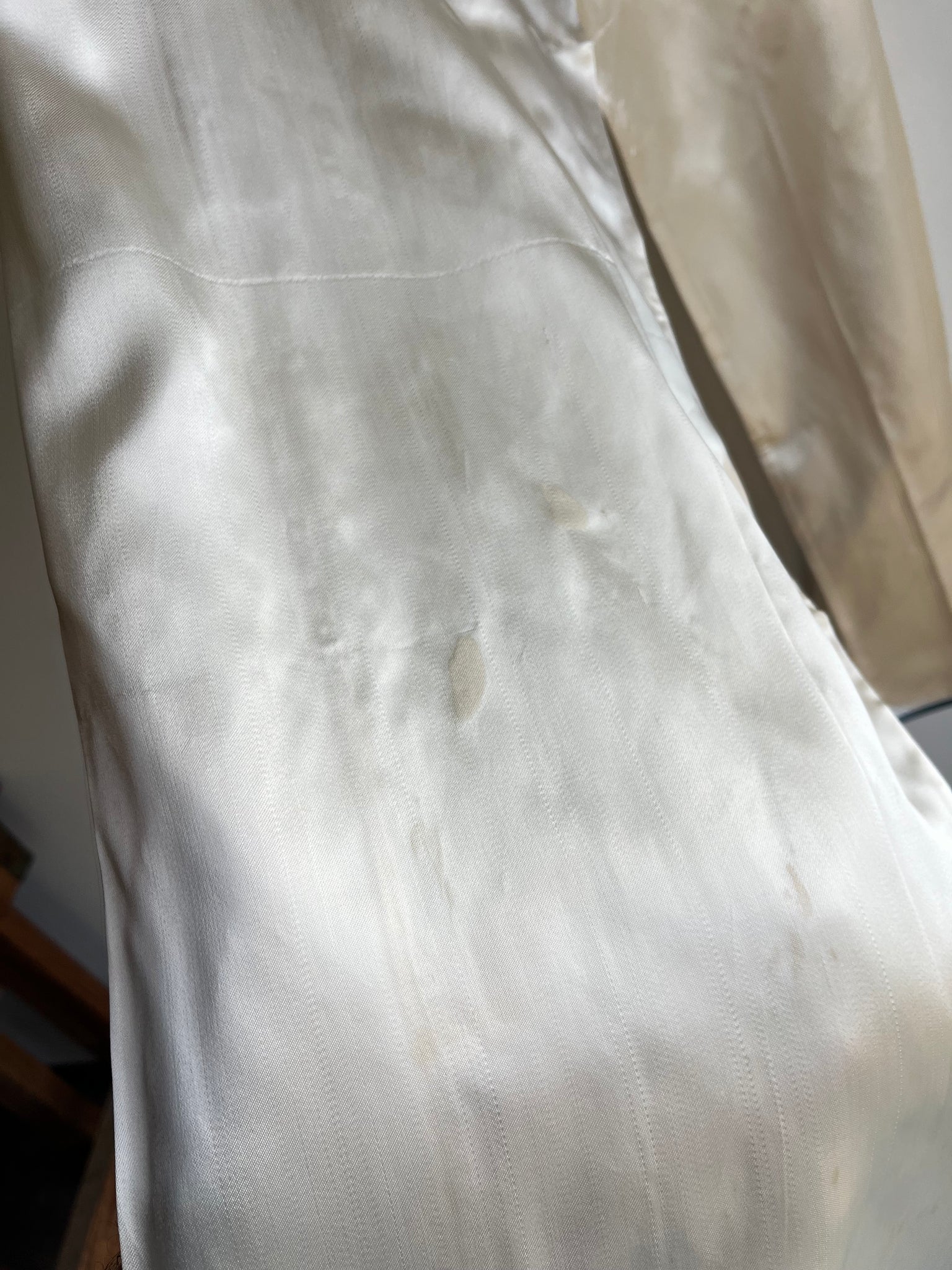 Condition: Very Good wearable condition, no holes or stains noted, the elastic on the back still has some stretch, but could be replaced if you wanted a smaller fit