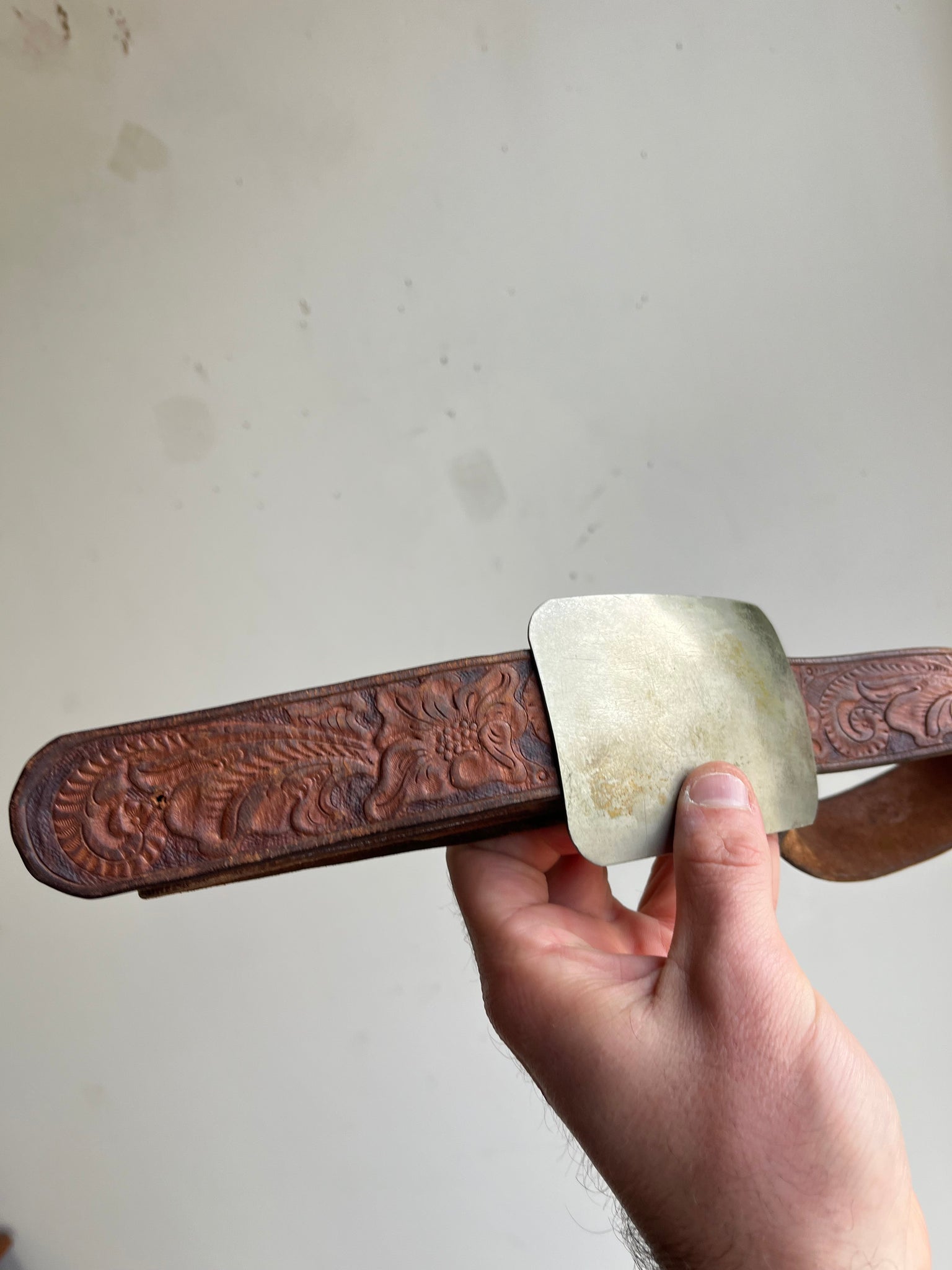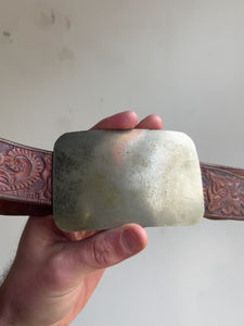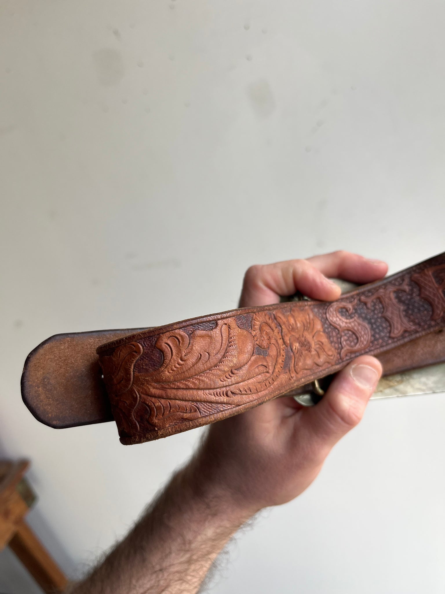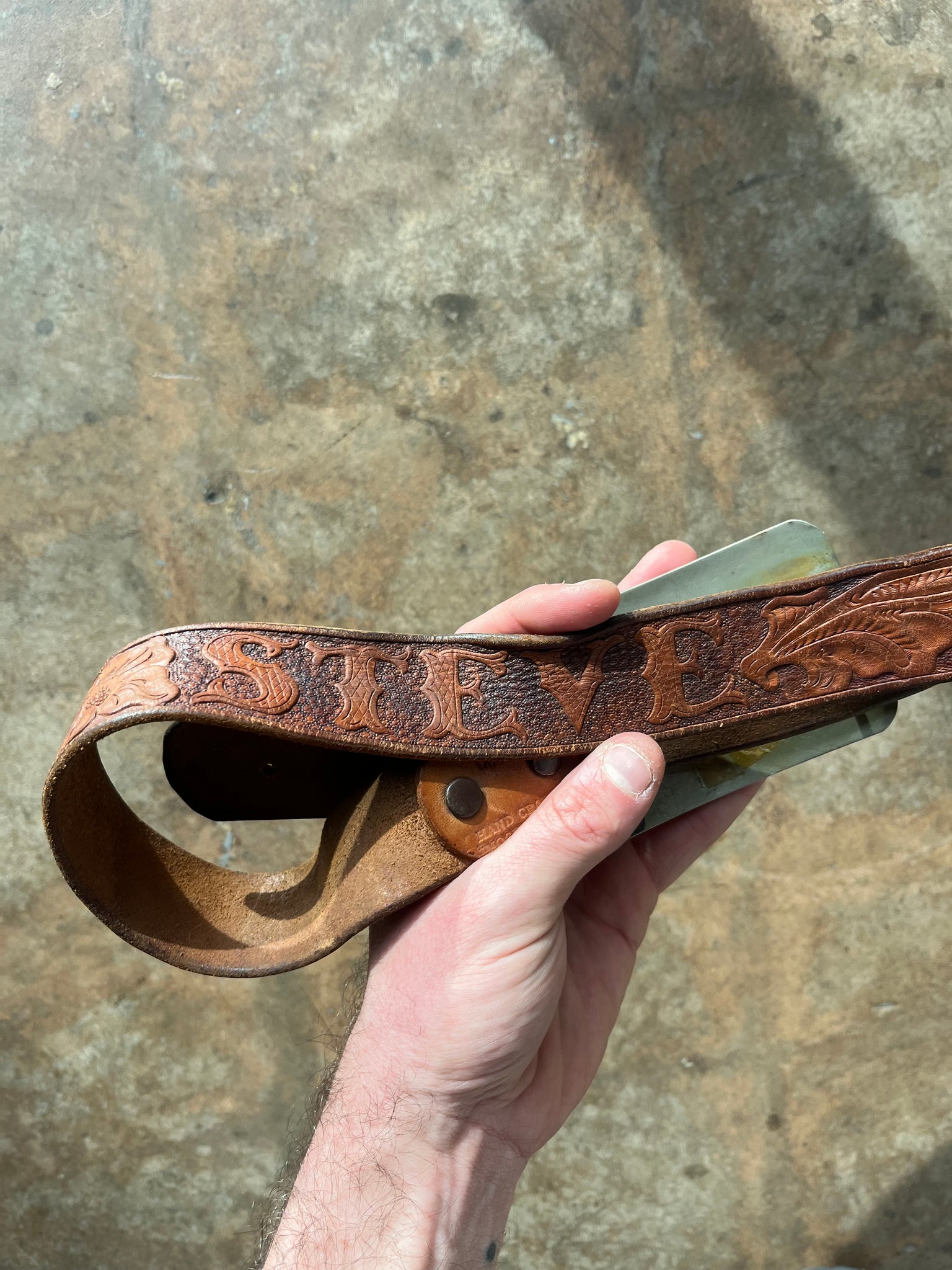 Condition: Very Good usable condition, no holes or stains noted, the back has a little bend to the belt from wearing for decades, but still pliable