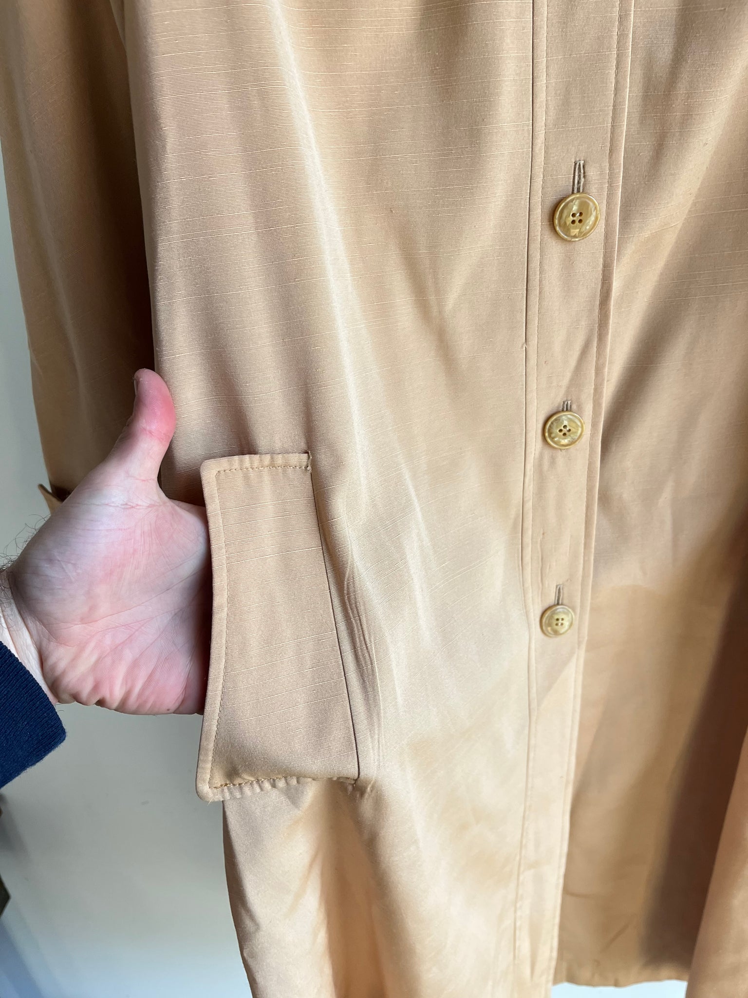 Condition: Very Good wearable condition, no holes or stains noted, it has al the buttons, I believe it has a waist tie at some point, but it still has the belt loops to add a belt