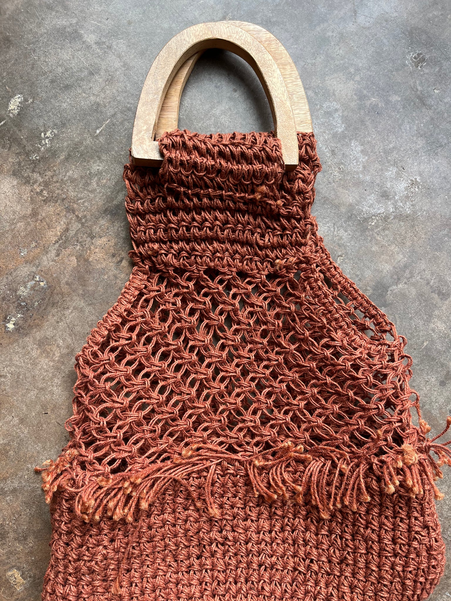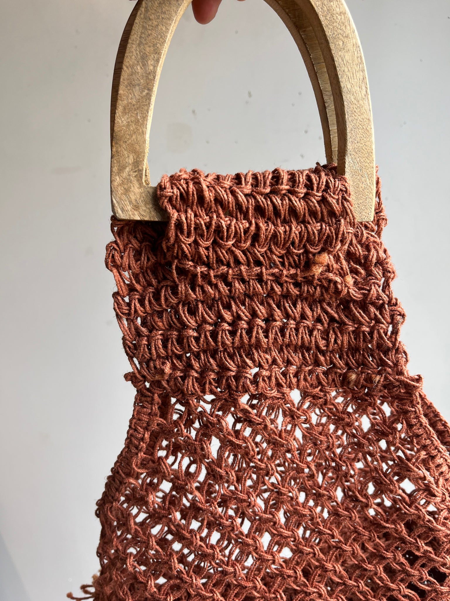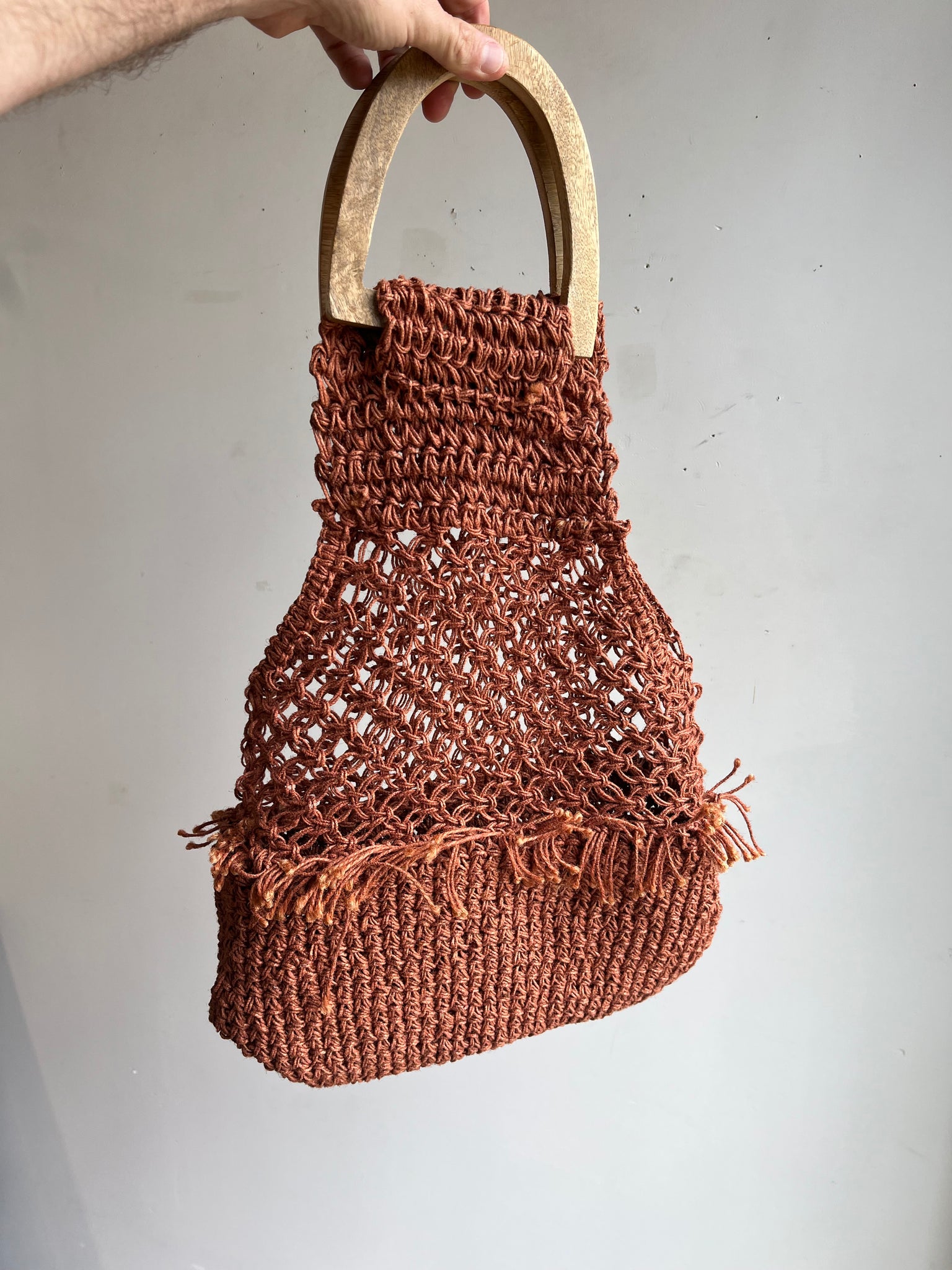 60s Woven Jute and Wood Handle Purse