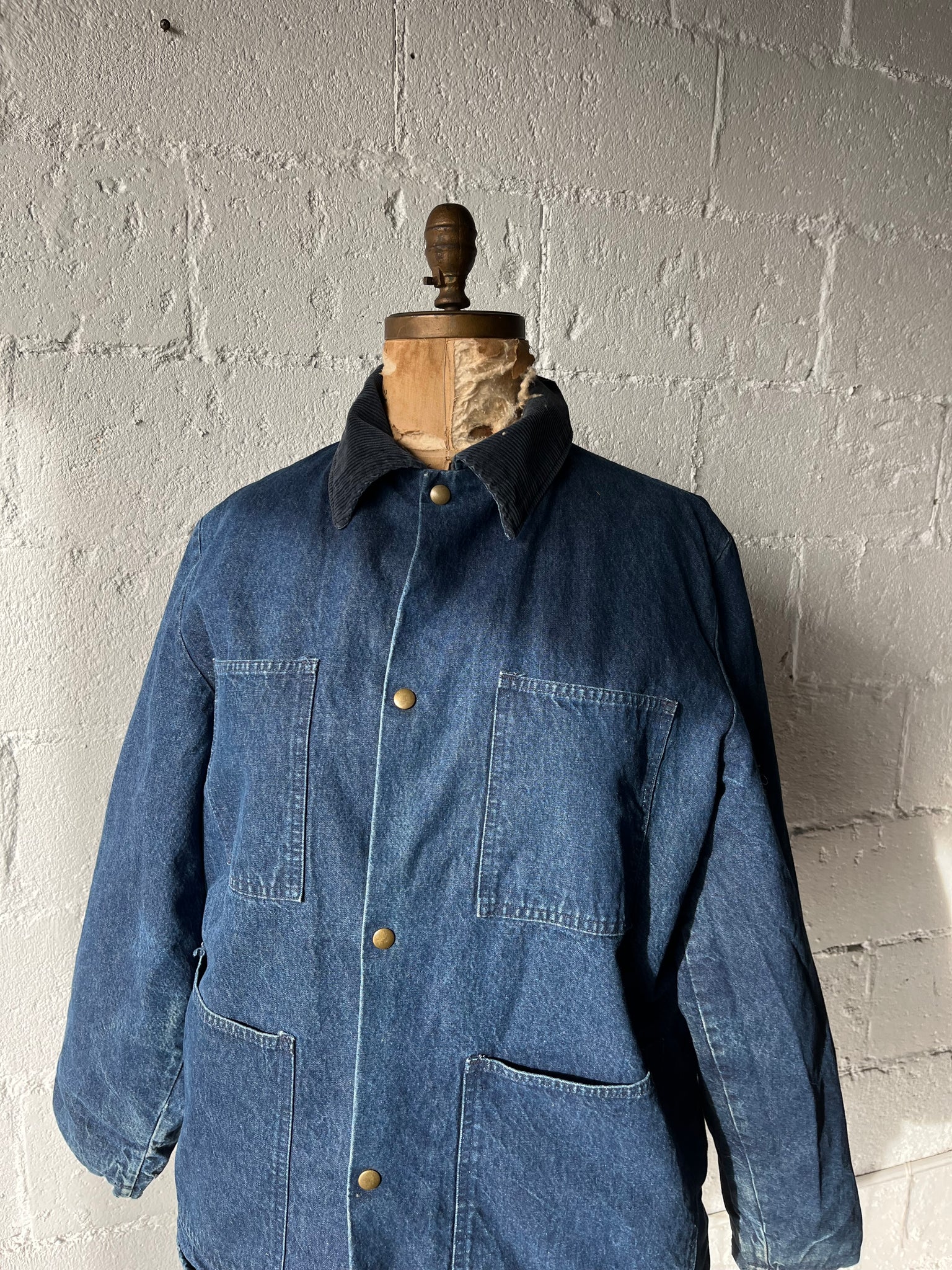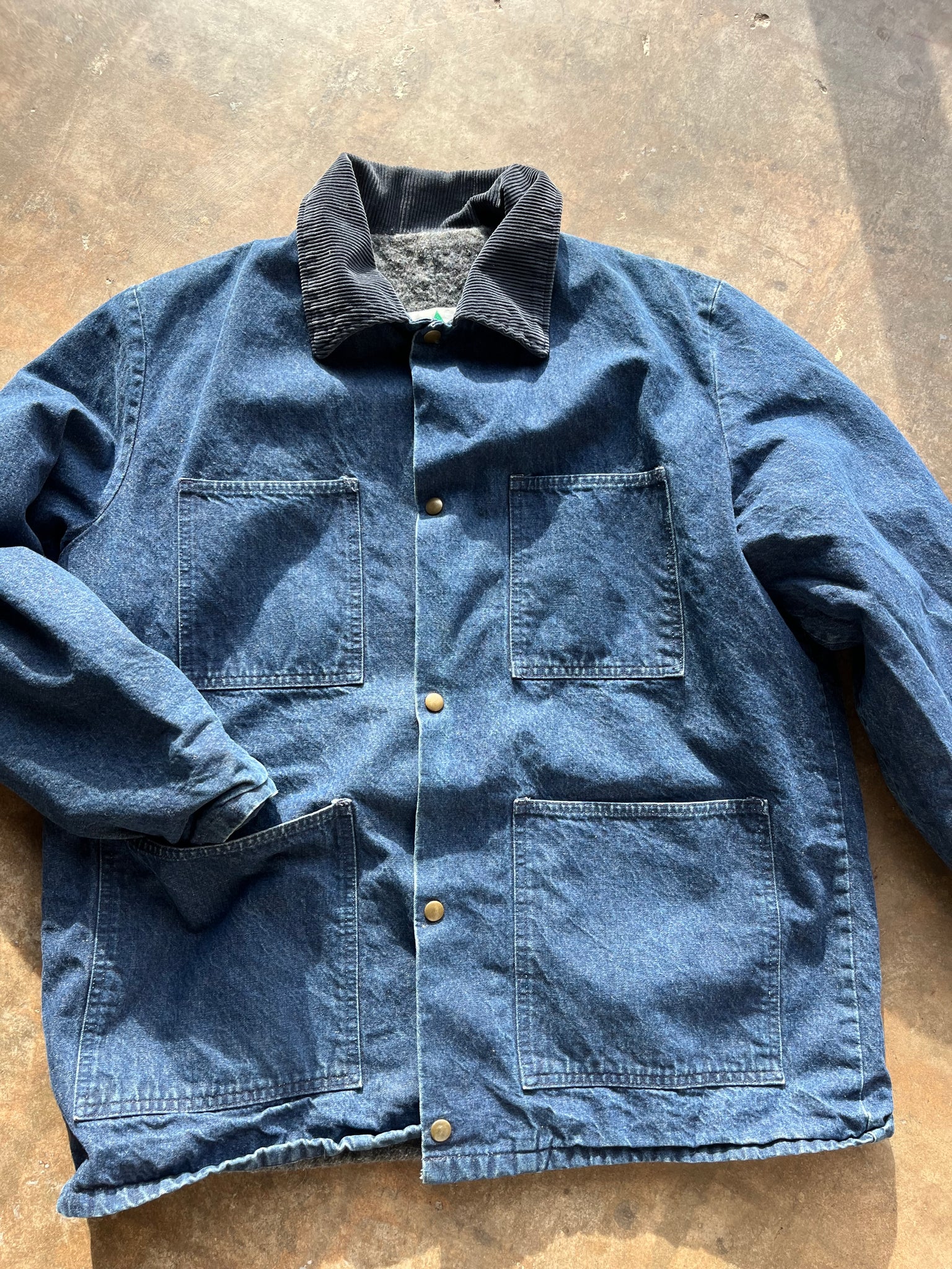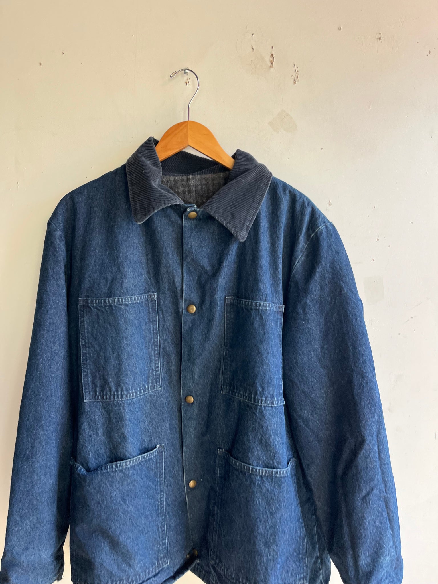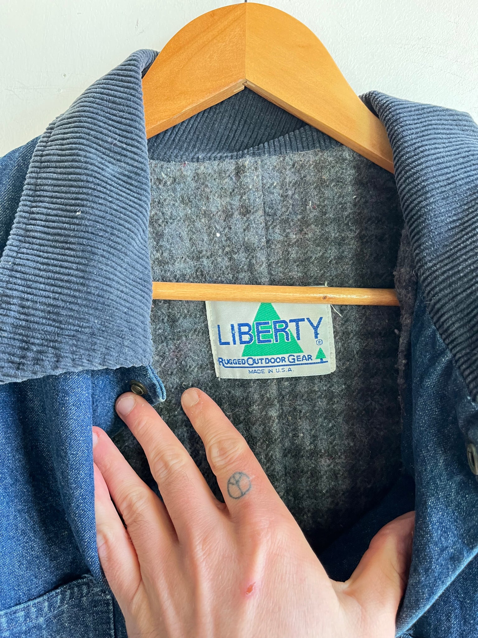 70s Liberty Denim Chore Jacket with Blanket Lining and Corduroy Collar
