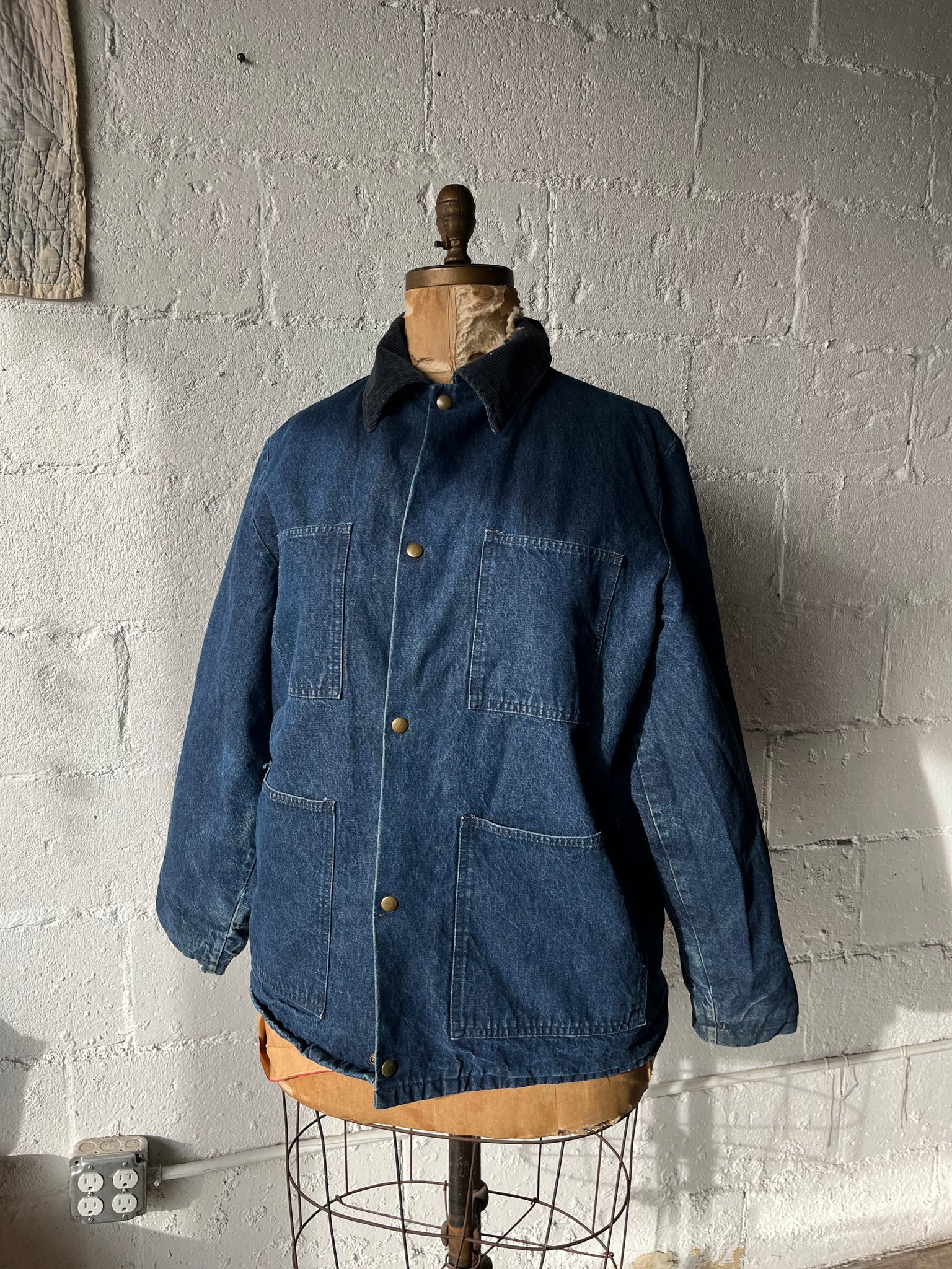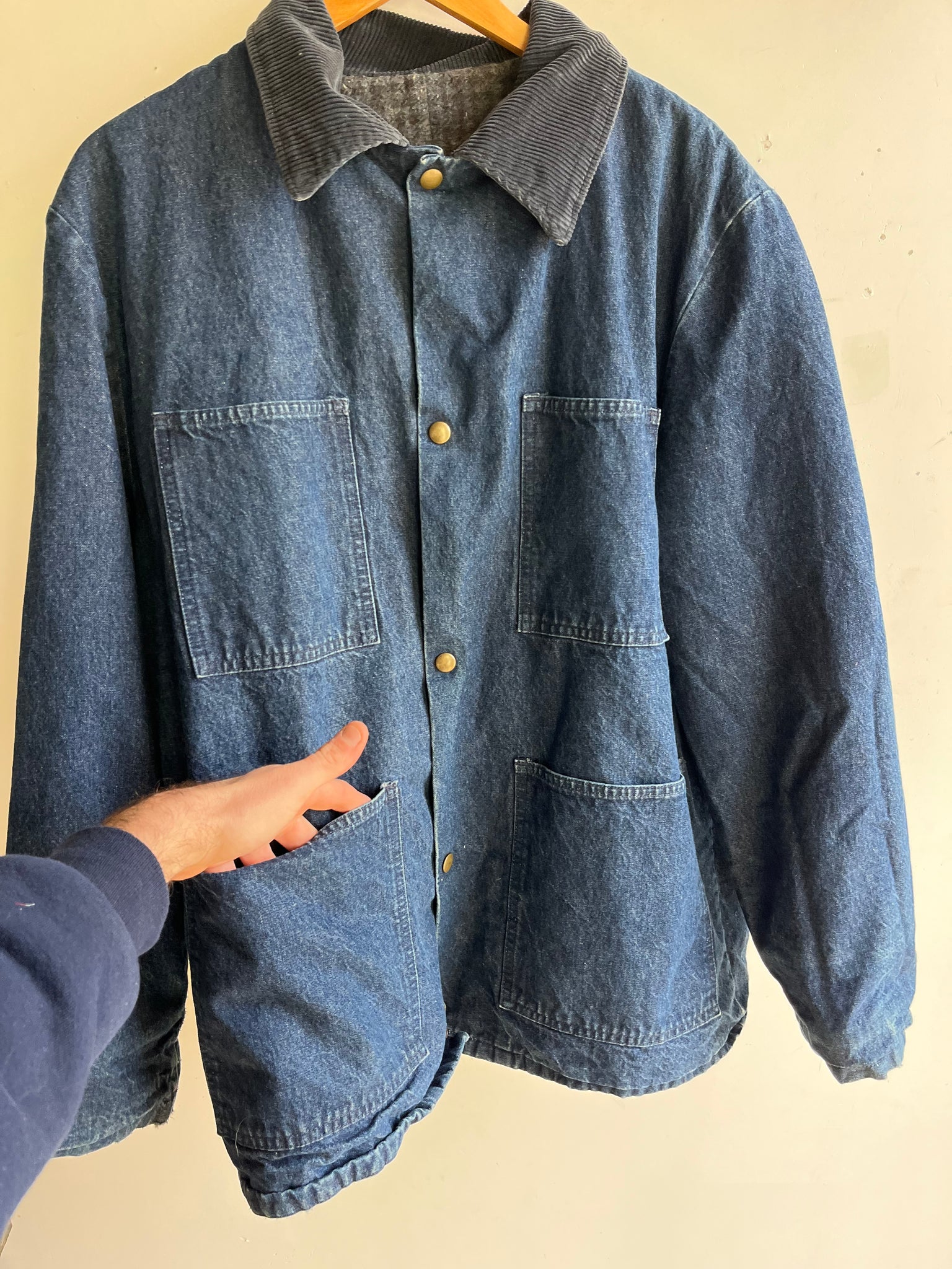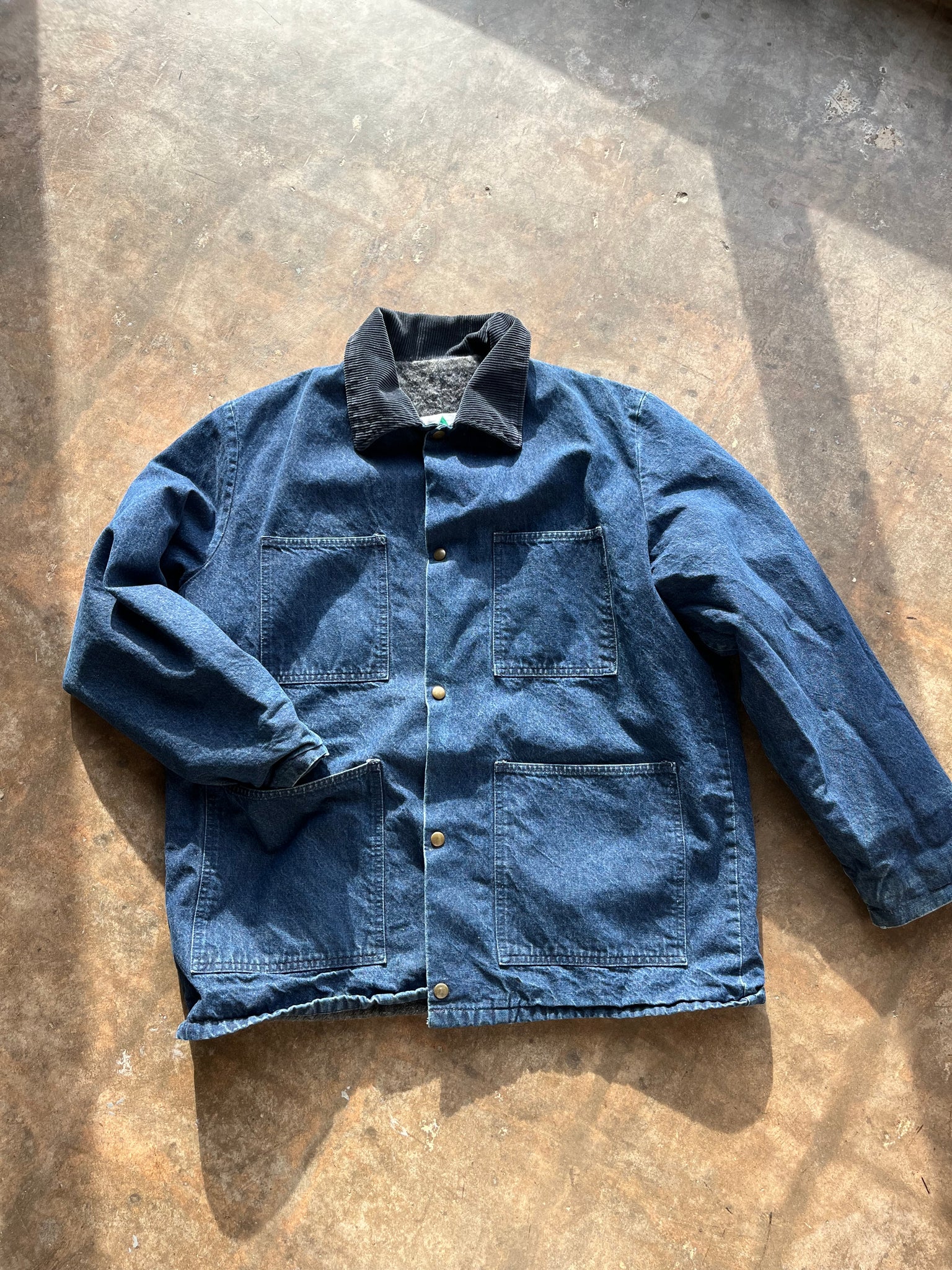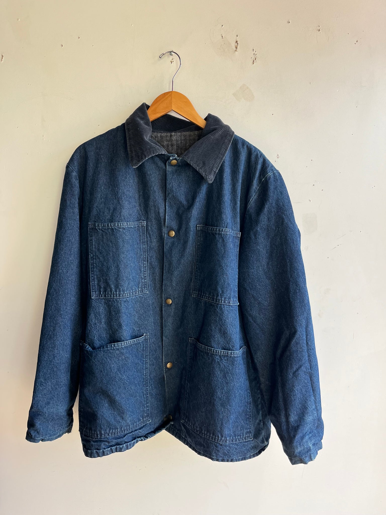 70s Liberty Denim Chore Jacket with Blanket Lining and Corduroy Collar