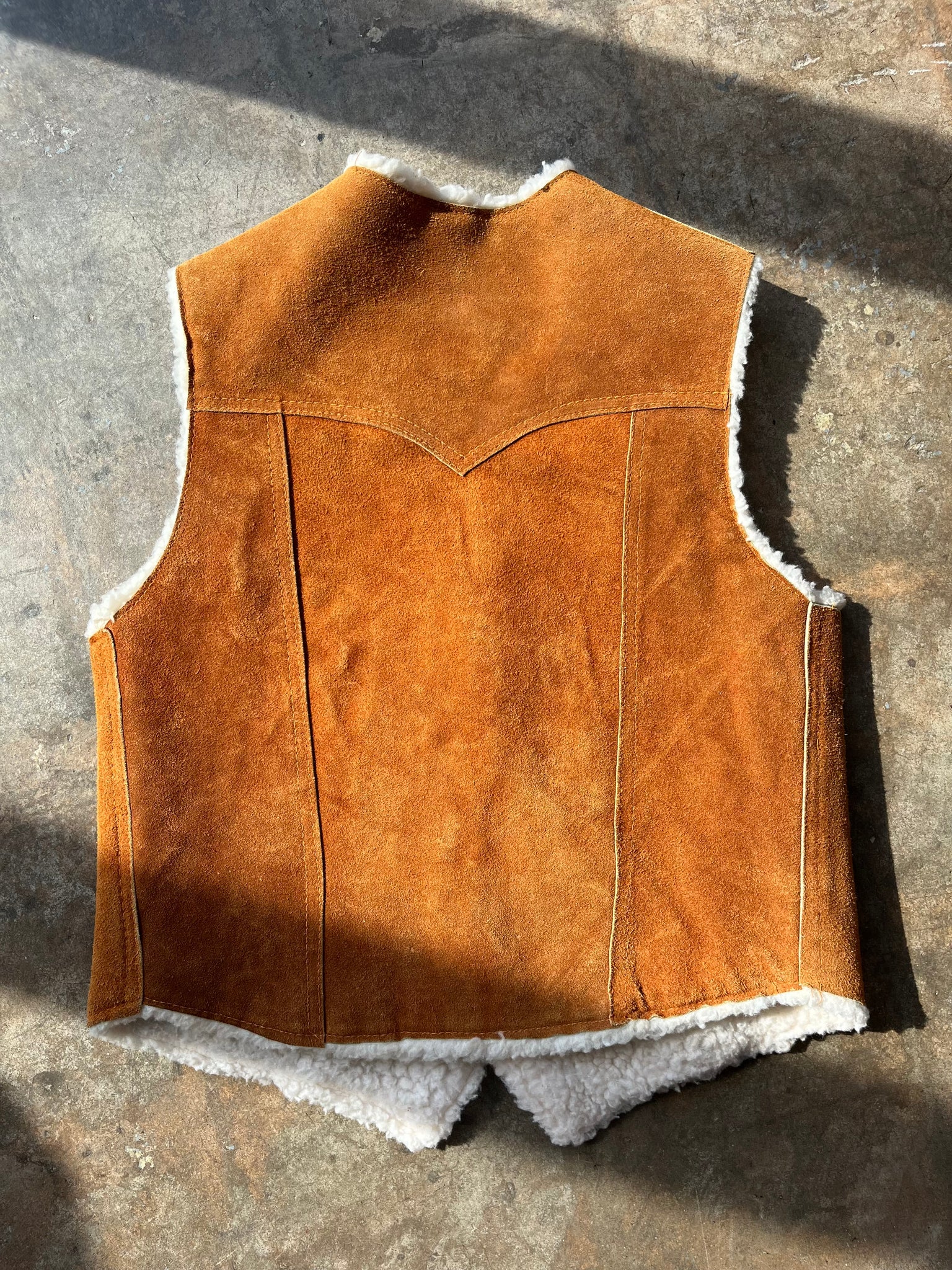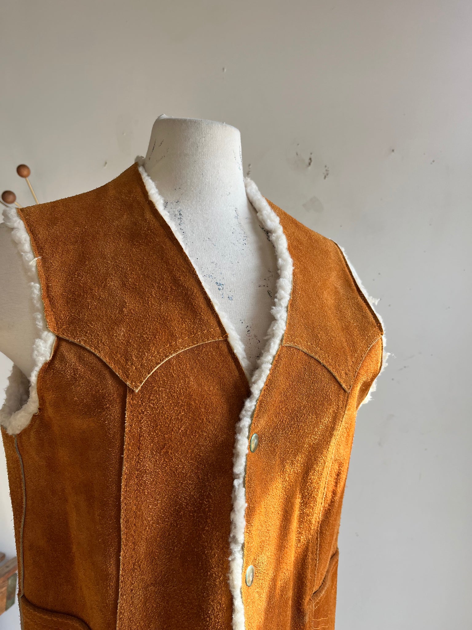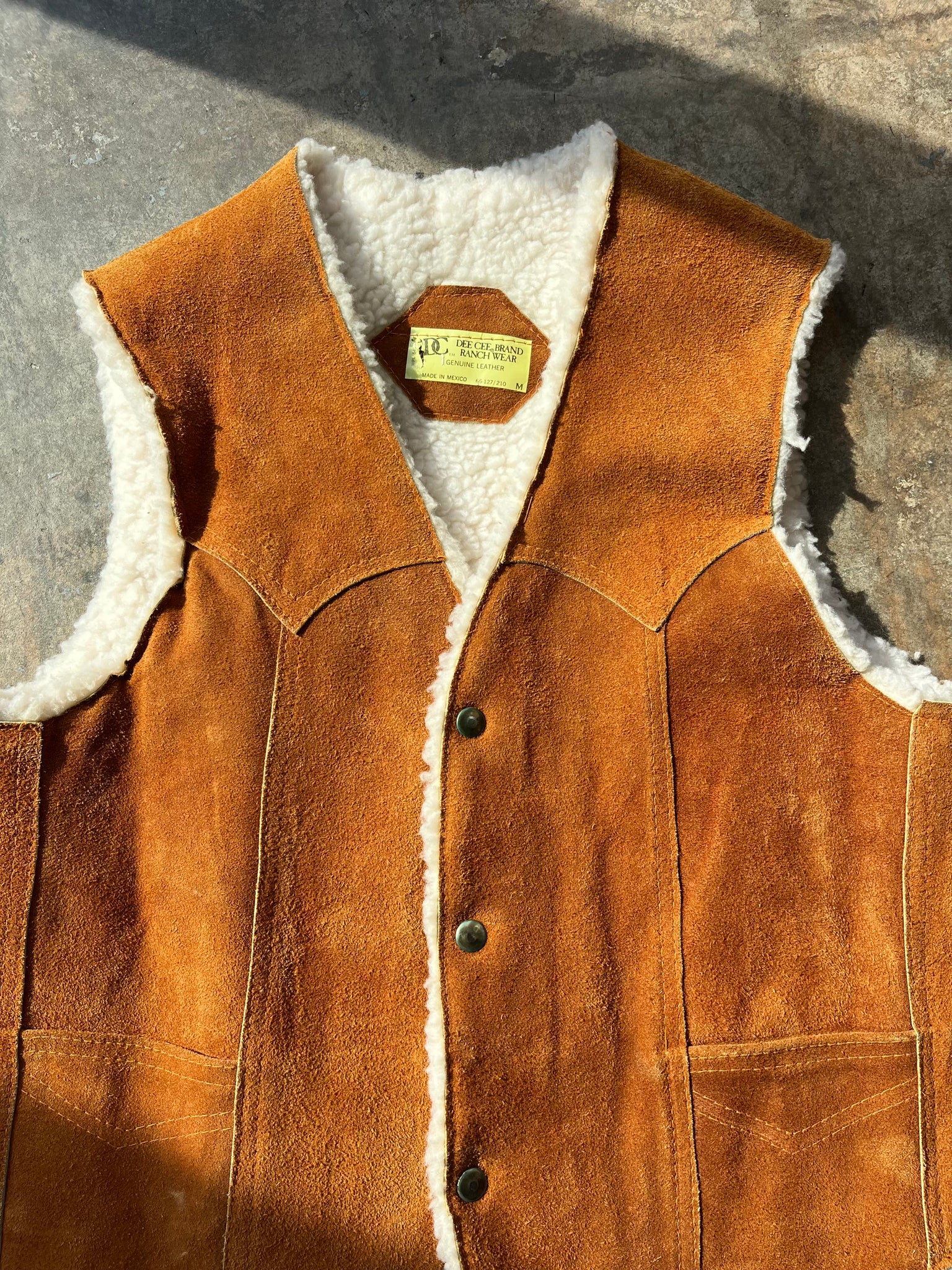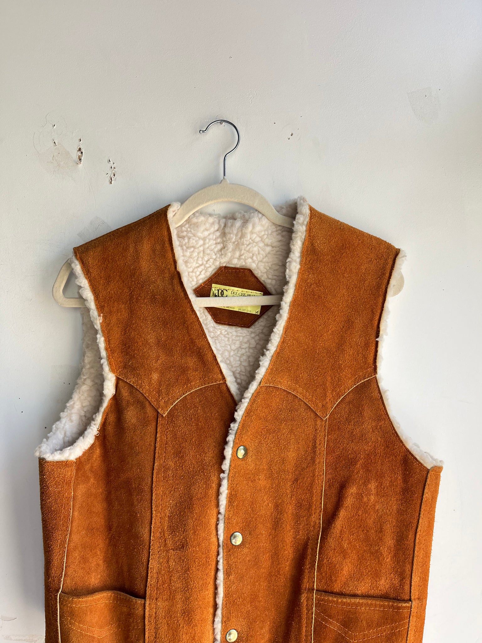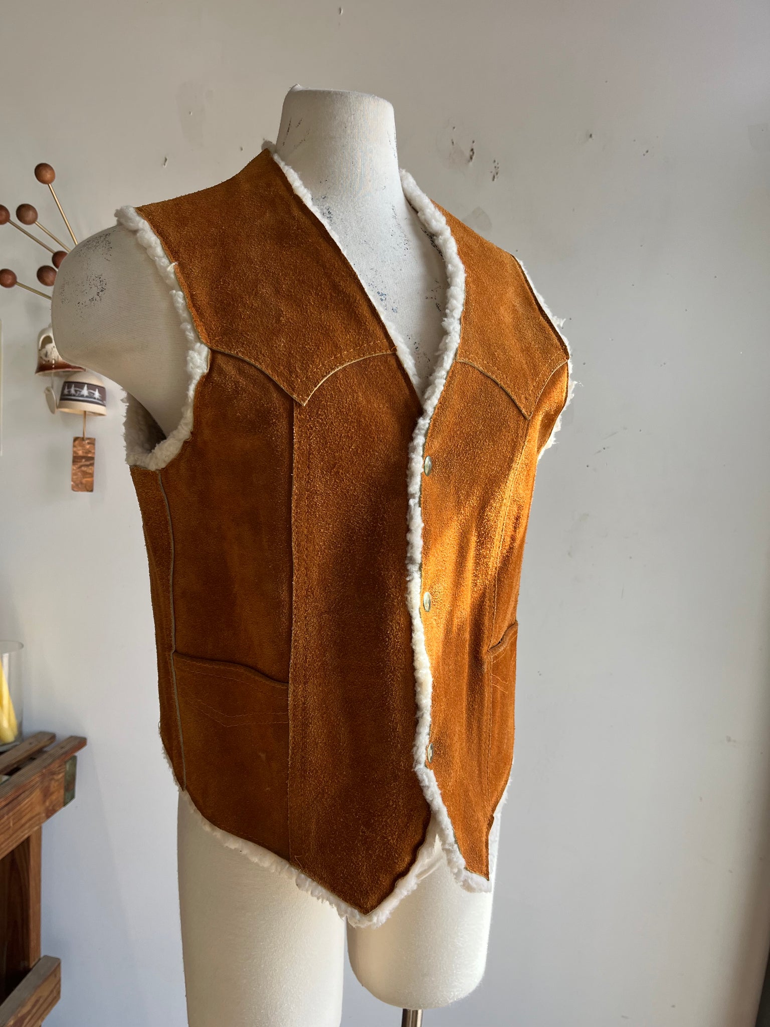 Fabric: marked Genuine Leather outer, the sherpa lining isn't marked, but I would say its a faux sherpa