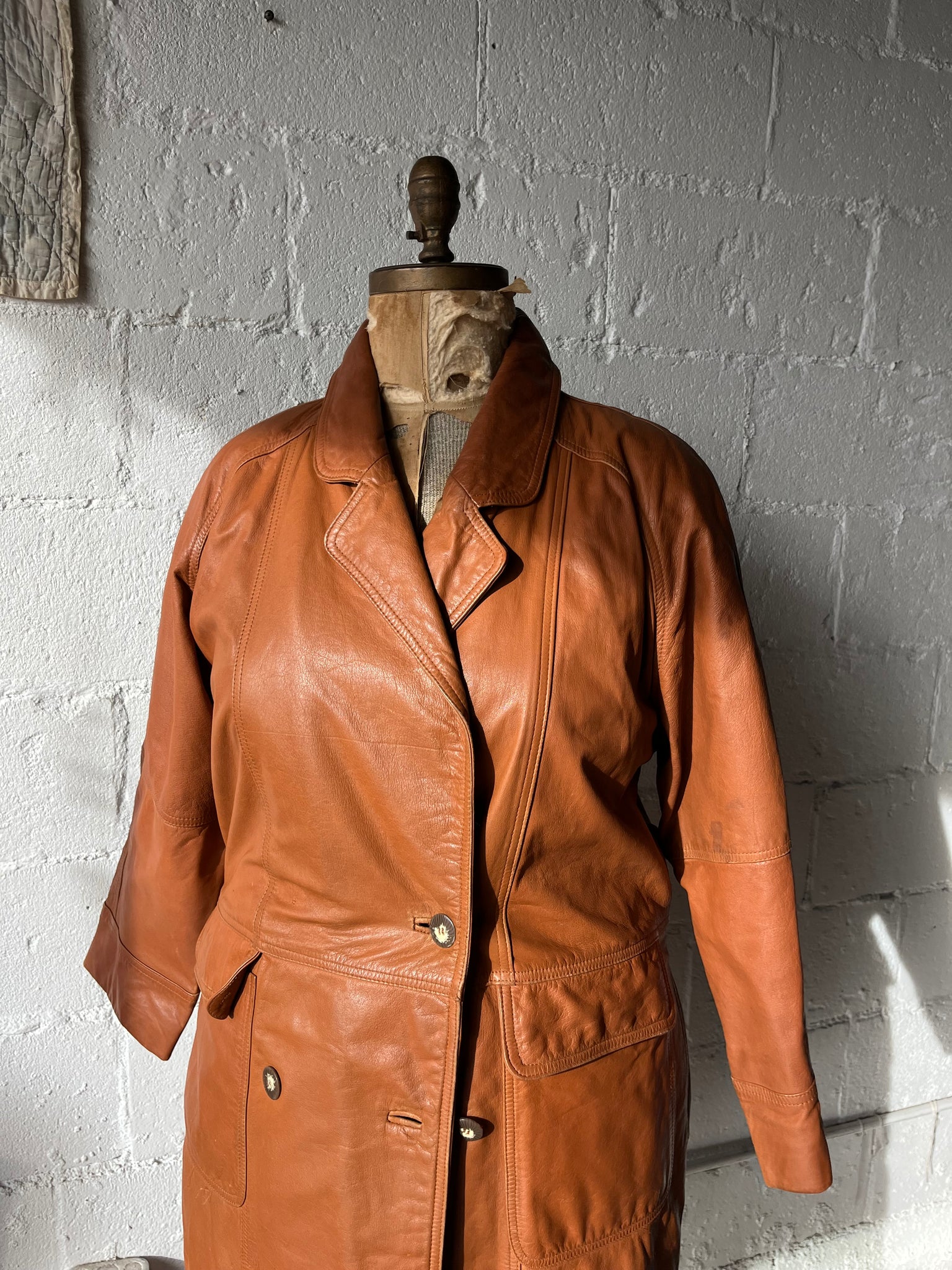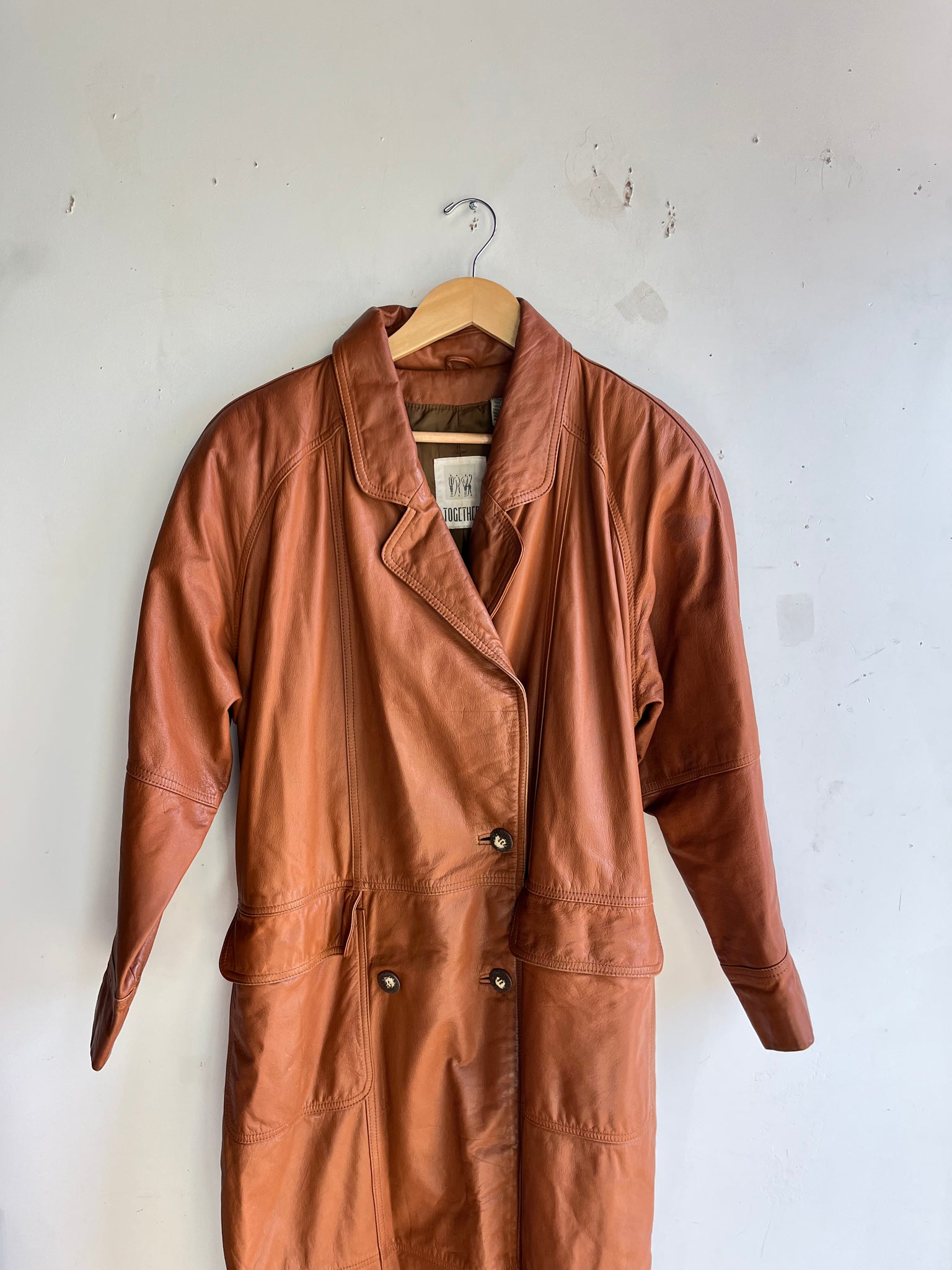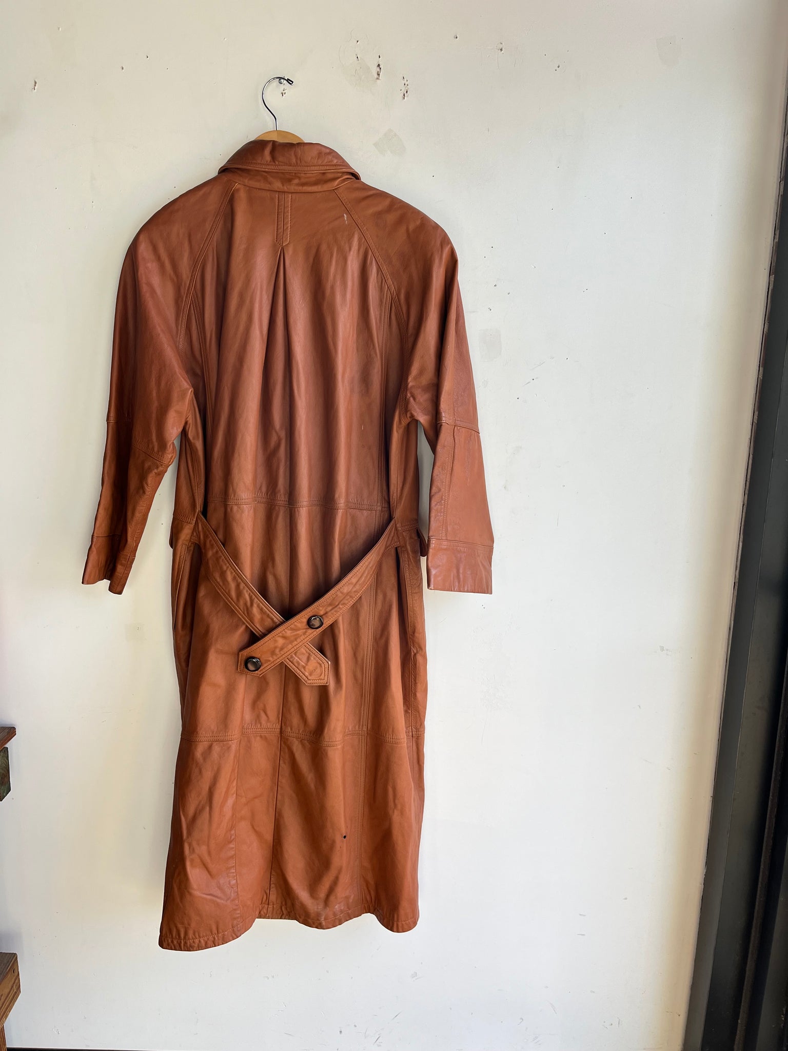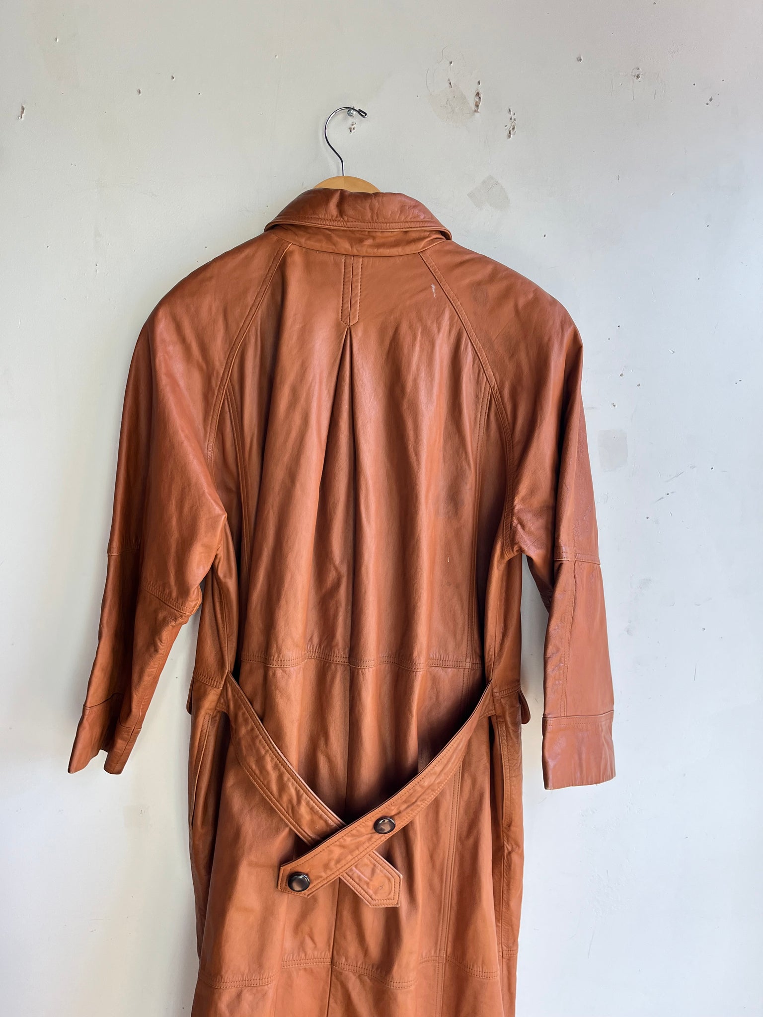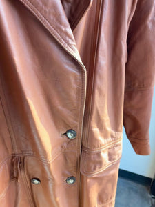 80s Burnt Orange Leather Trench Coat