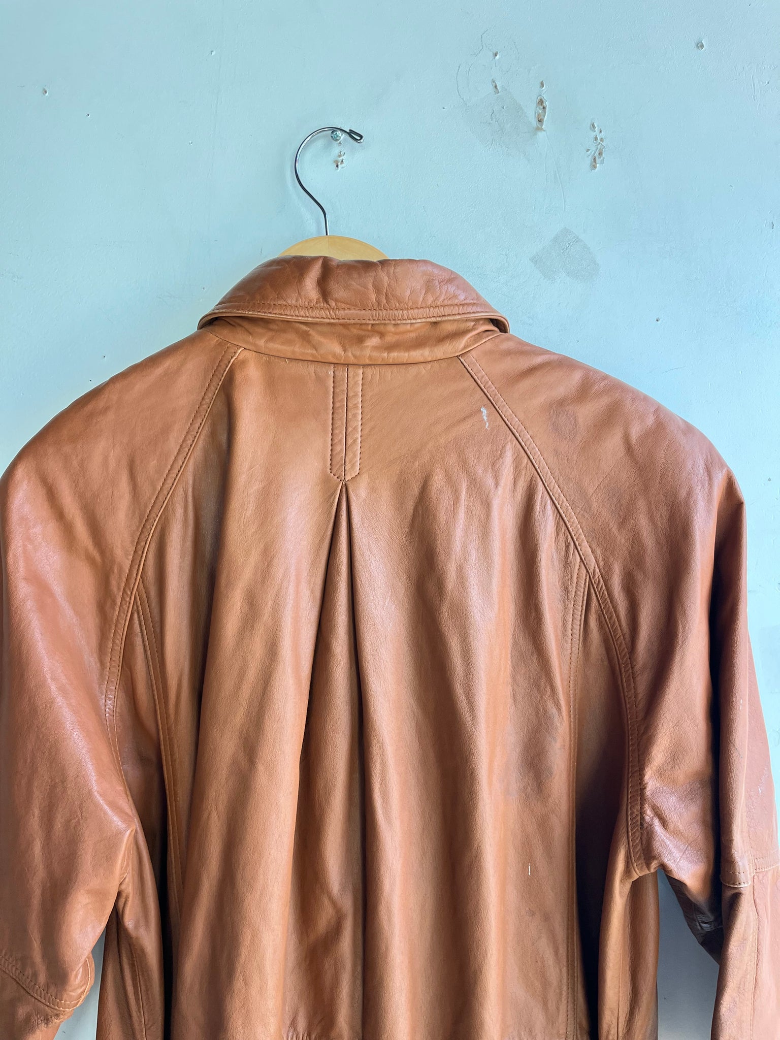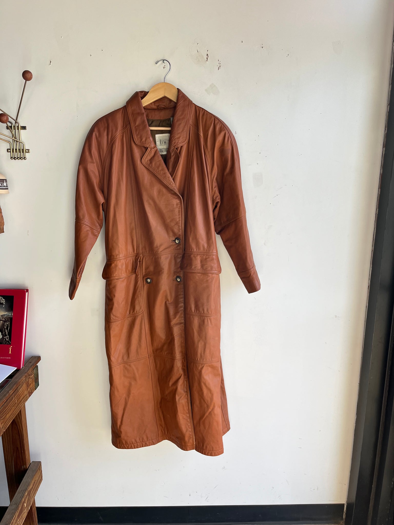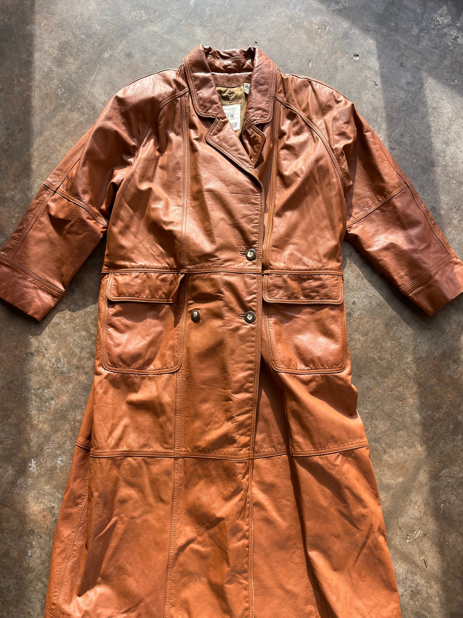 80s Burnt Orange Leather Trench Coat
