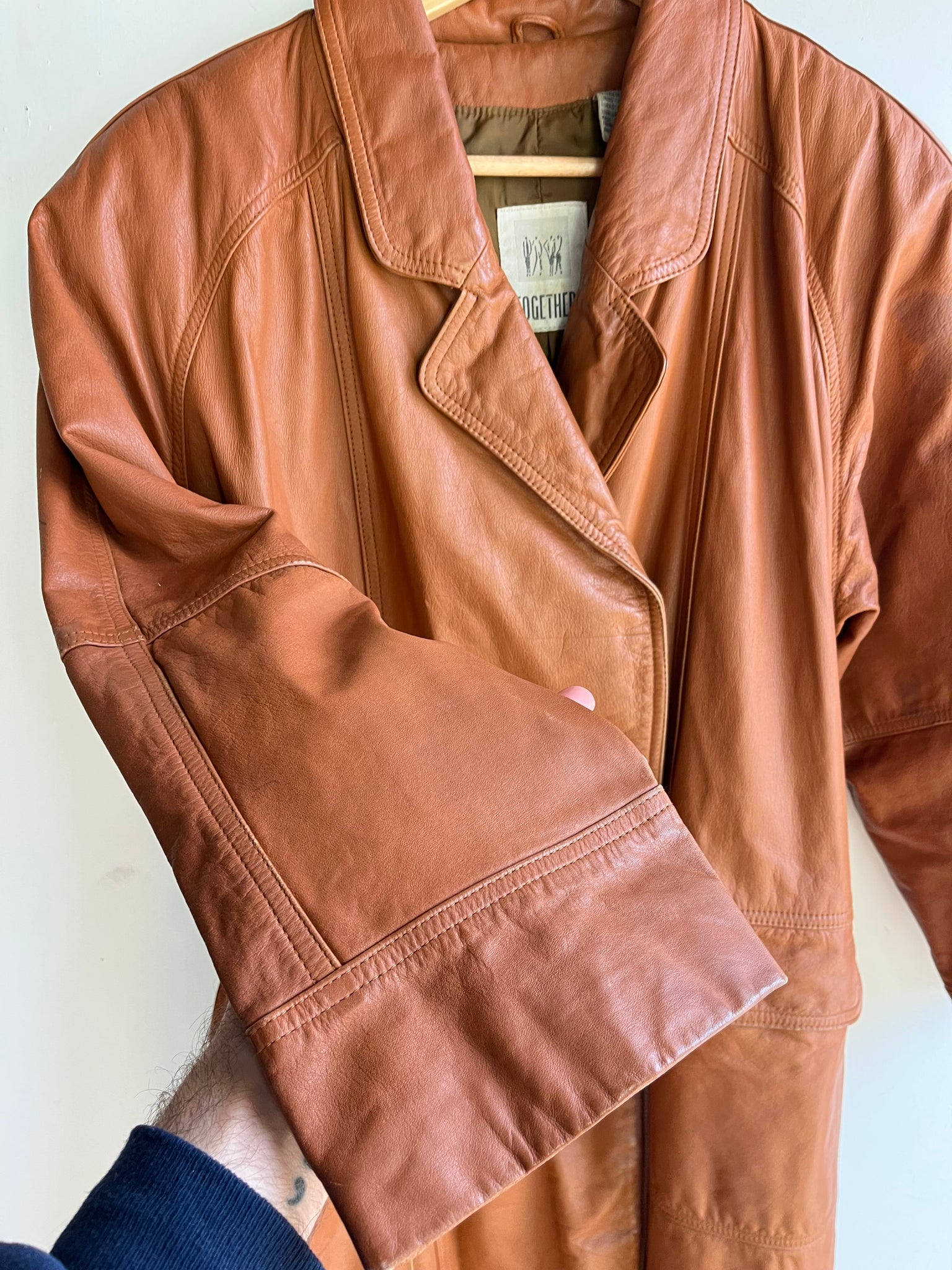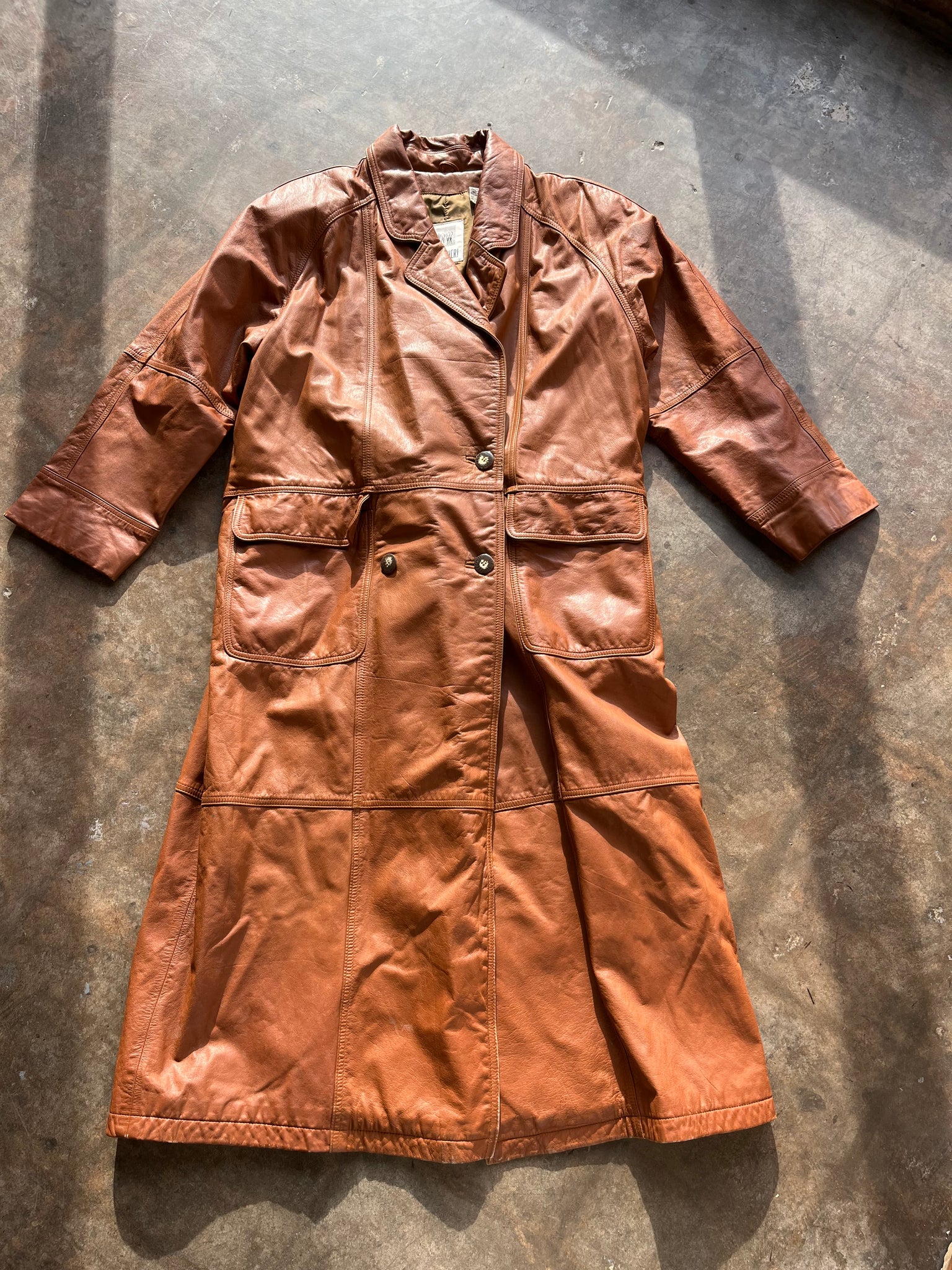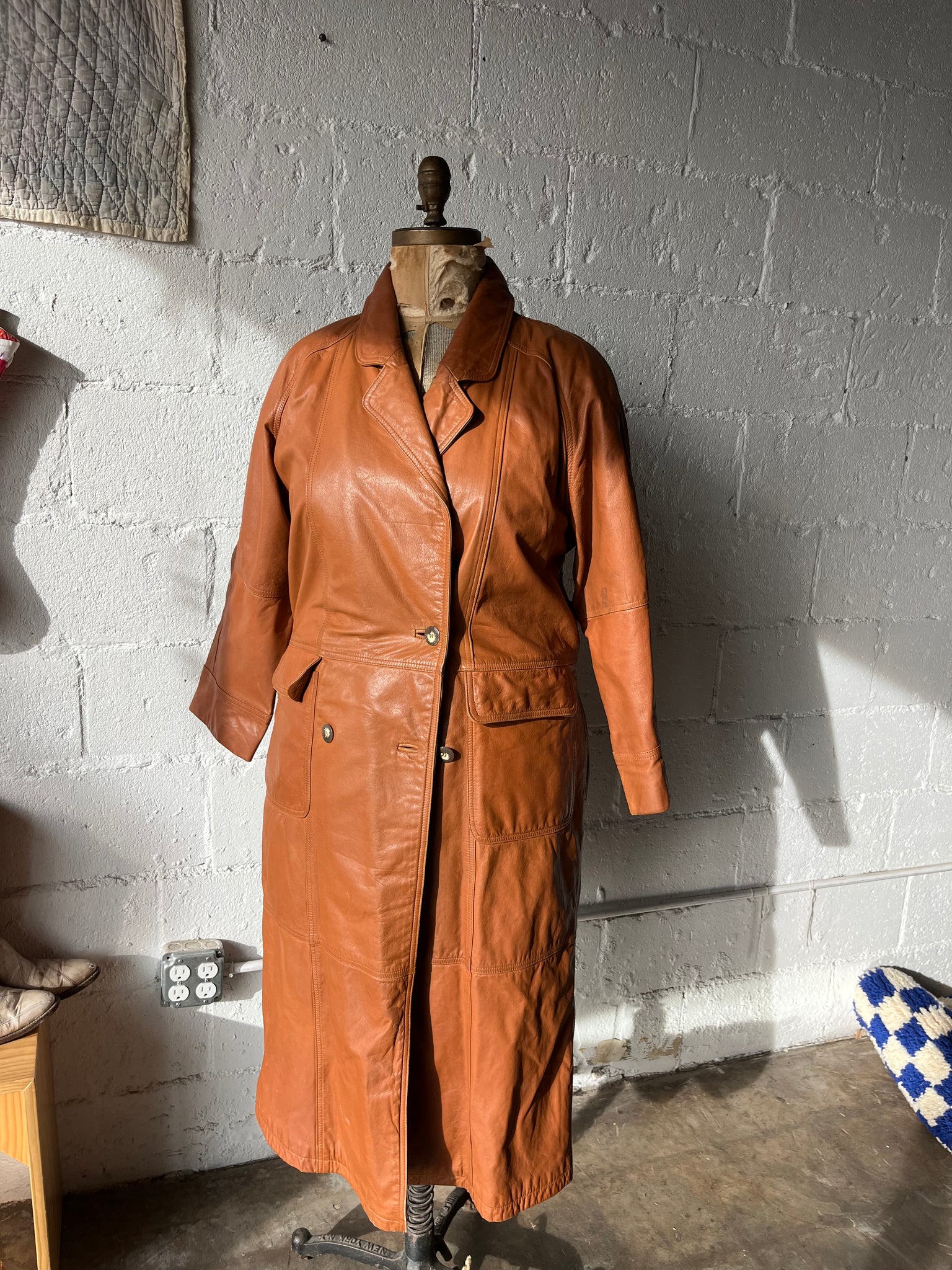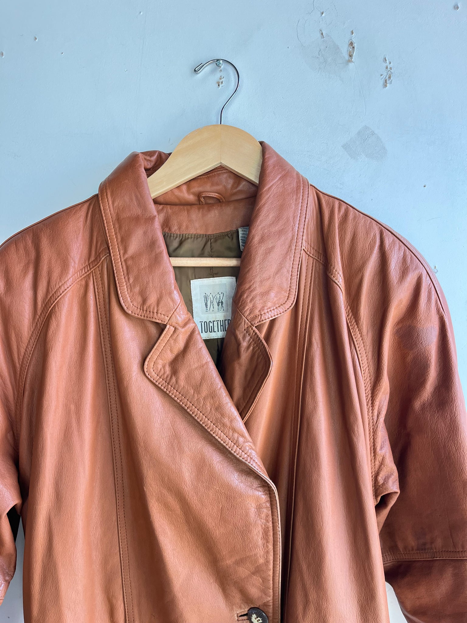 80s Burnt Orange Leather Trench Coat