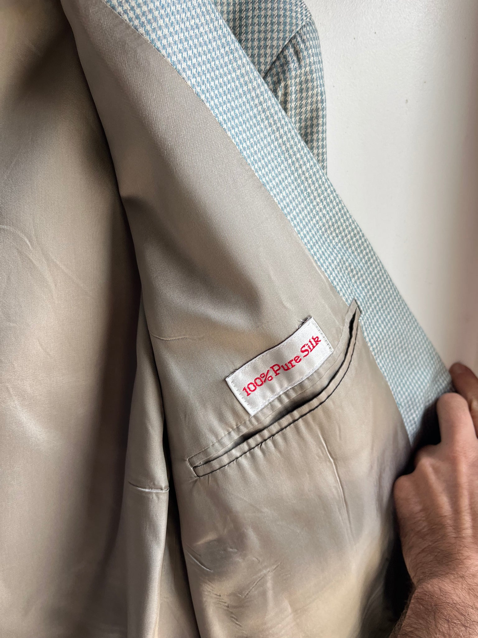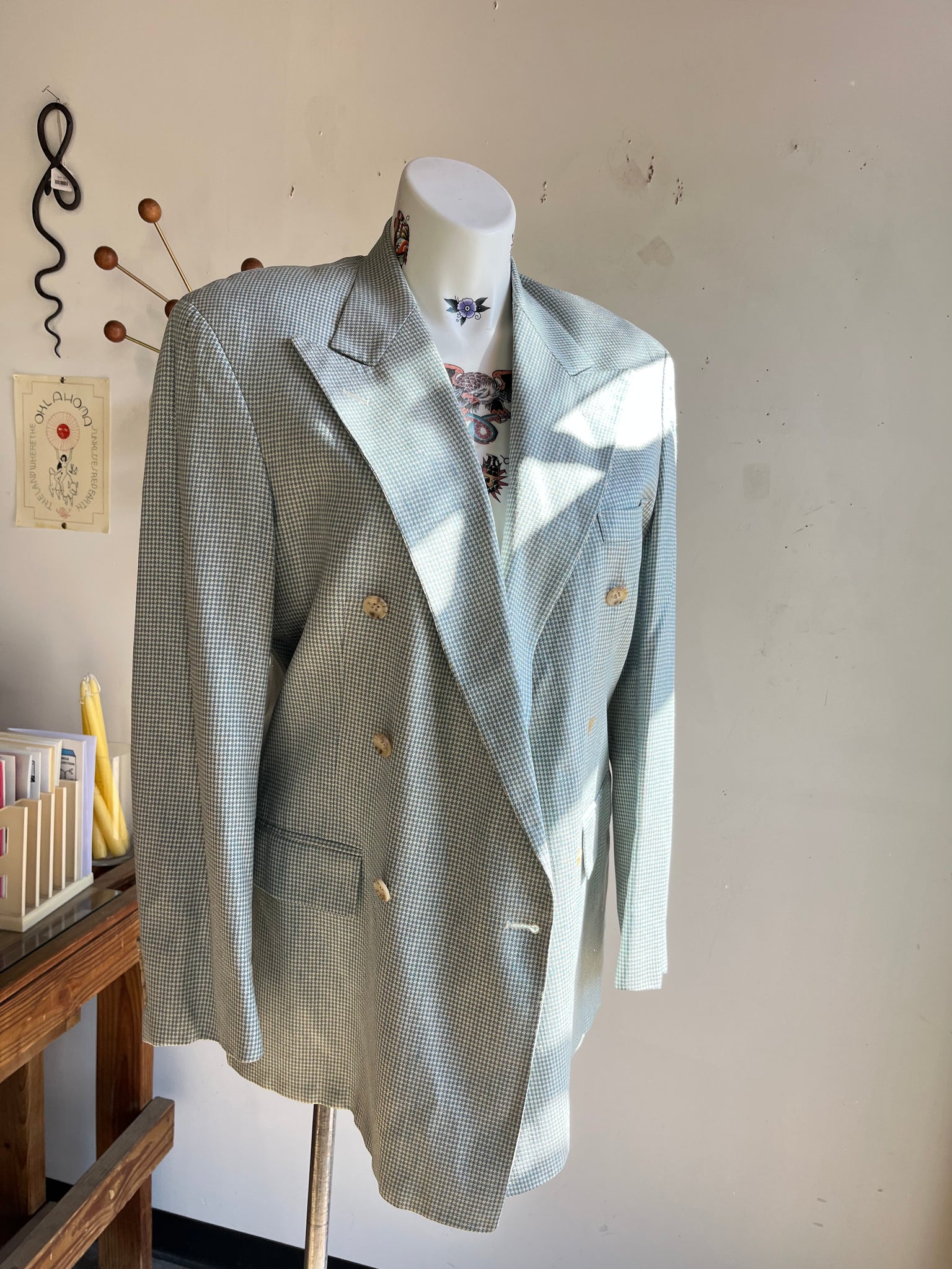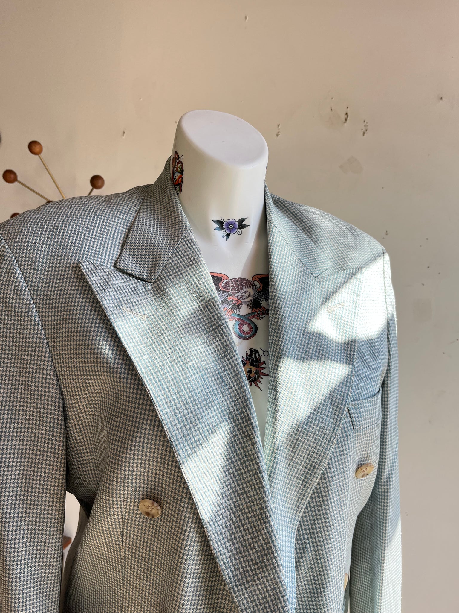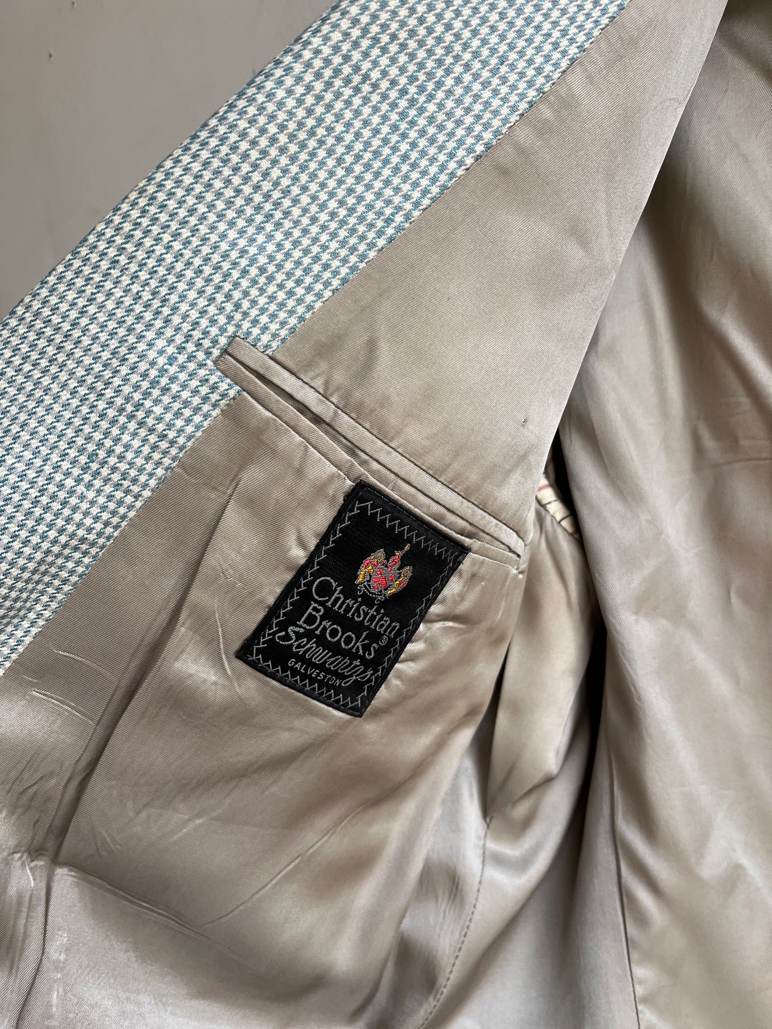 80s Christian Brooks Schwartz Hounds Tooth Pure Silk Double Breasted Blazer