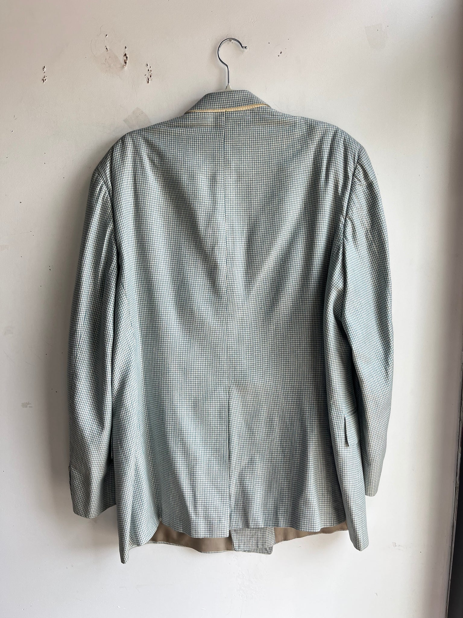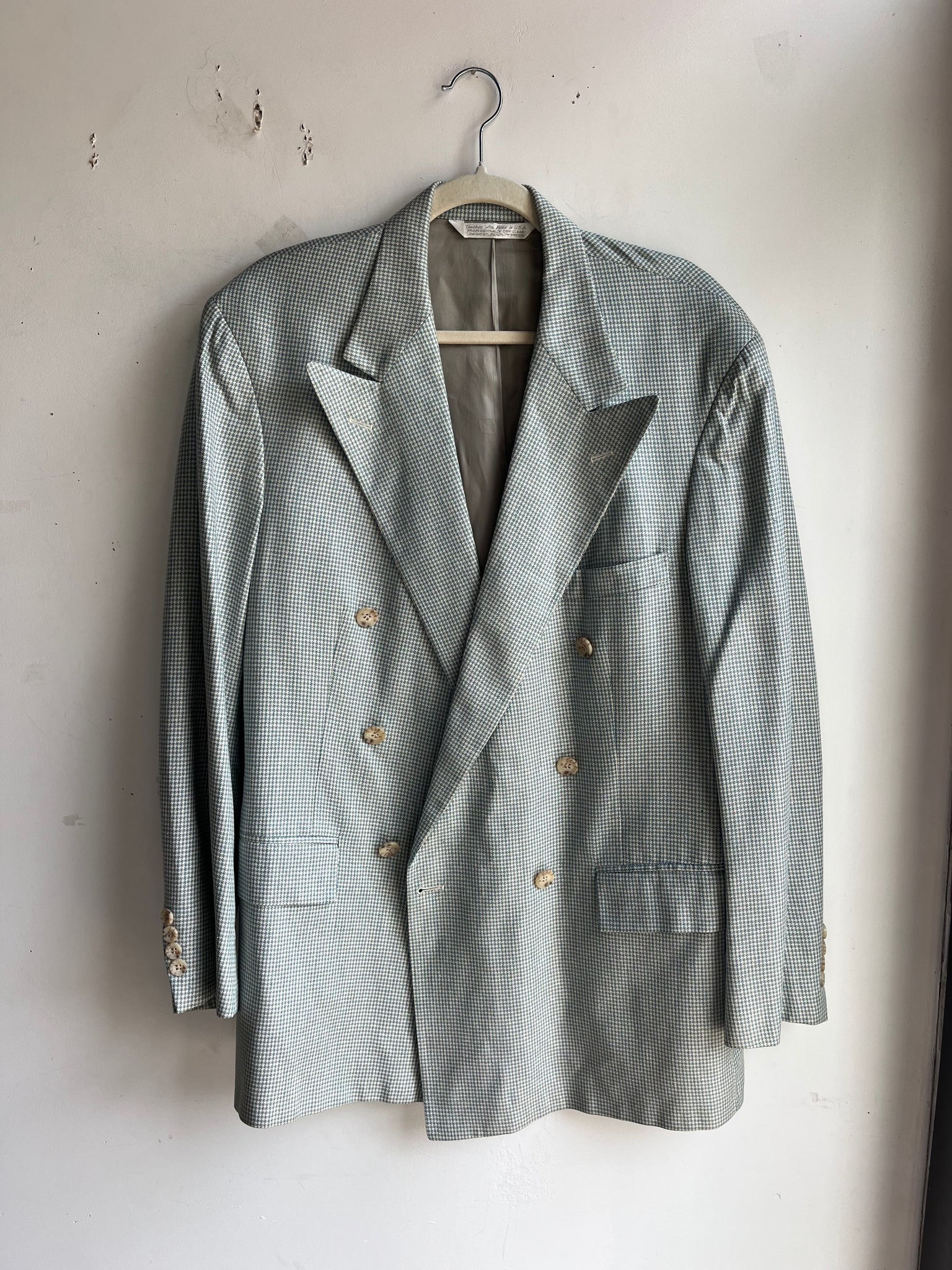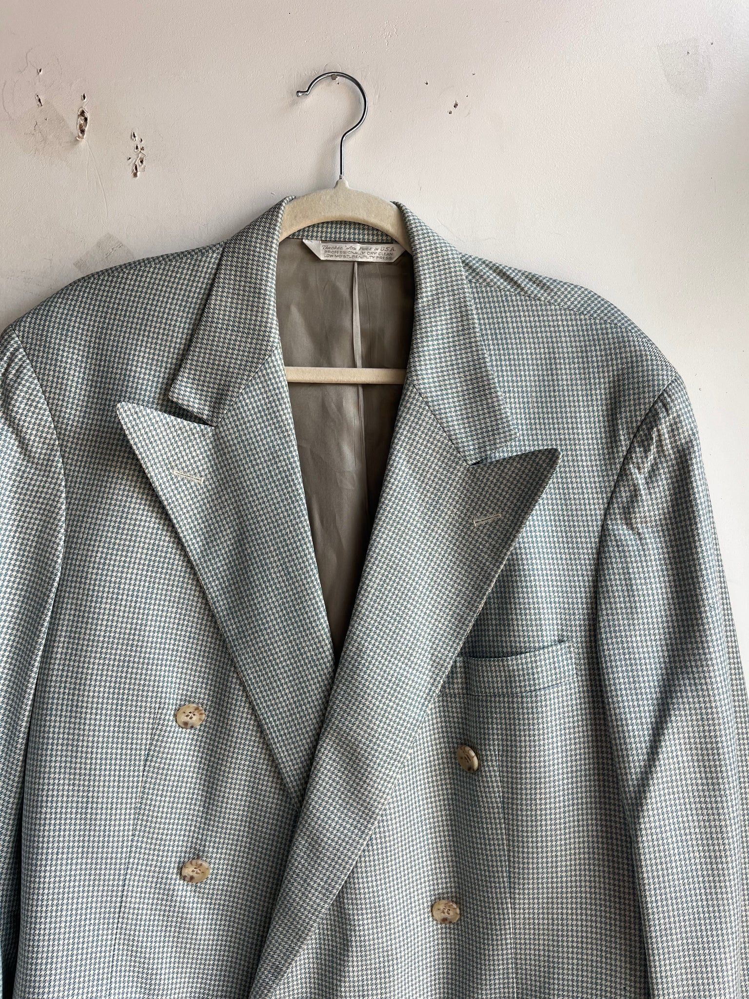 80s Christian Brooks Schwartz Hounds Tooth Pure Silk Double Breasted Blazer