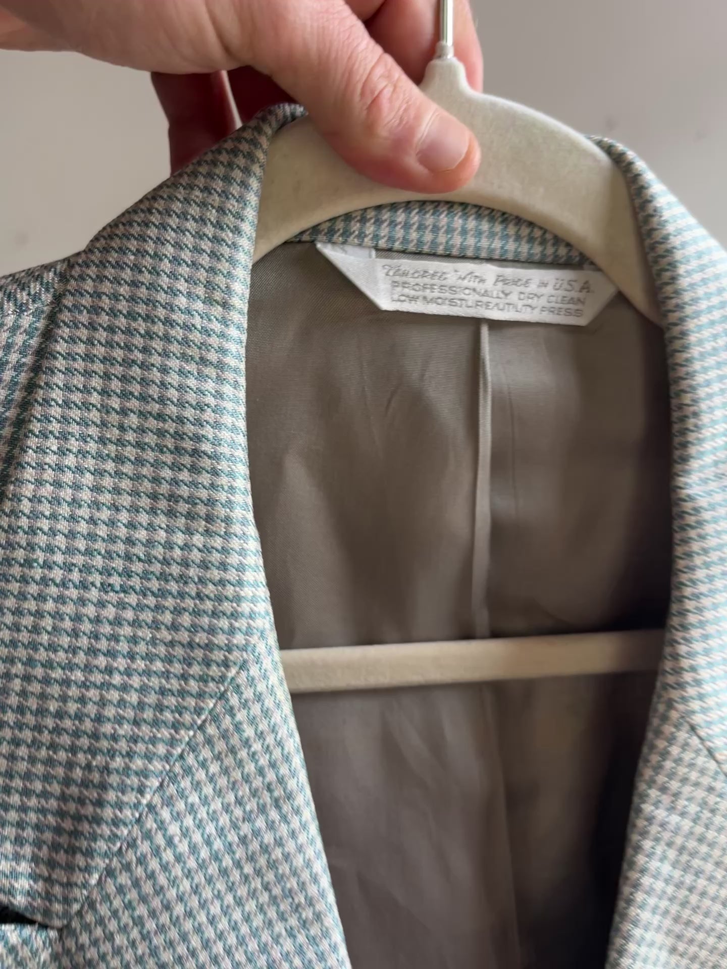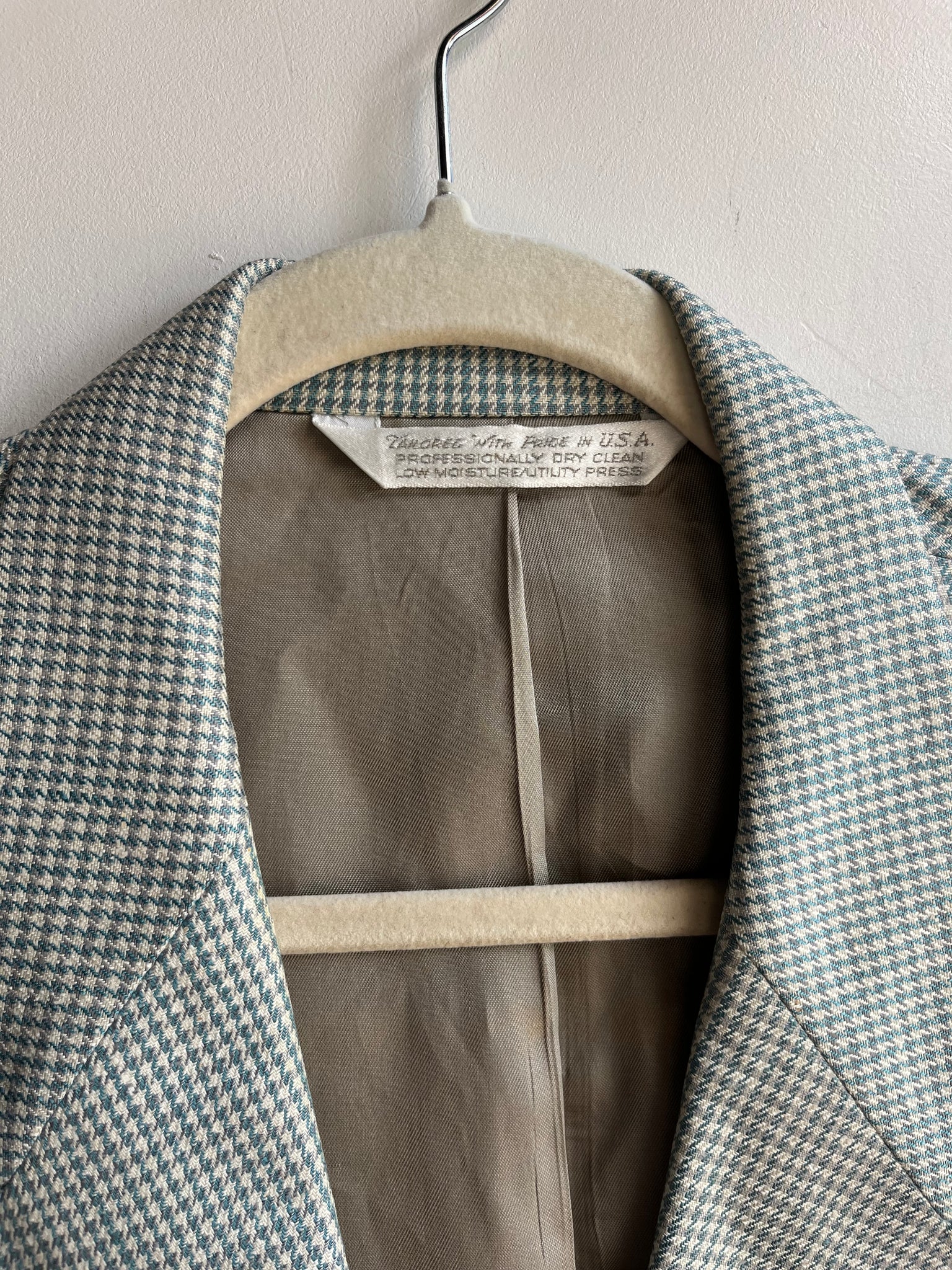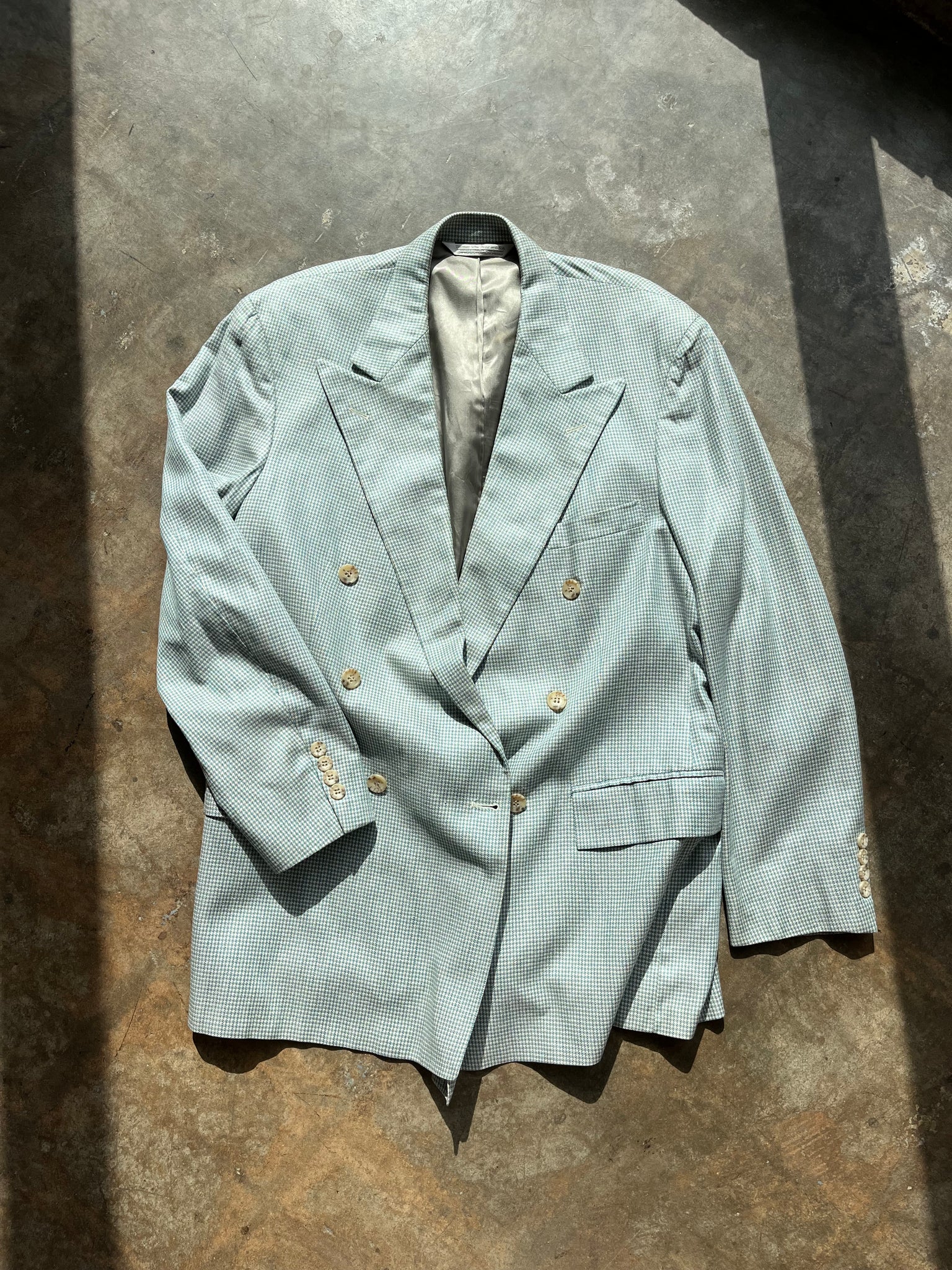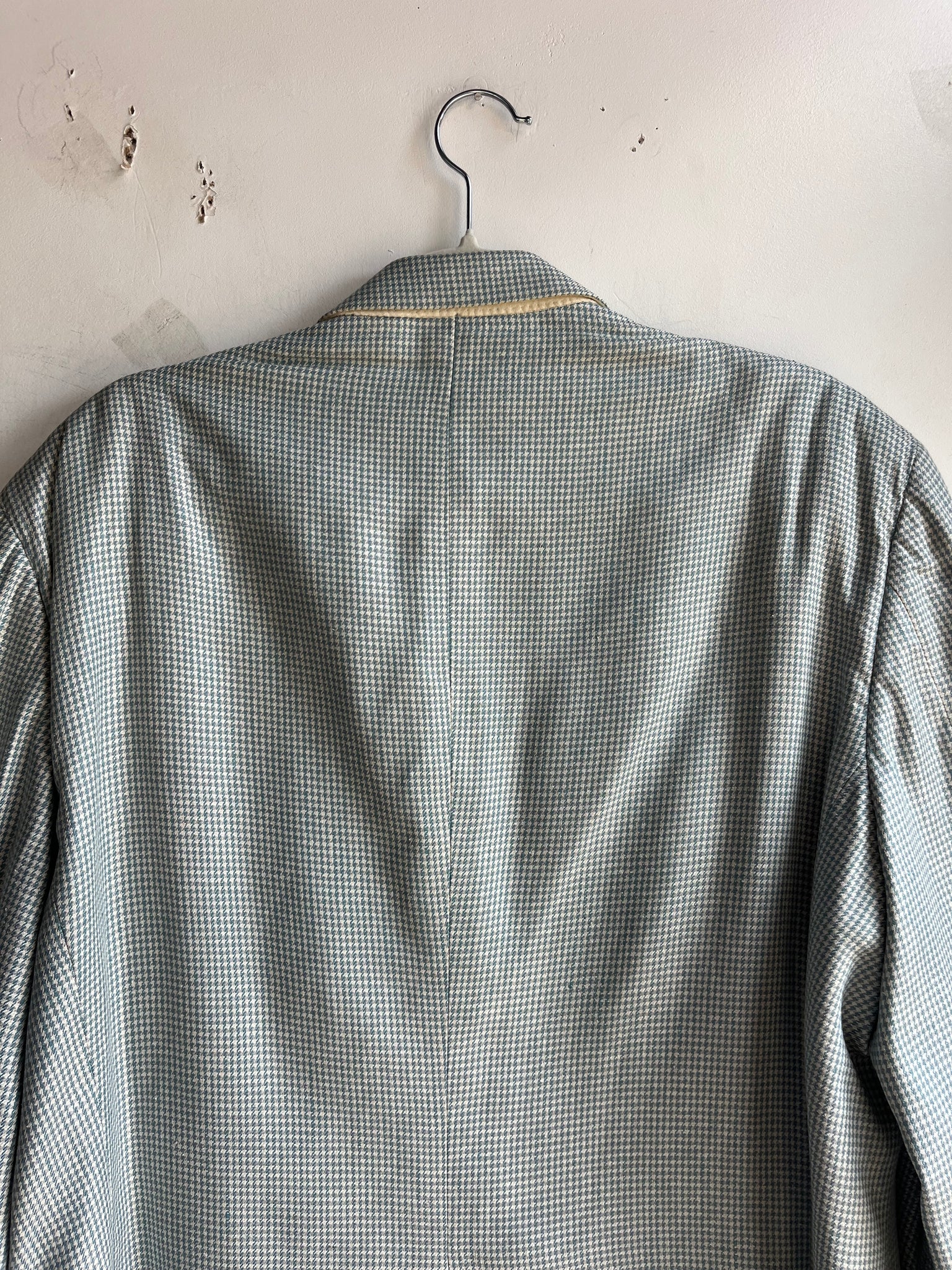 80s Christian Brooks Schwartz Hounds Tooth Pure Silk Double Breasted Blazer