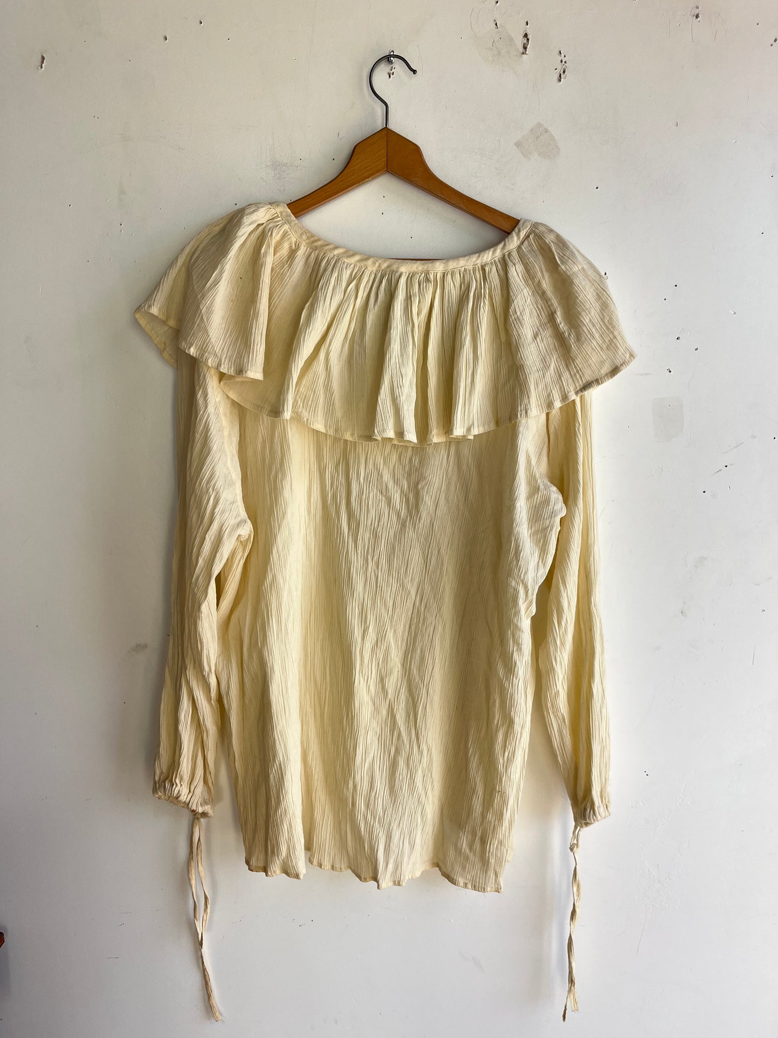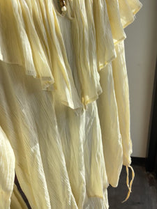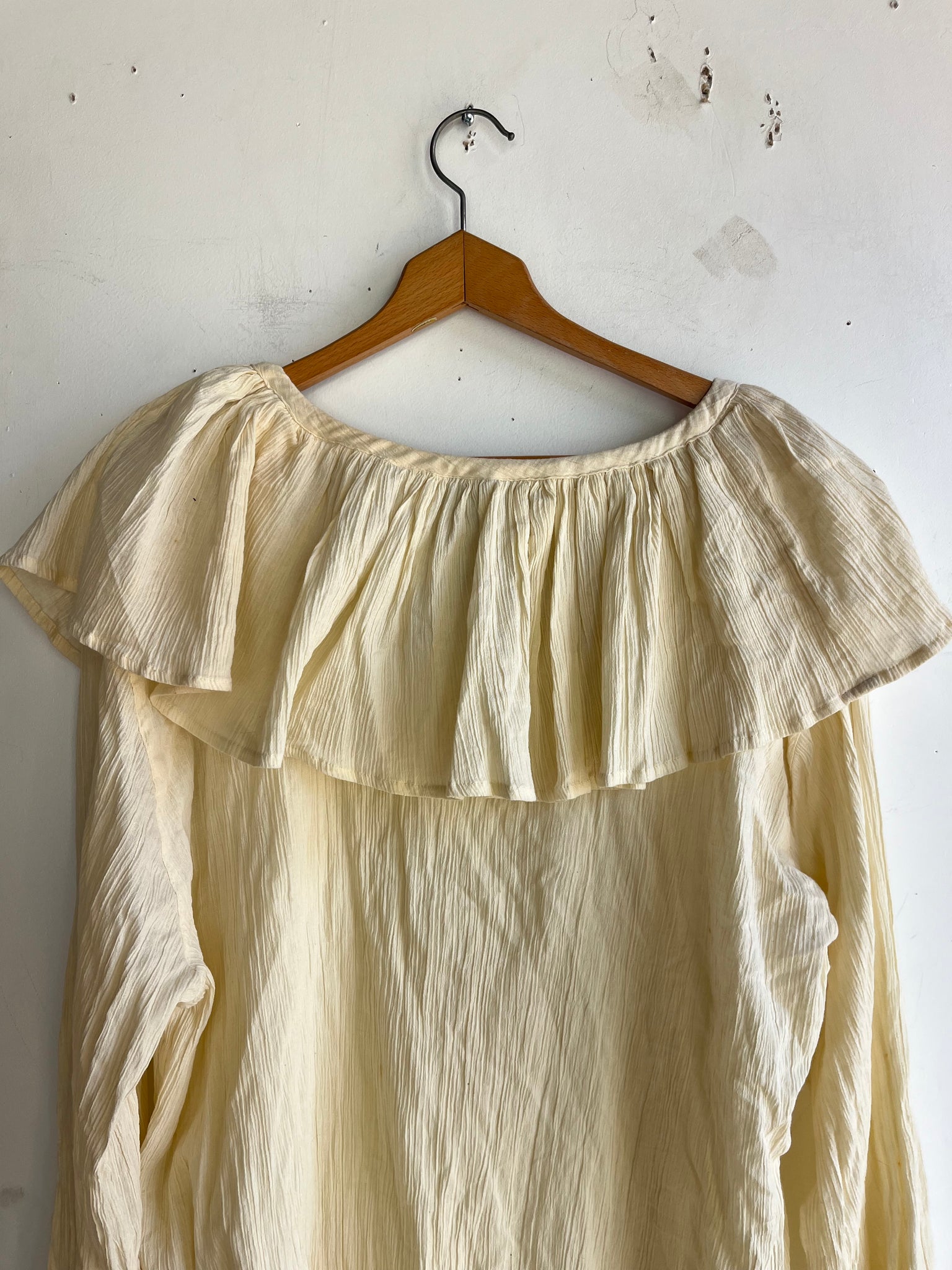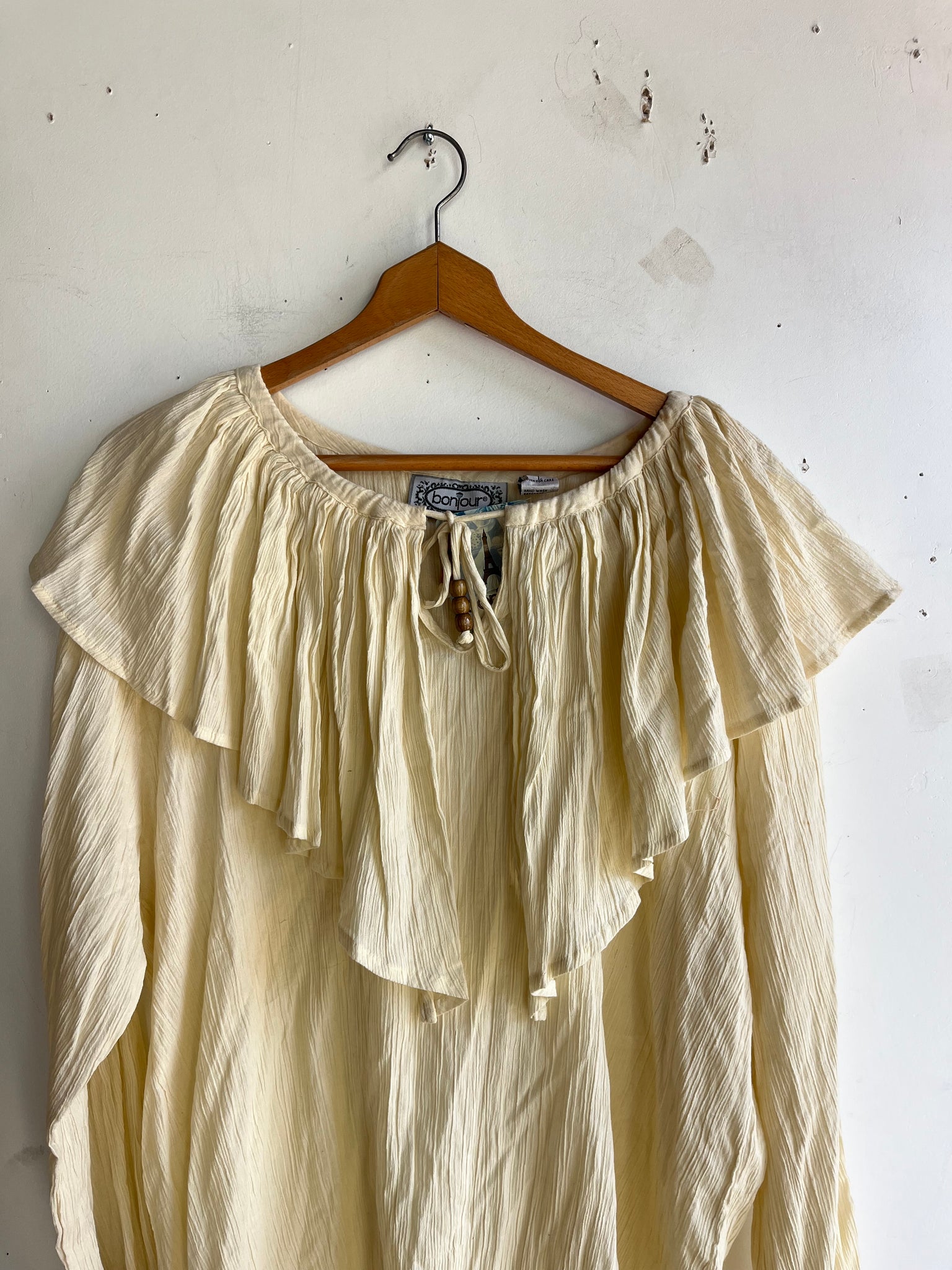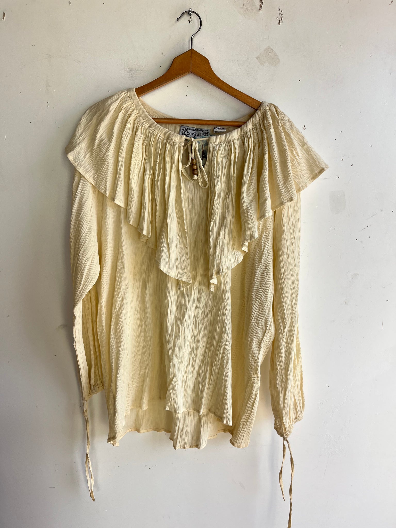 80s Deadstock Gauze Cotton Frilly Pouf Sleeve Top
