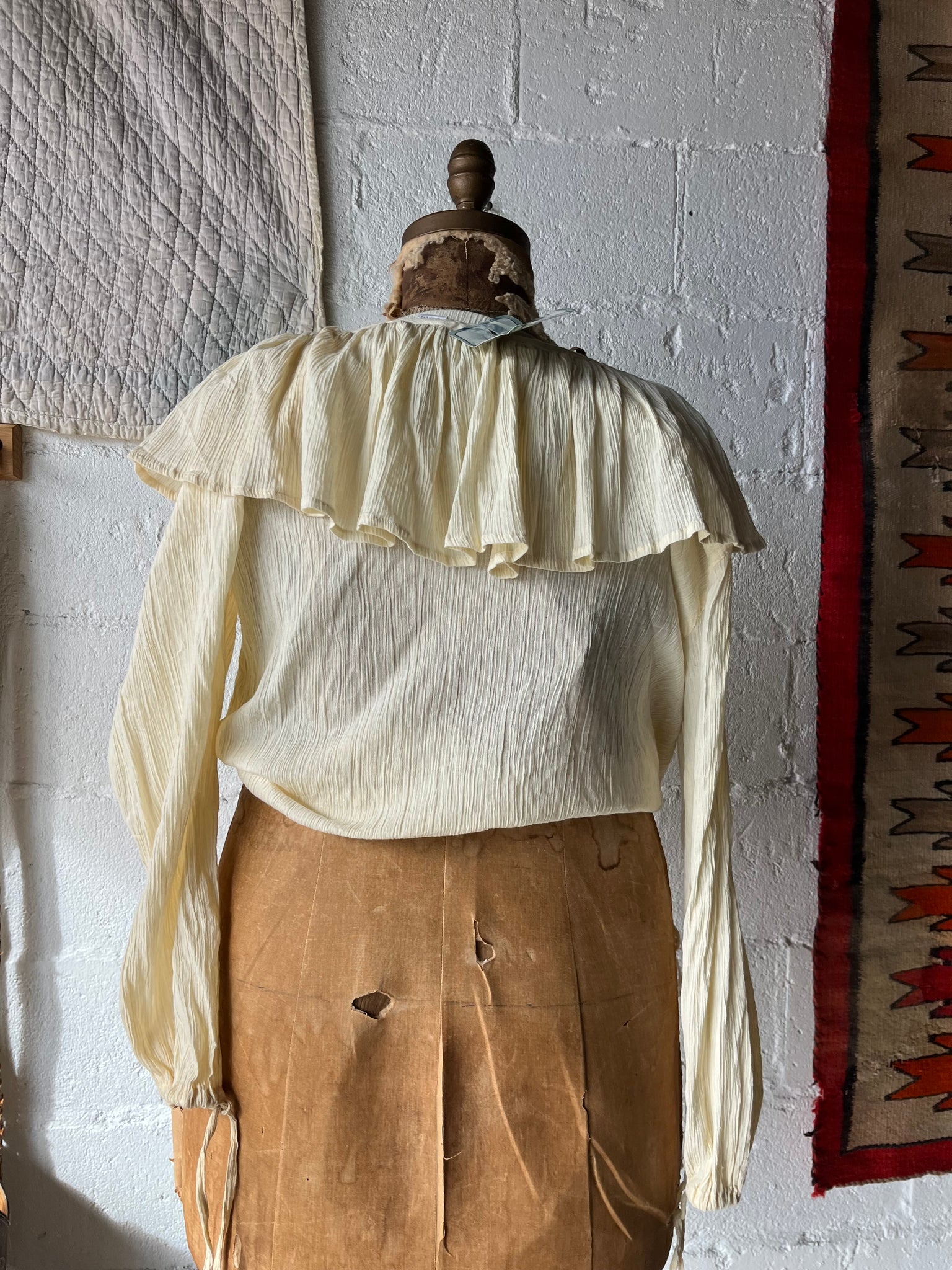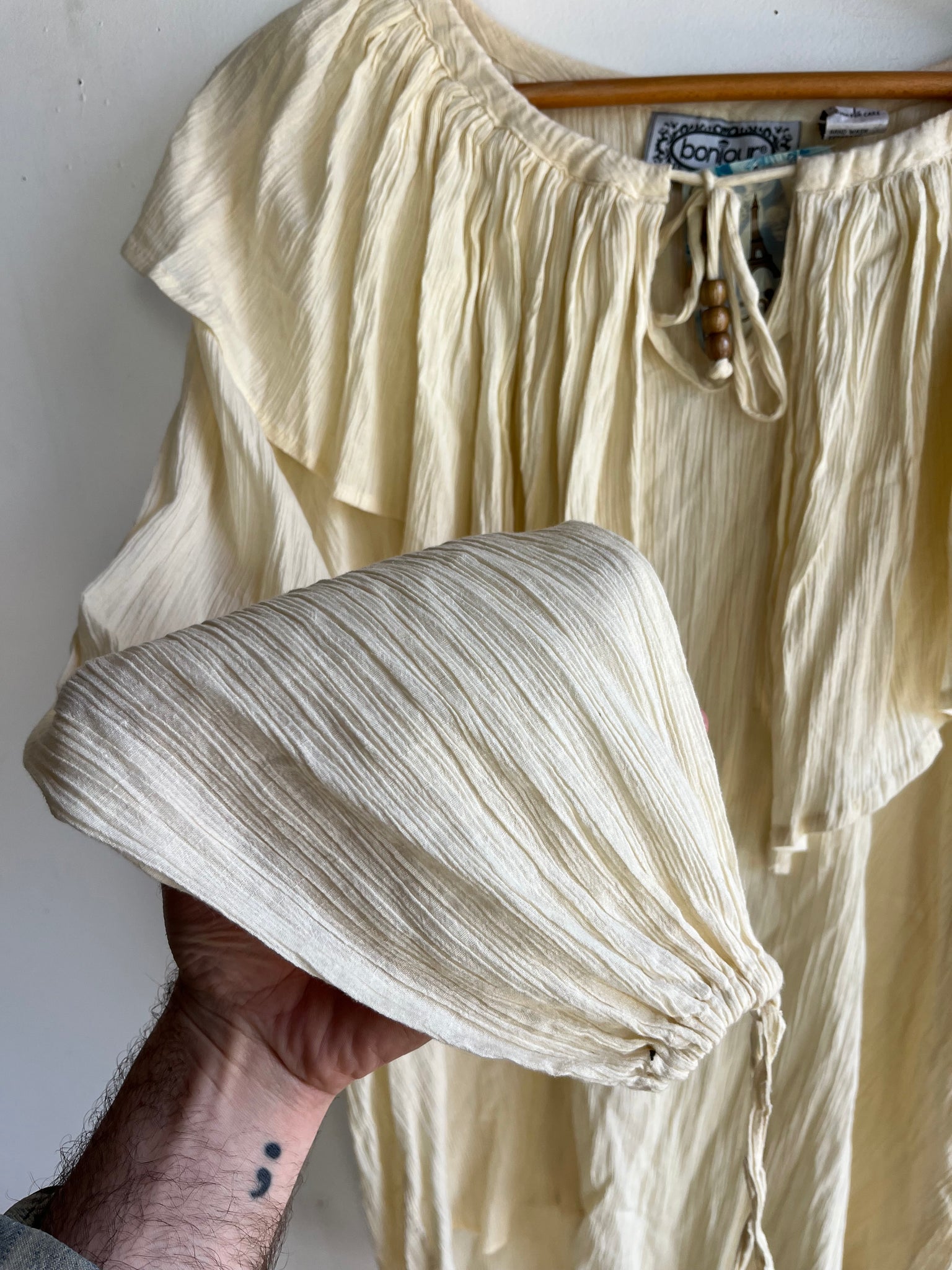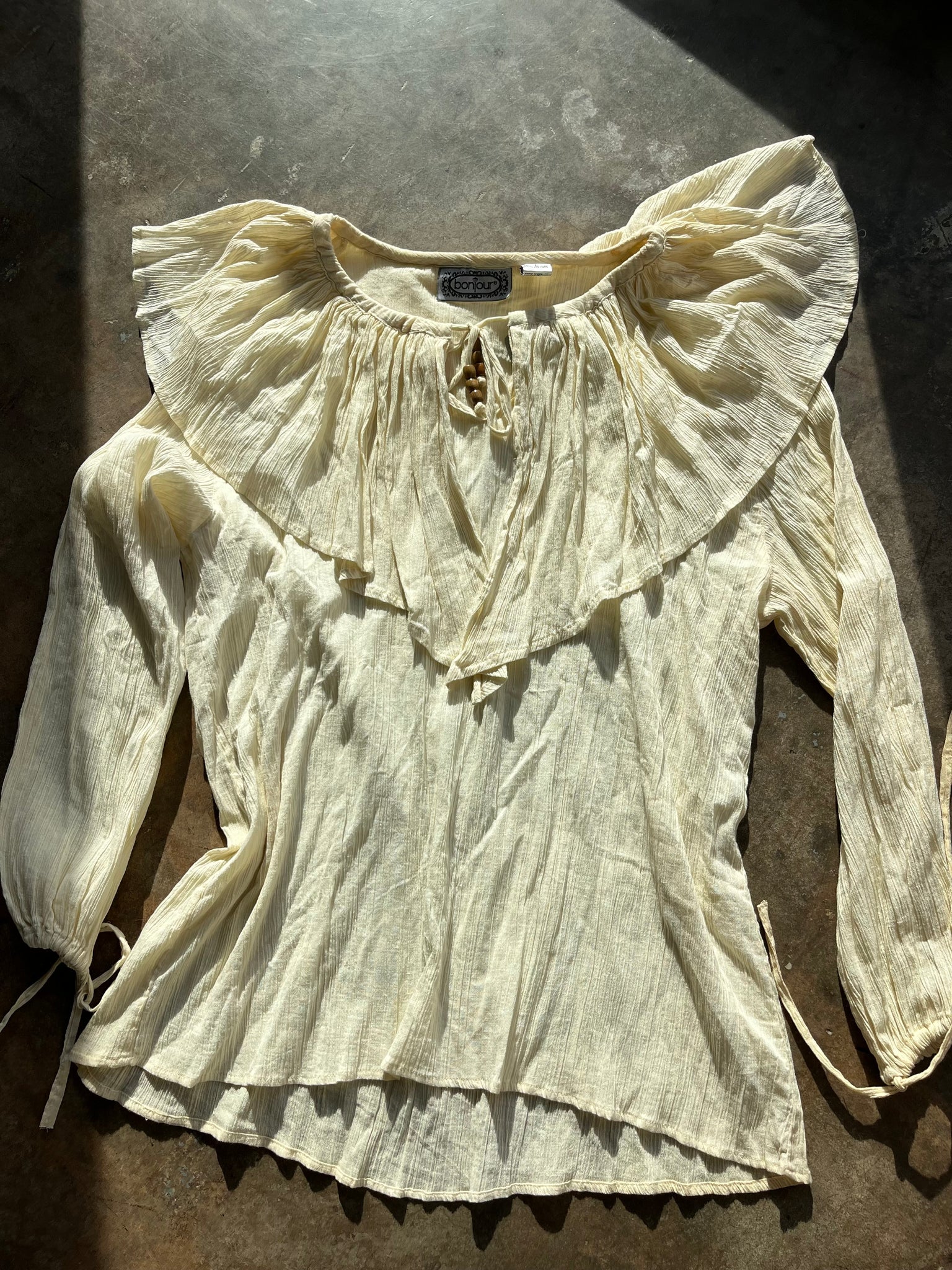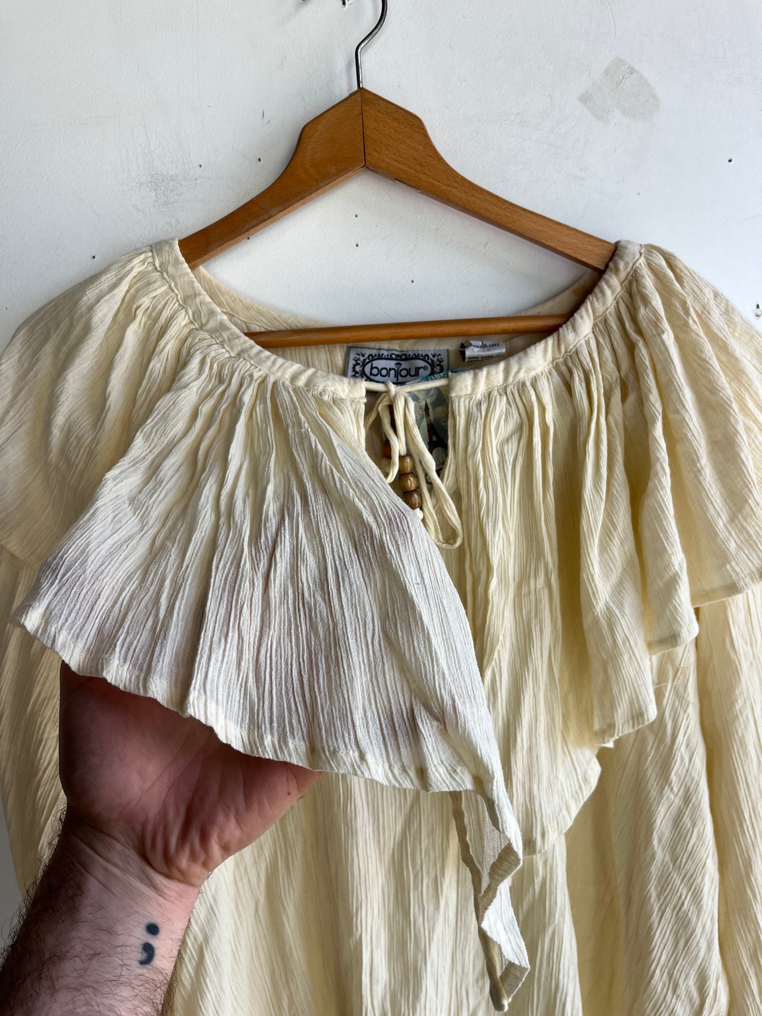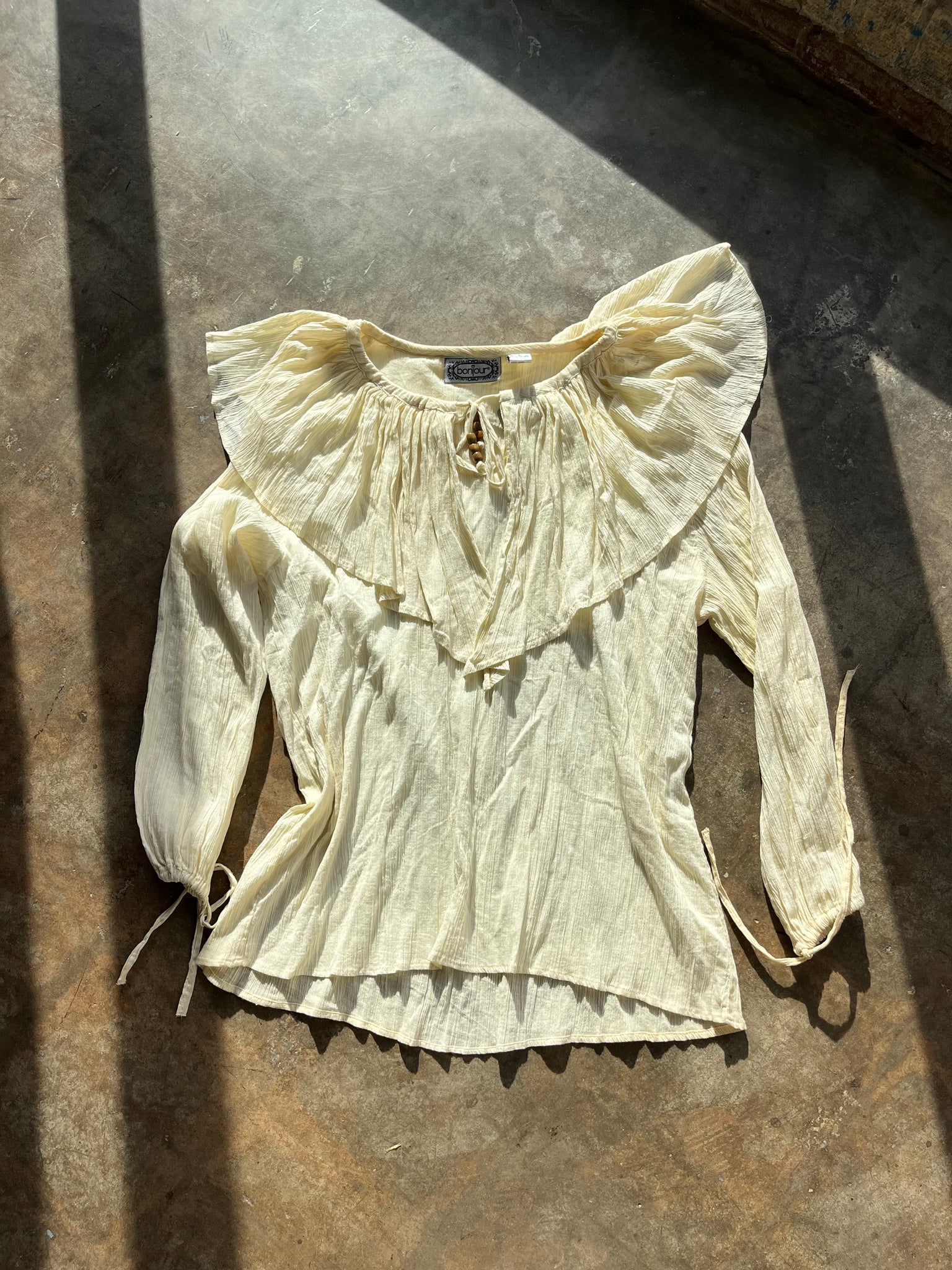 80s Deadstock Gauze Cotton Frilly Pouf Sleeve Top