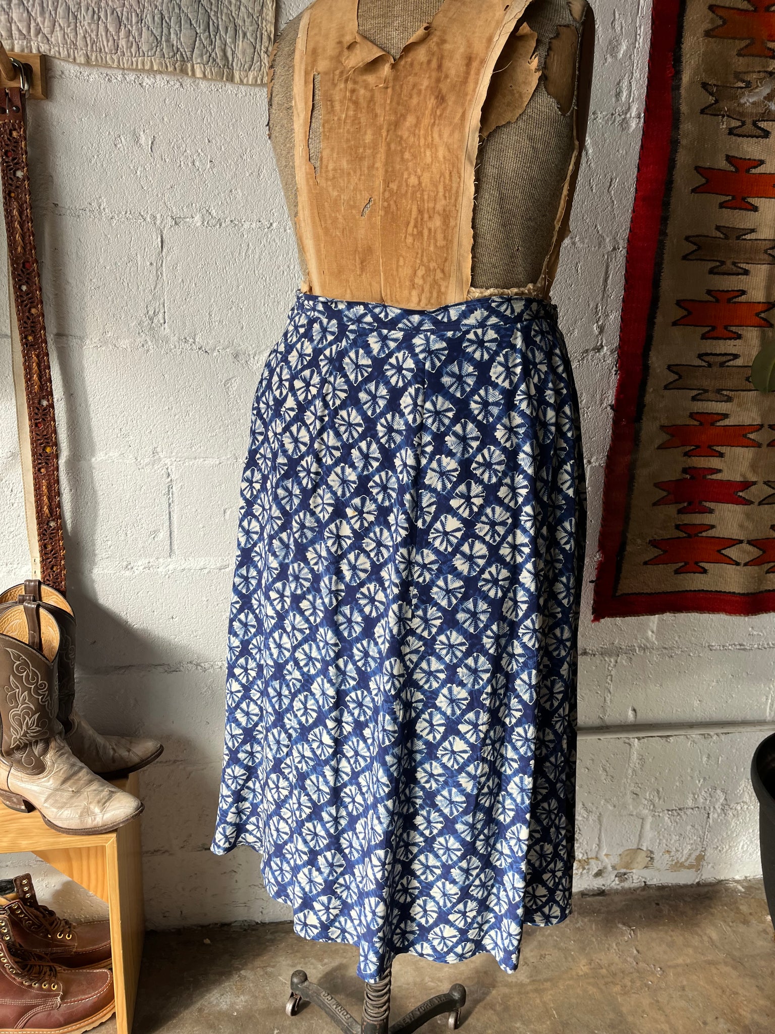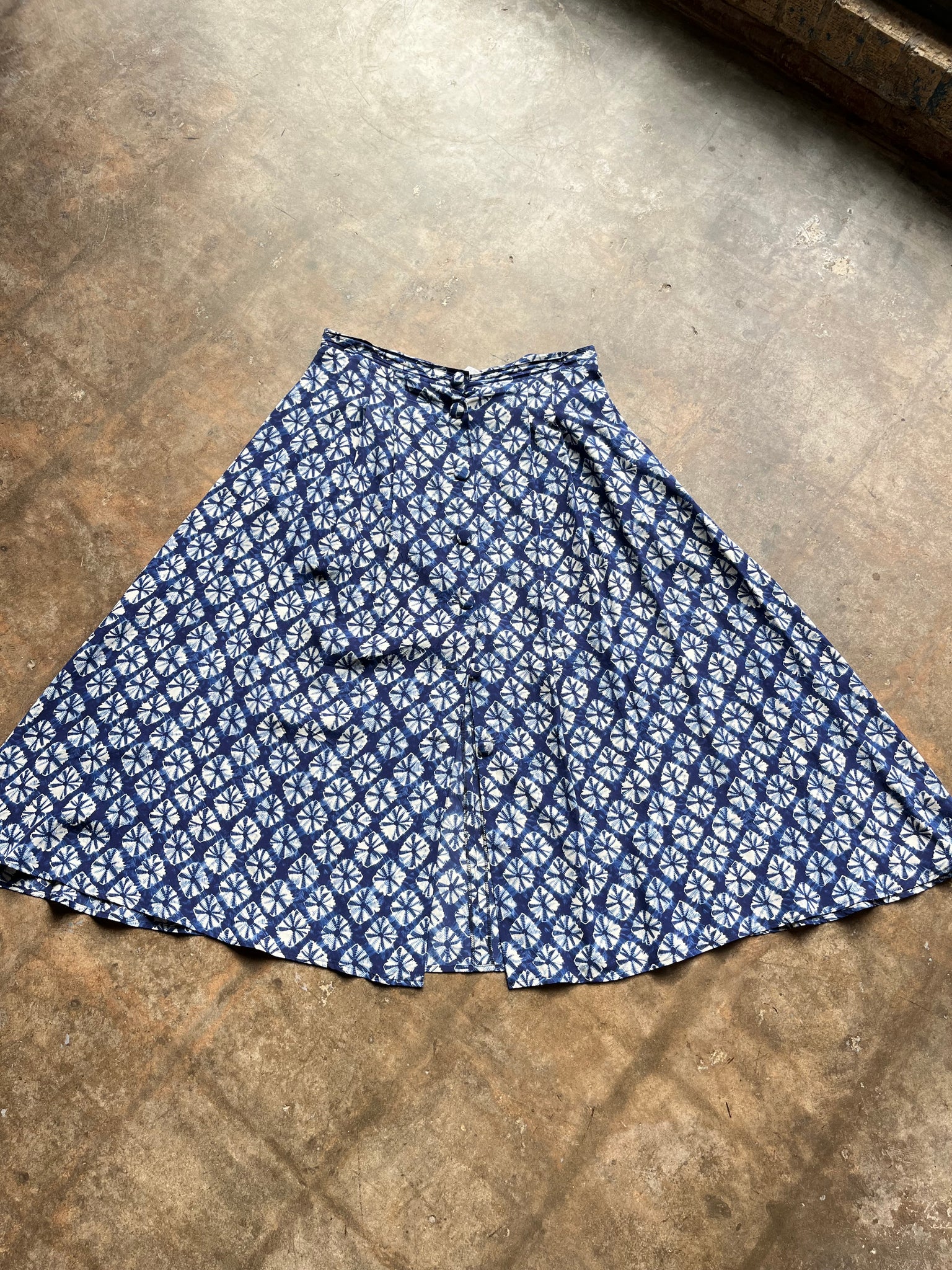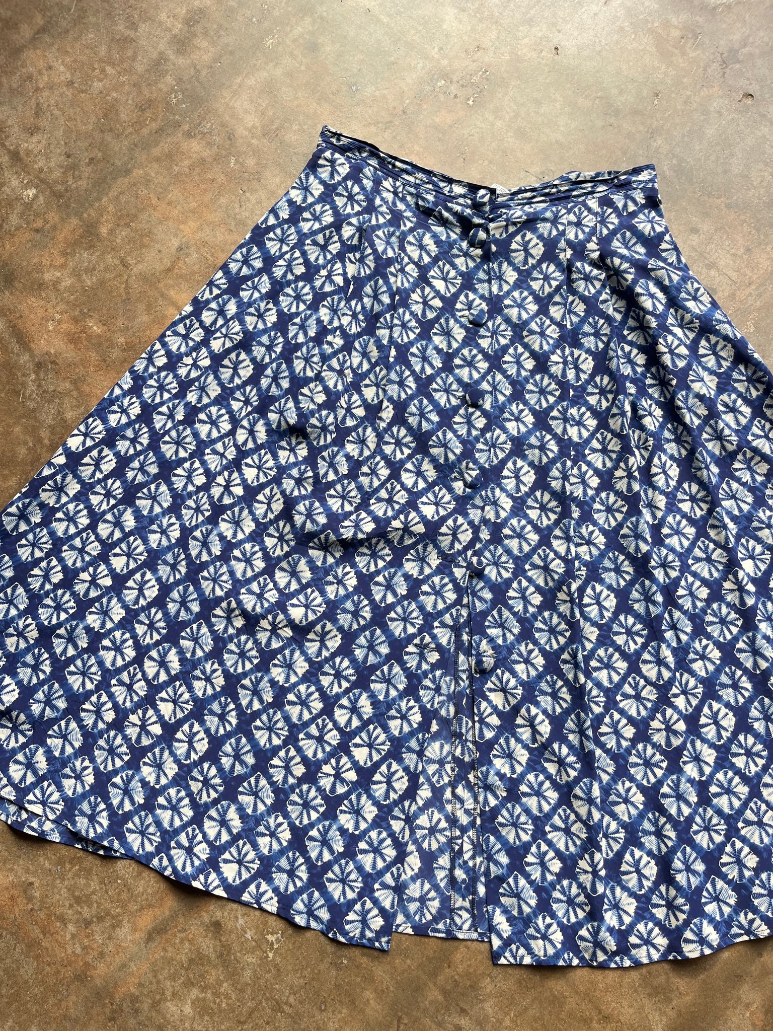 80s Kariza Shibari Dyed Silk Button Down Skirt