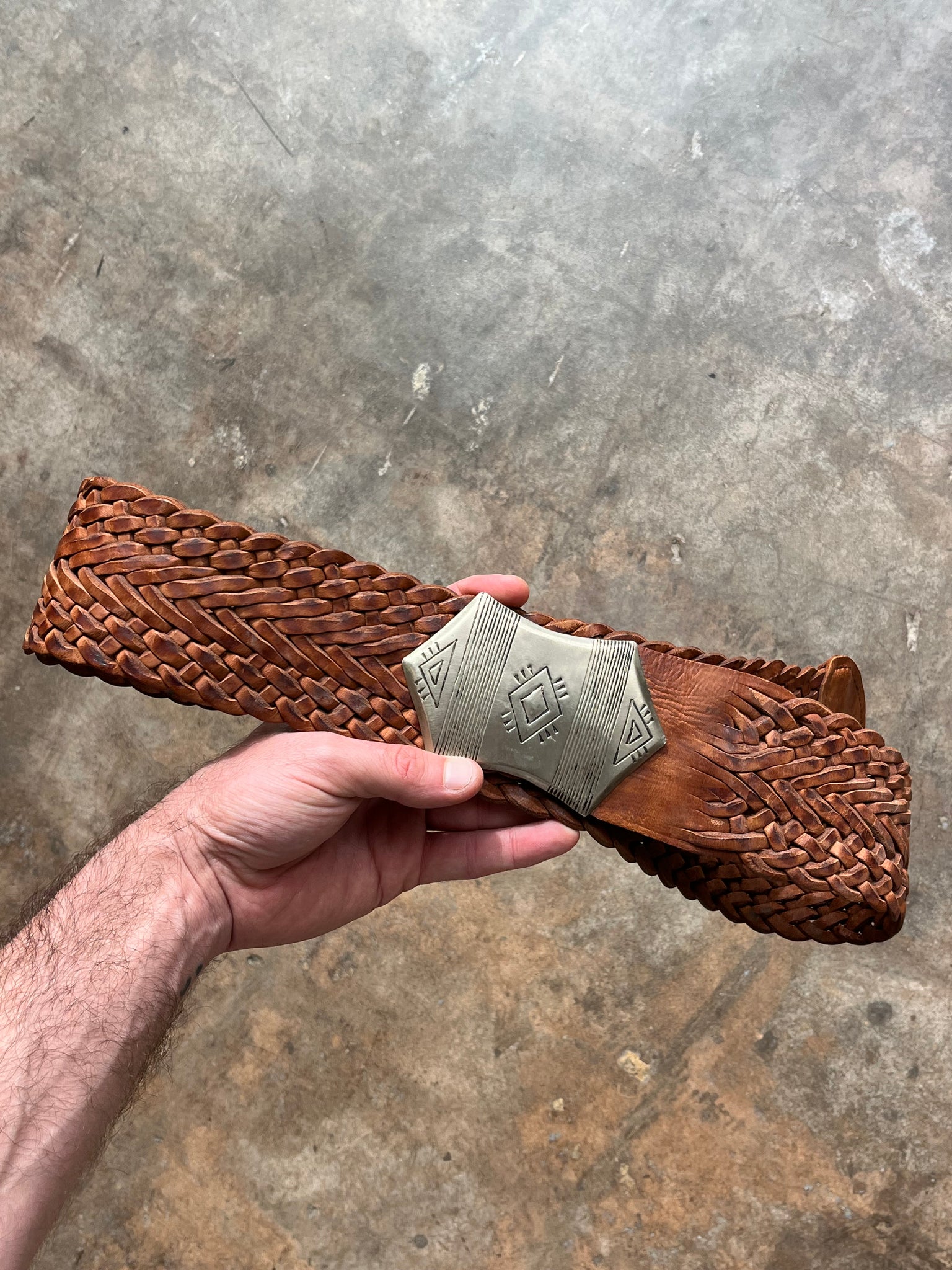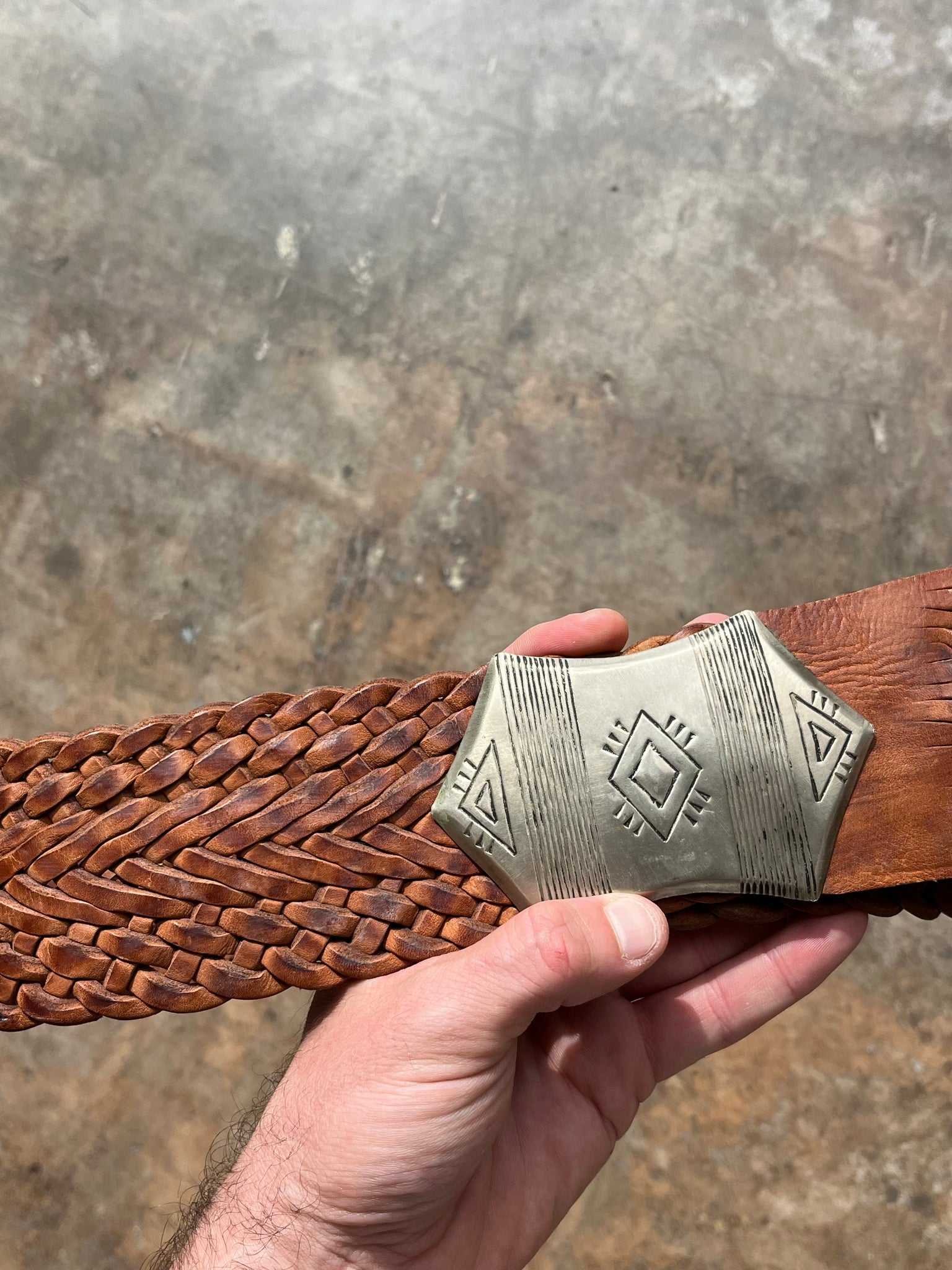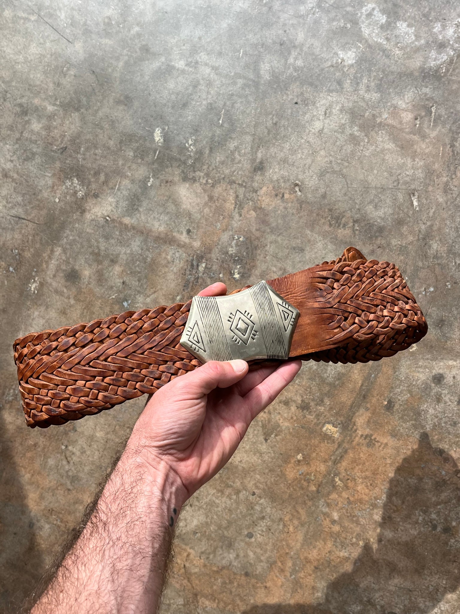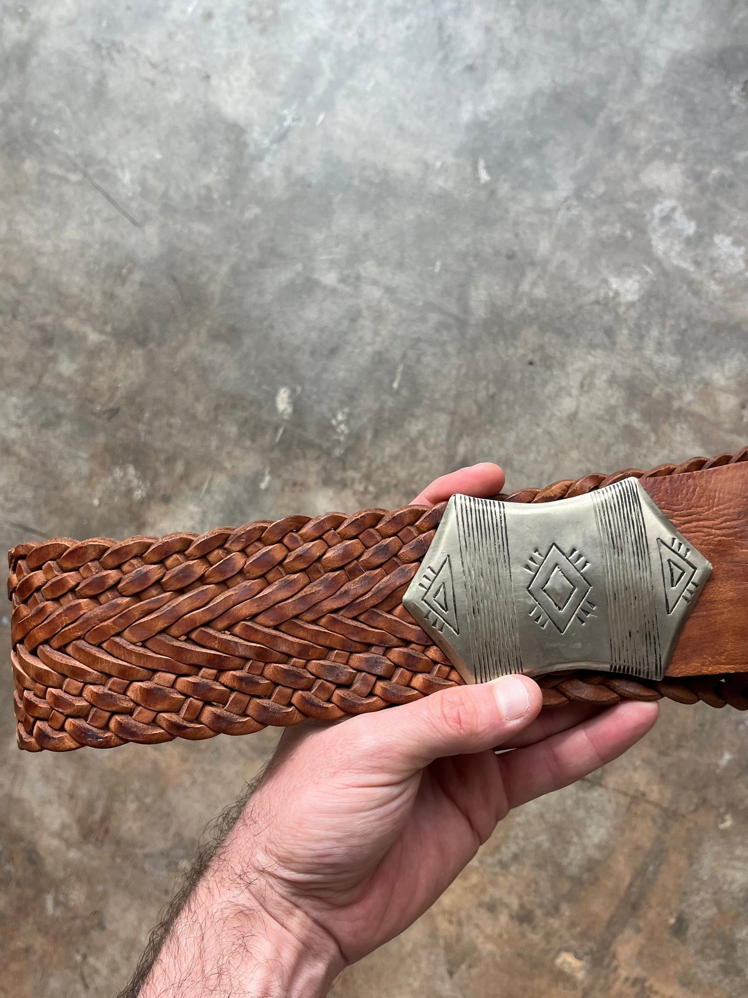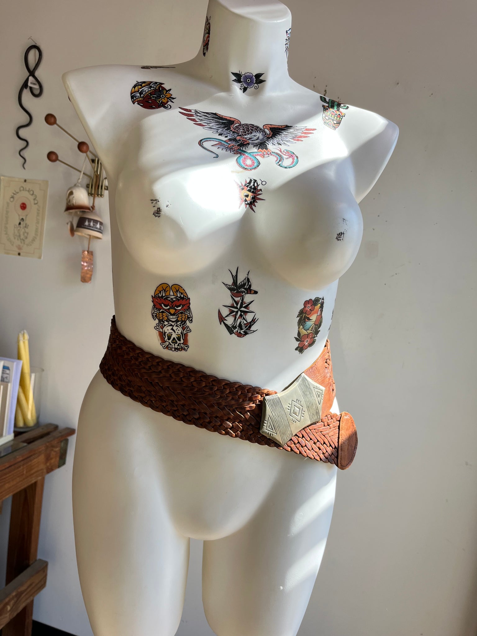 Fabric: The Belt isn't marked, but its definitely leather with metal accents (possibly pewter)