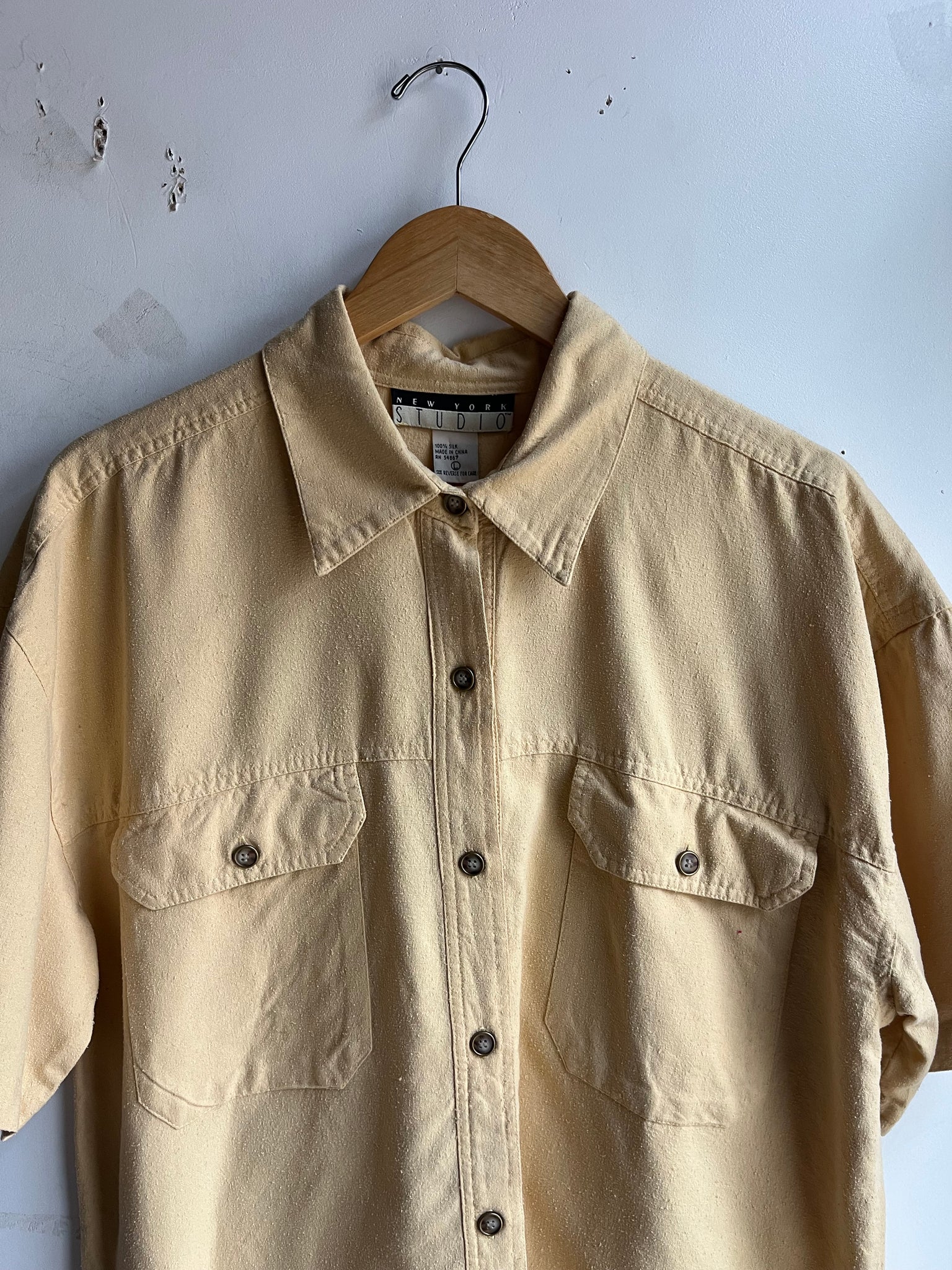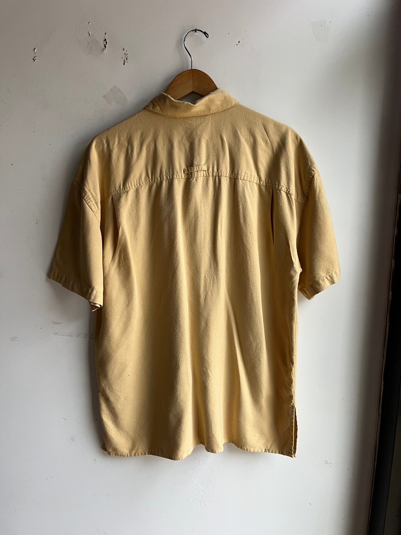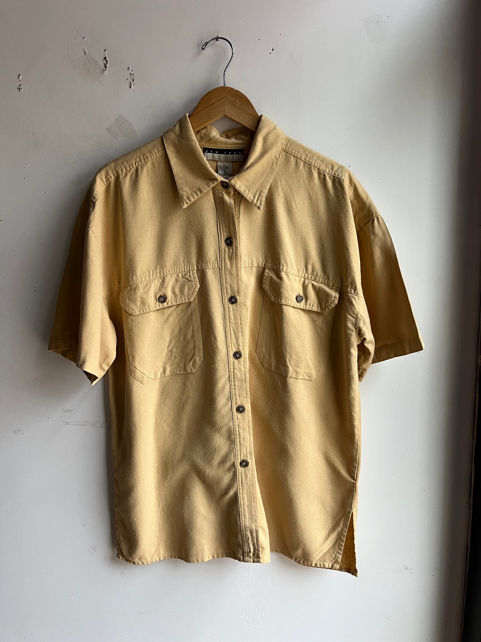 90s Mustard Raw Silk Button Down Top