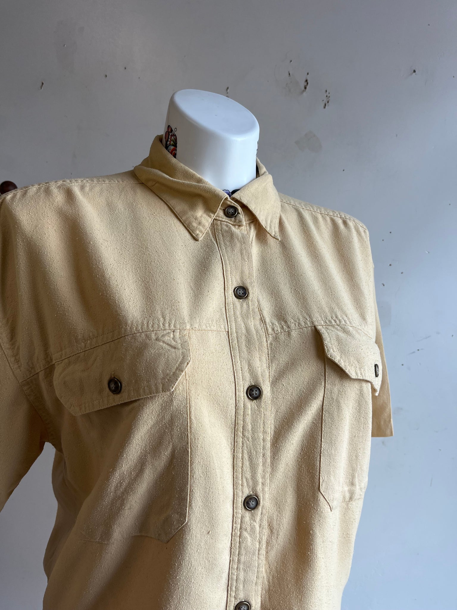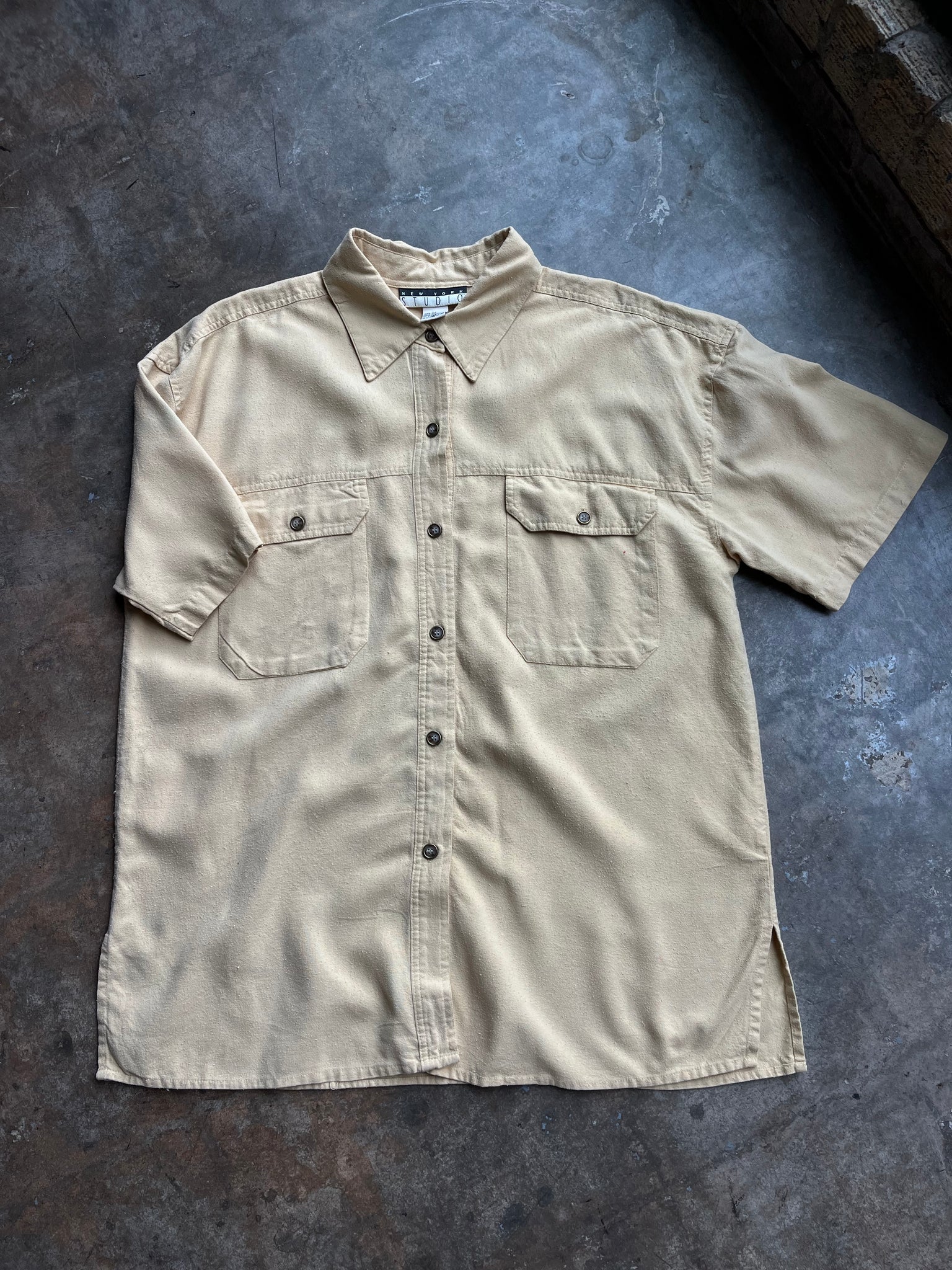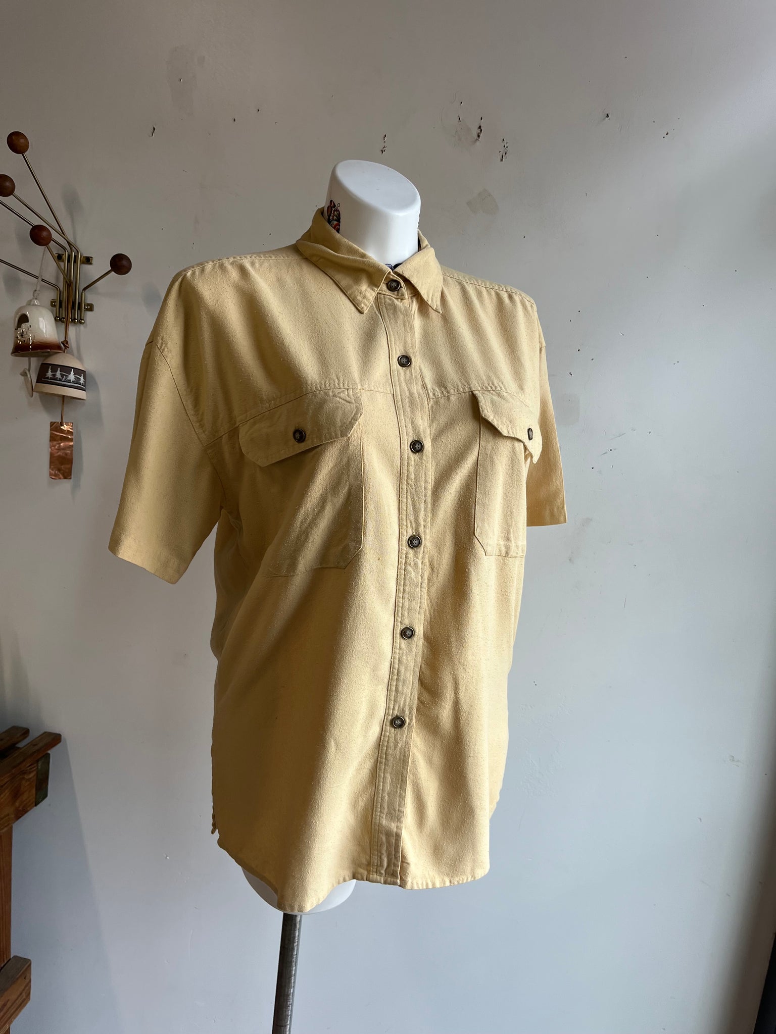 90s Mustard Raw Silk Button Down Top