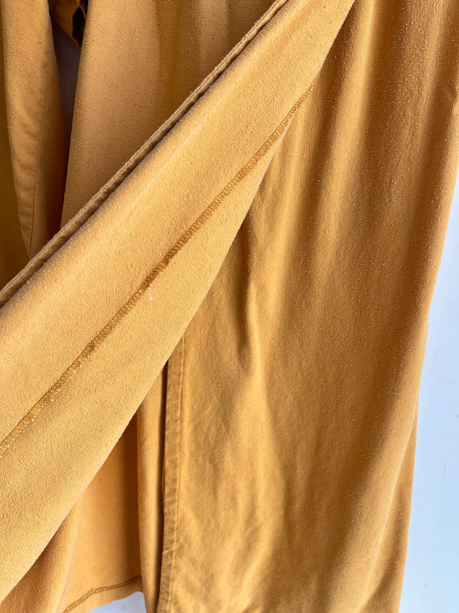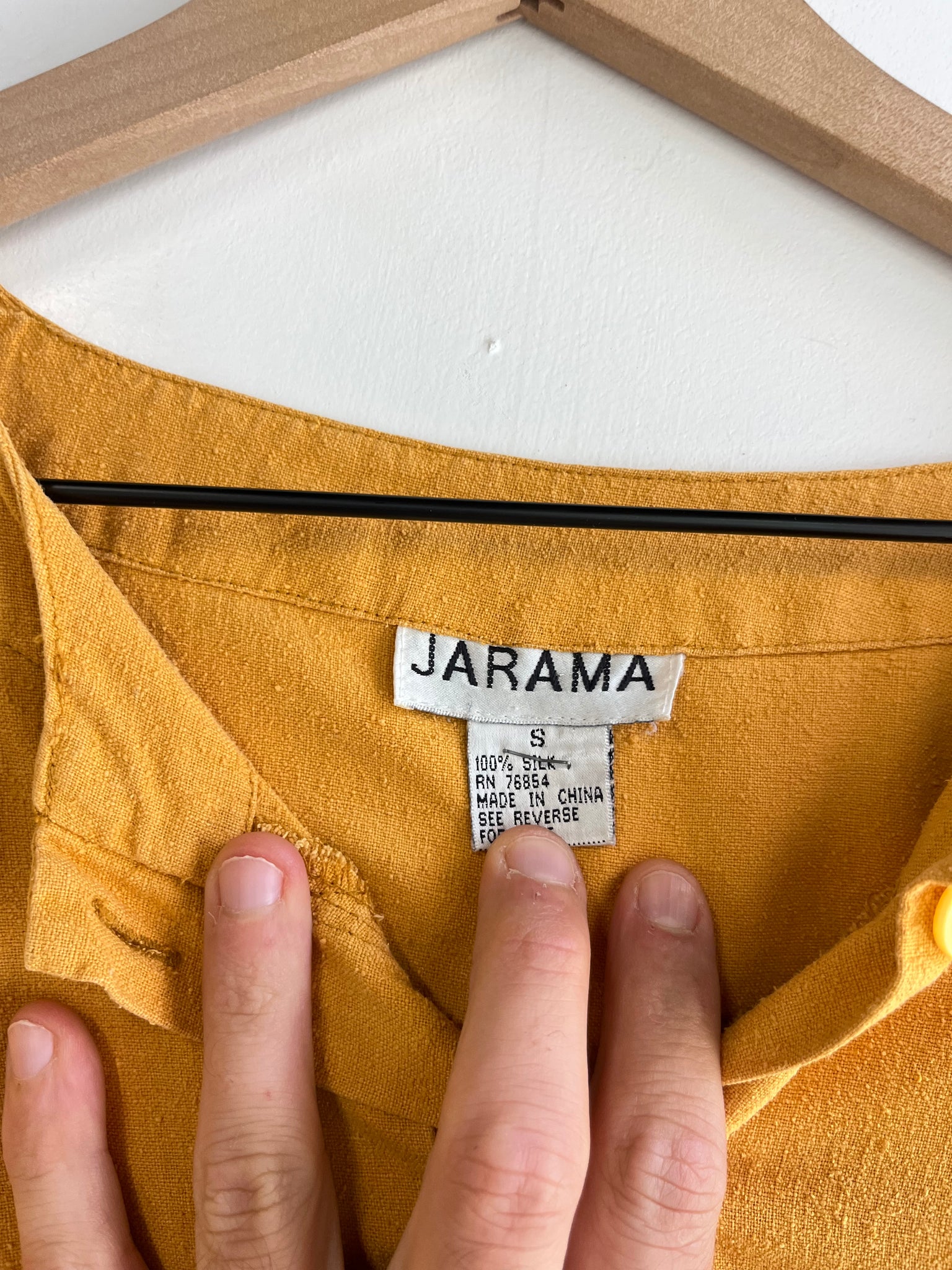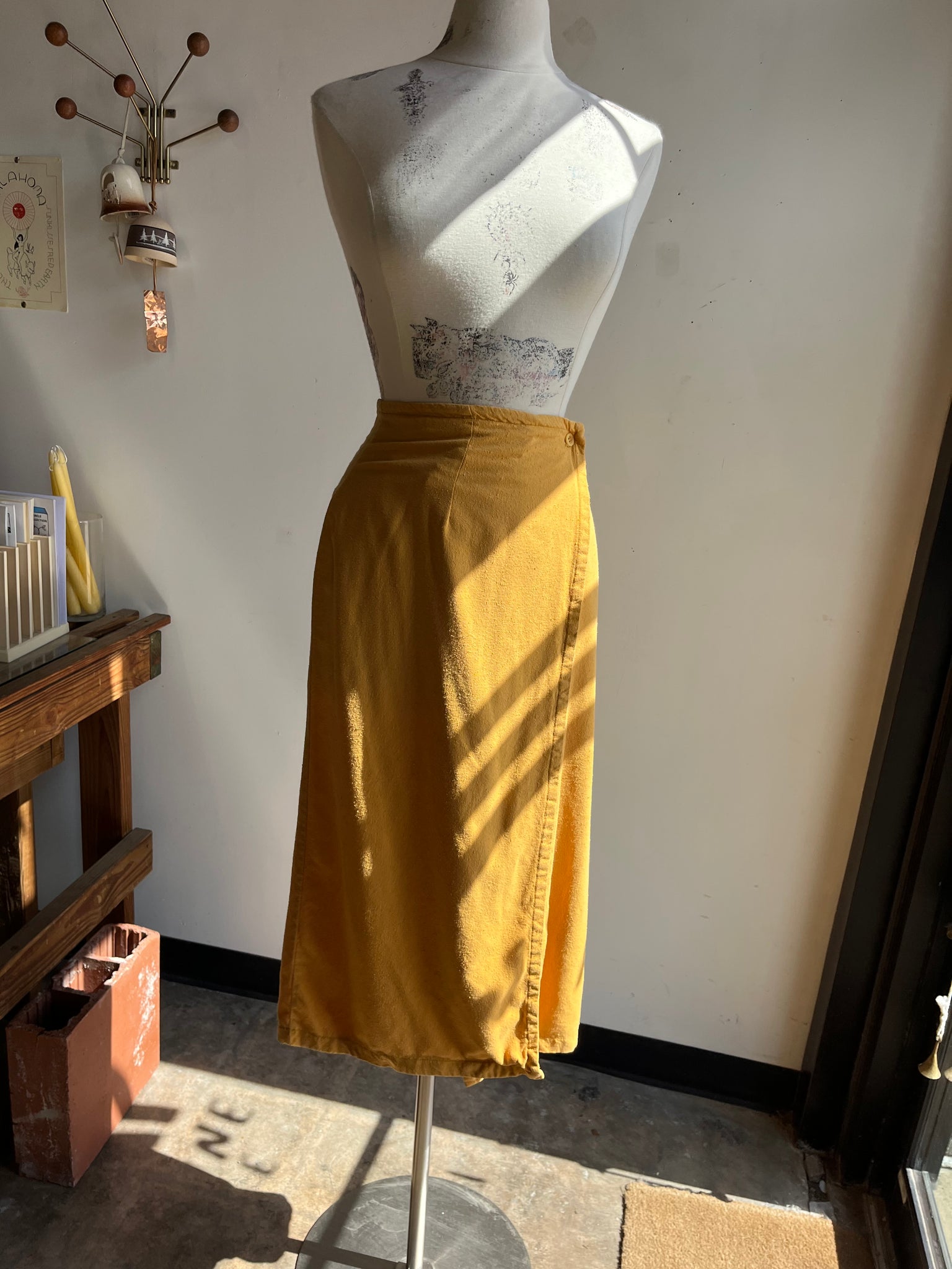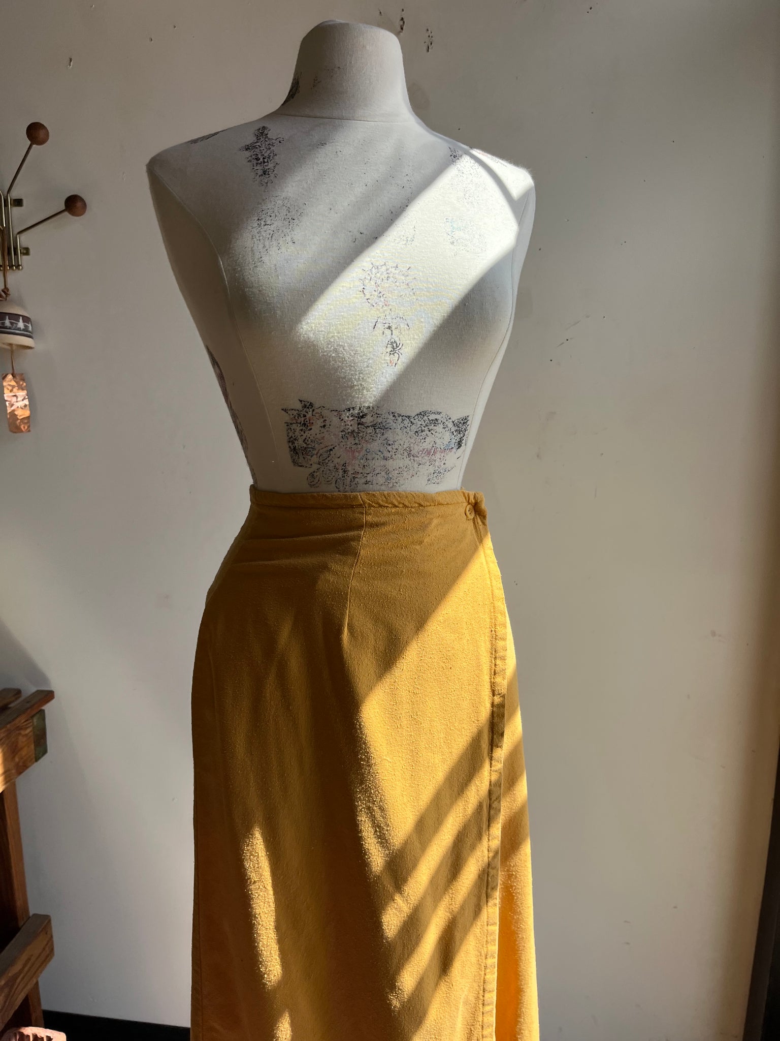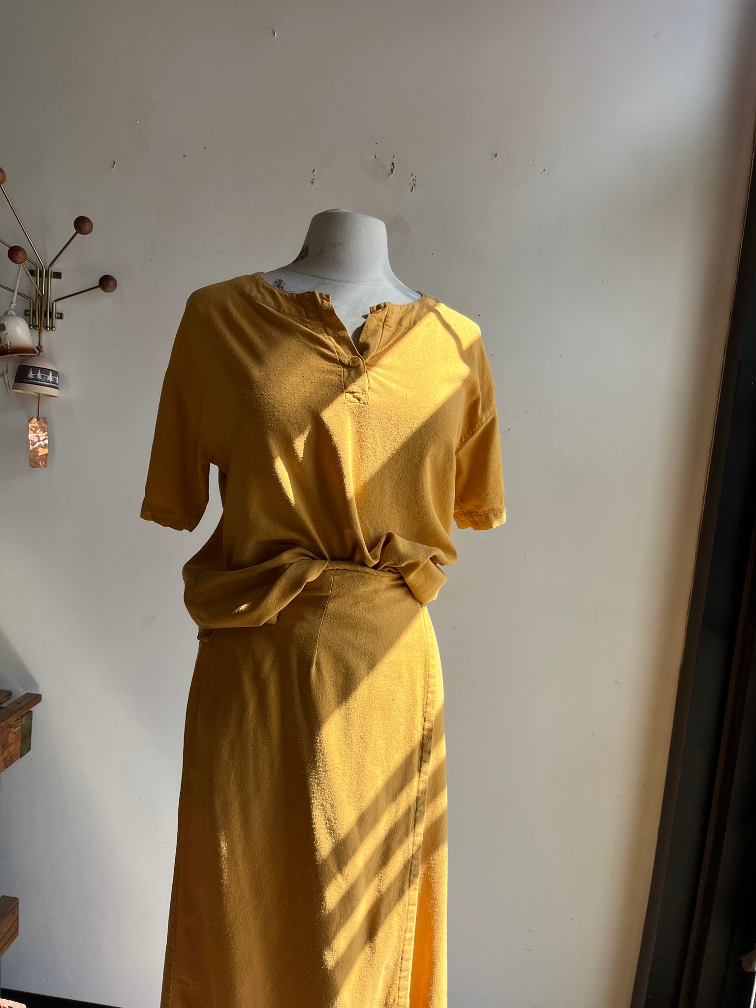 90s Mustard Raw Silk Top and Wrap Skirt Set
