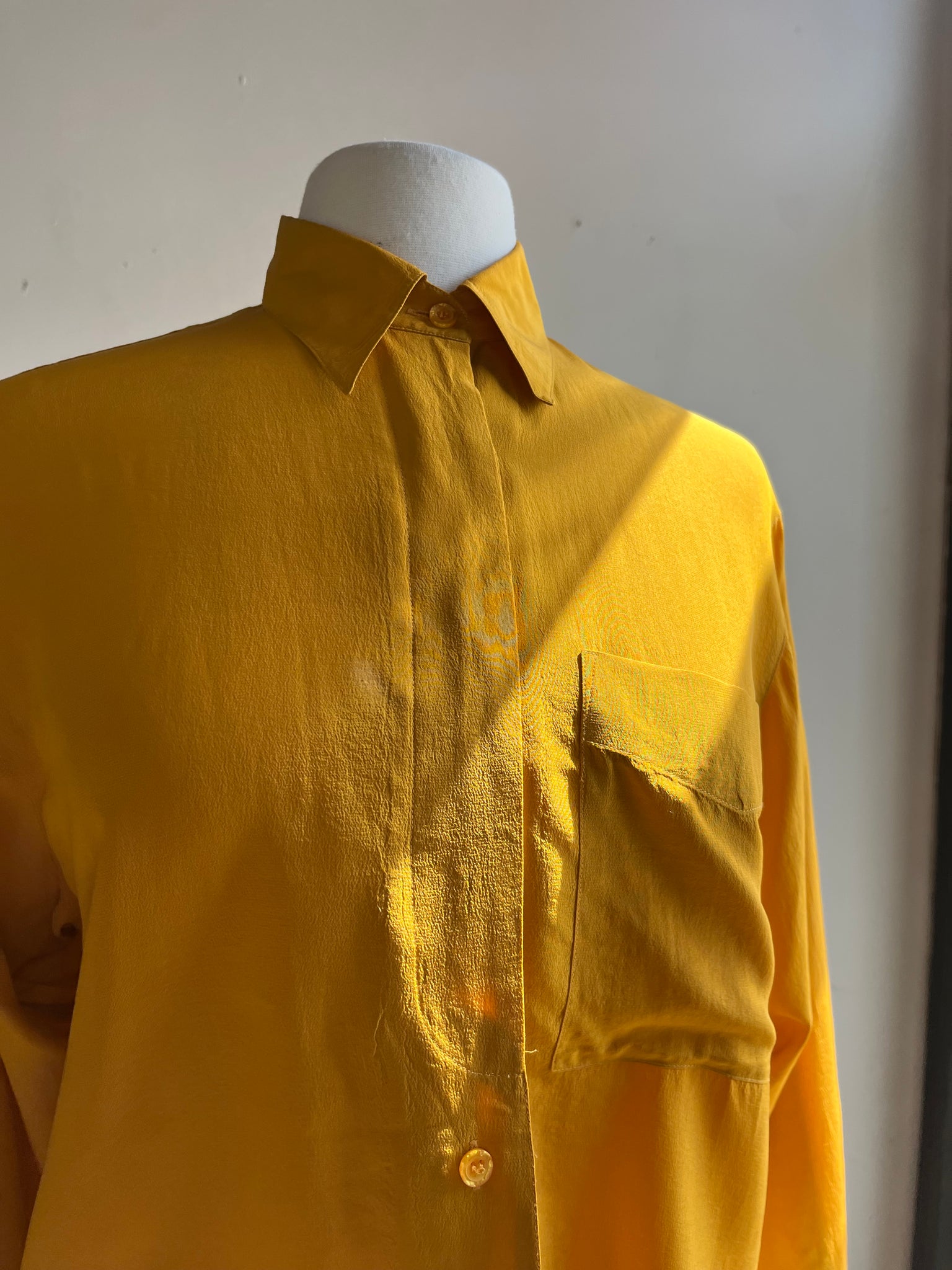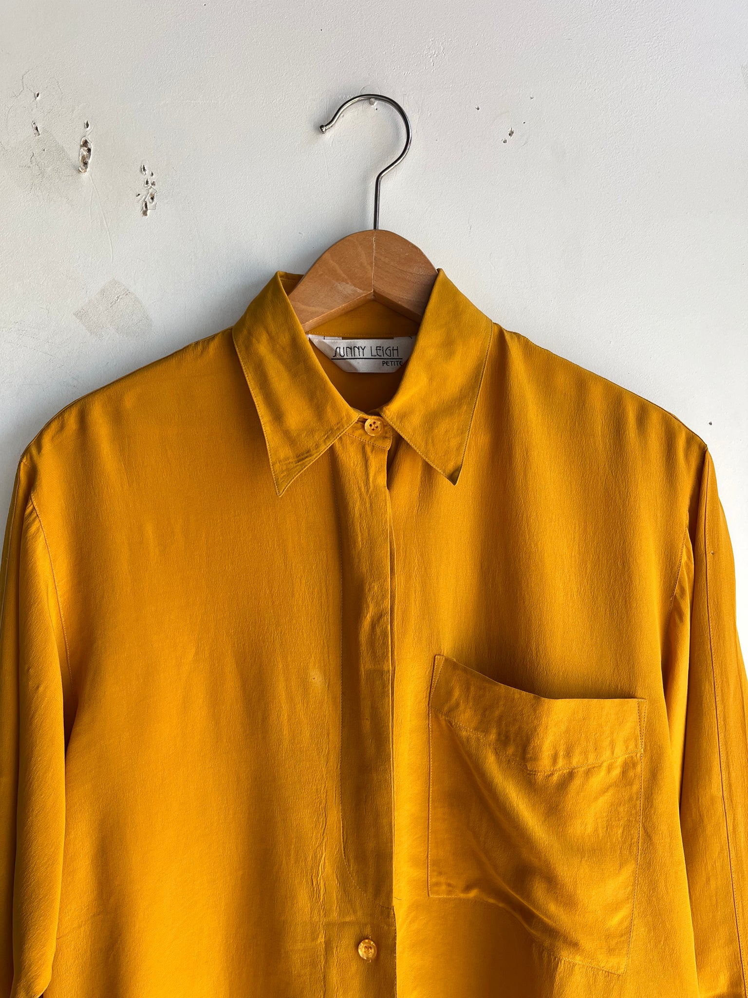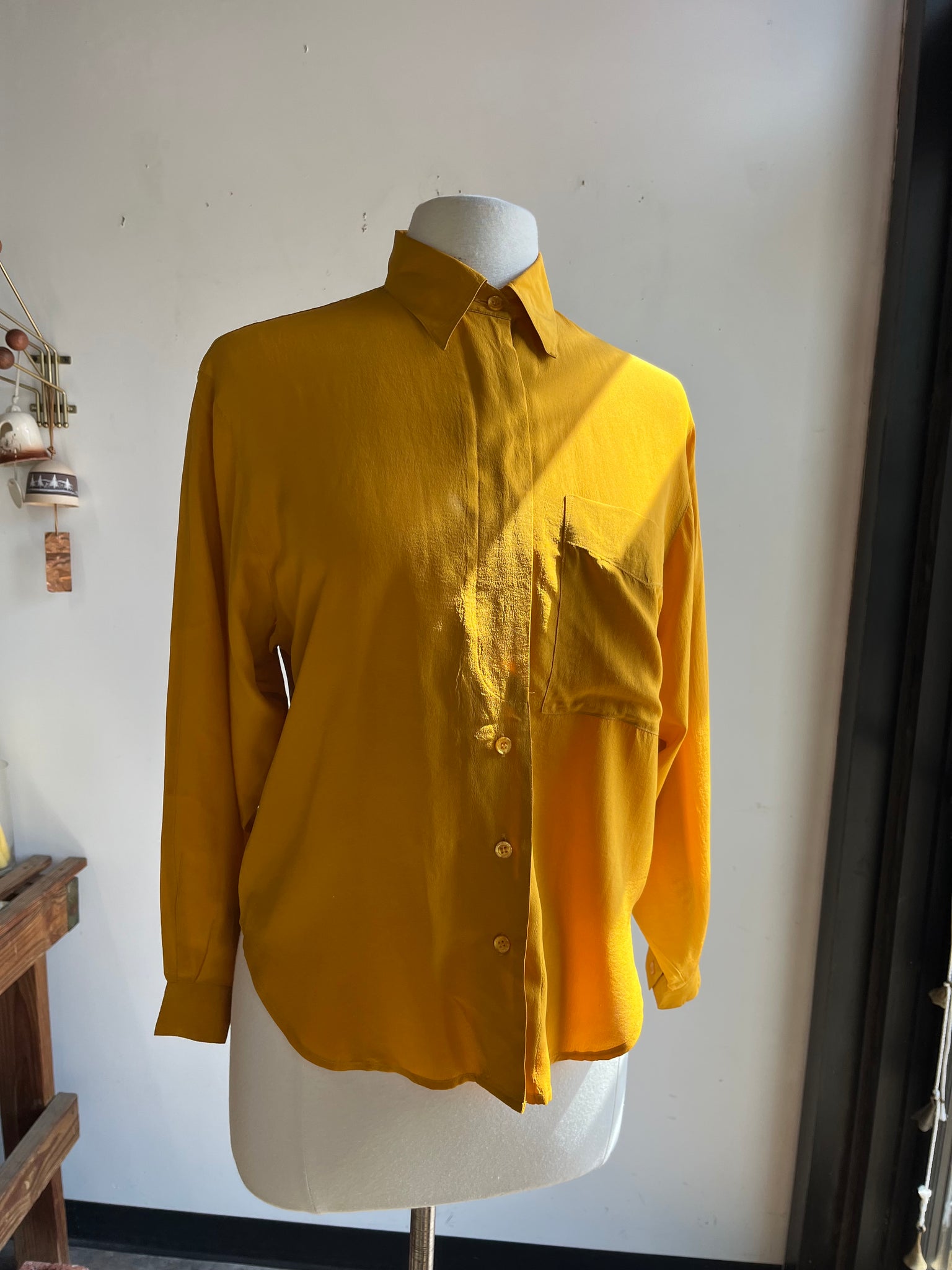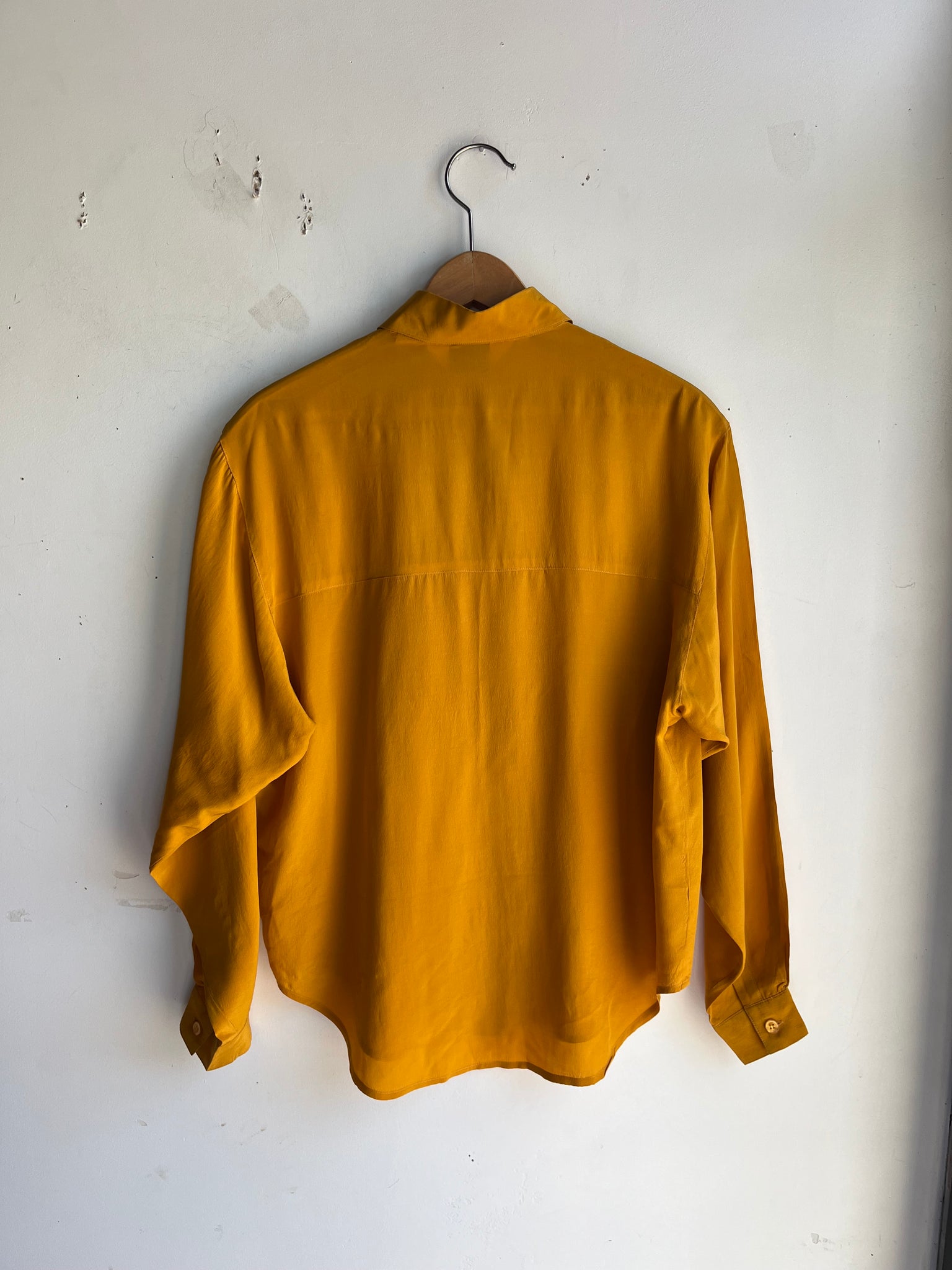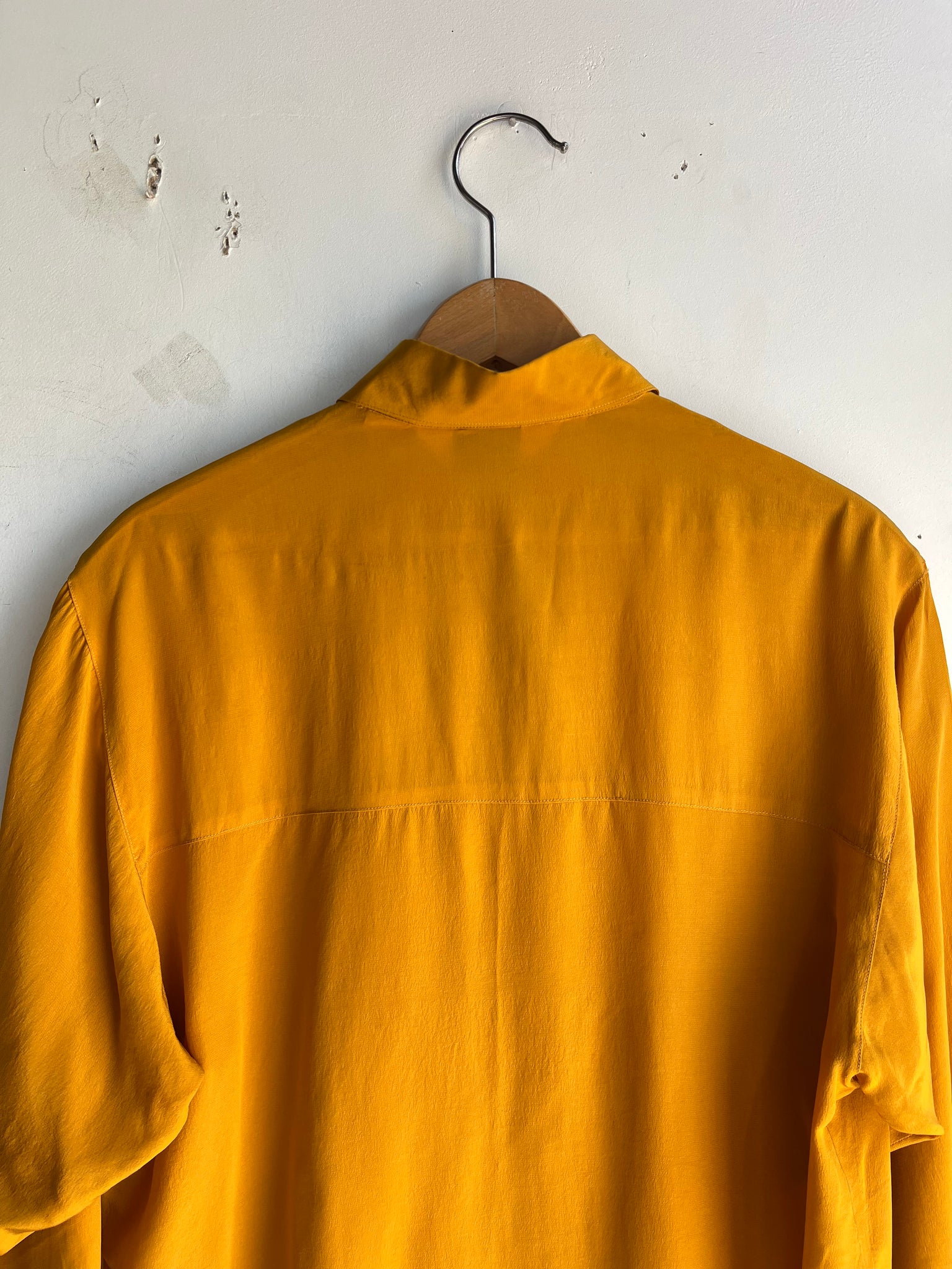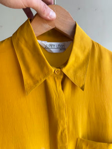 90s Mustard Silk Button Down Top