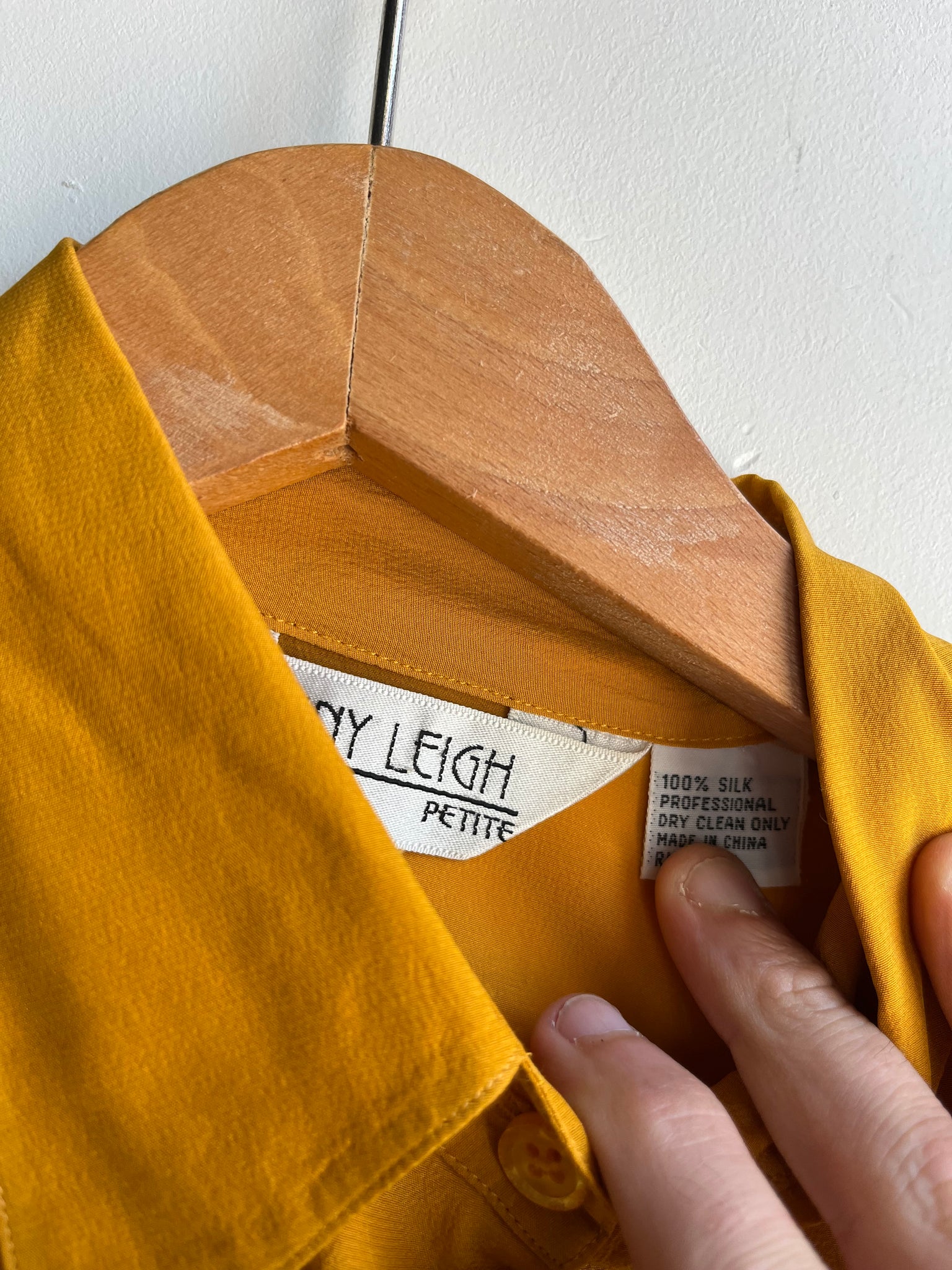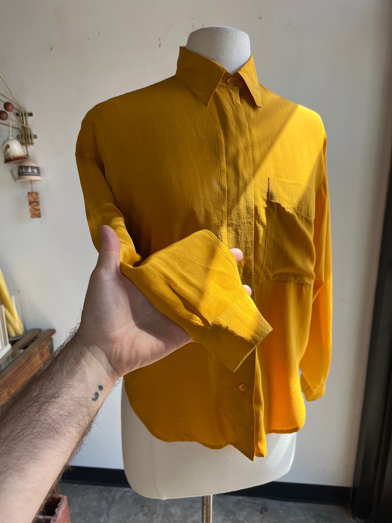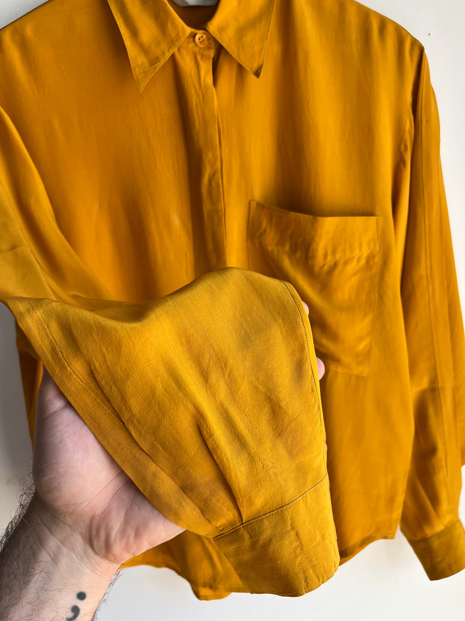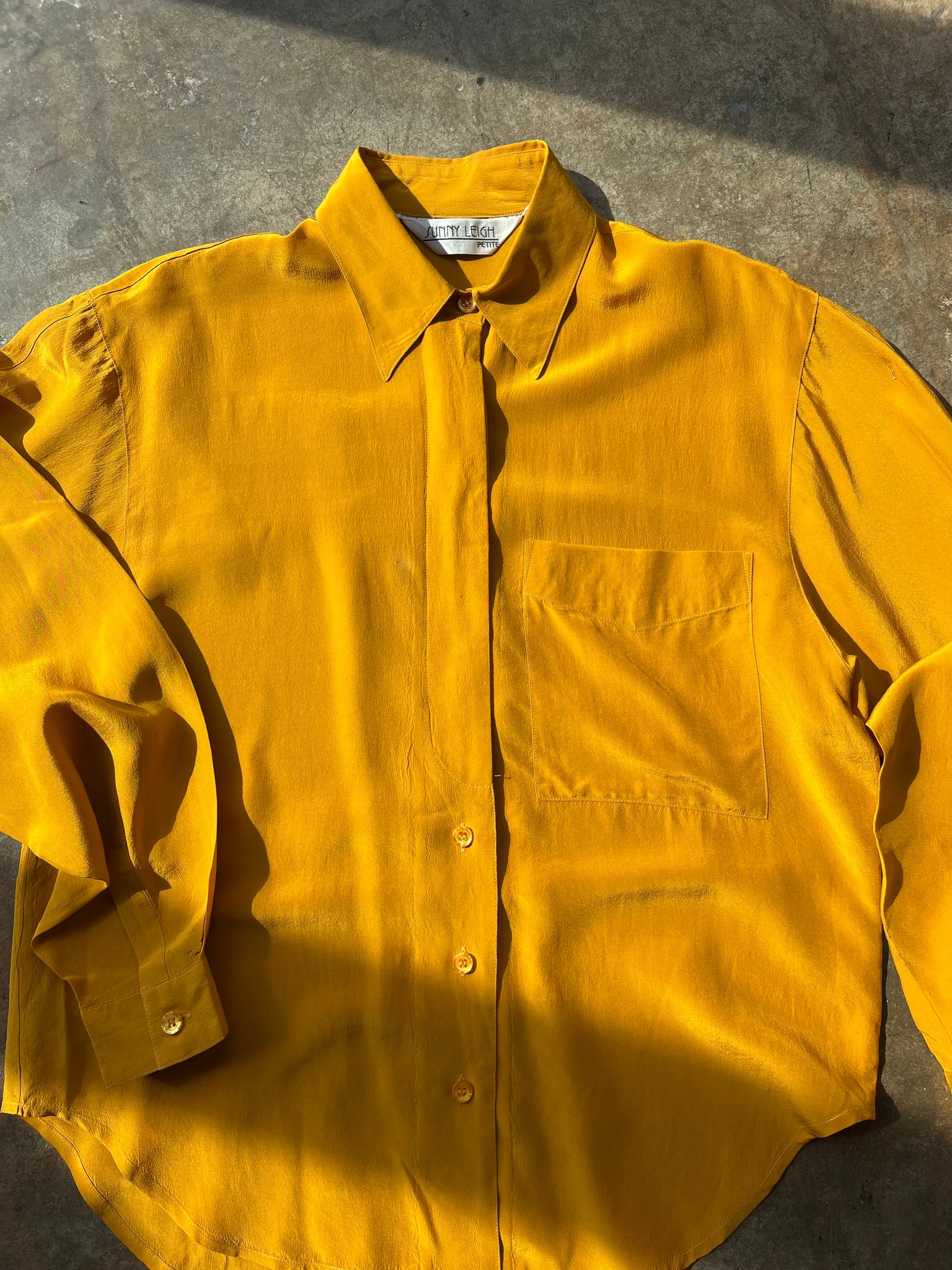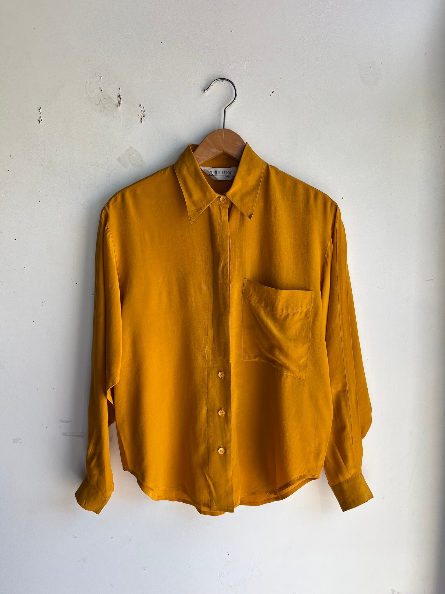 90s Mustard Silk Button Down Top
