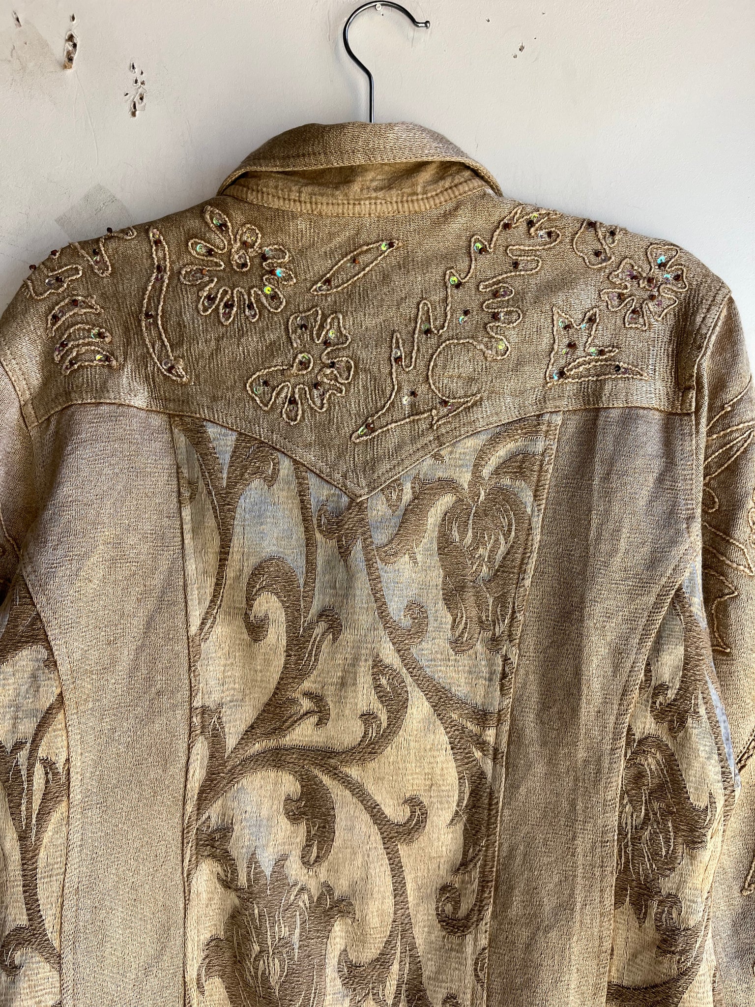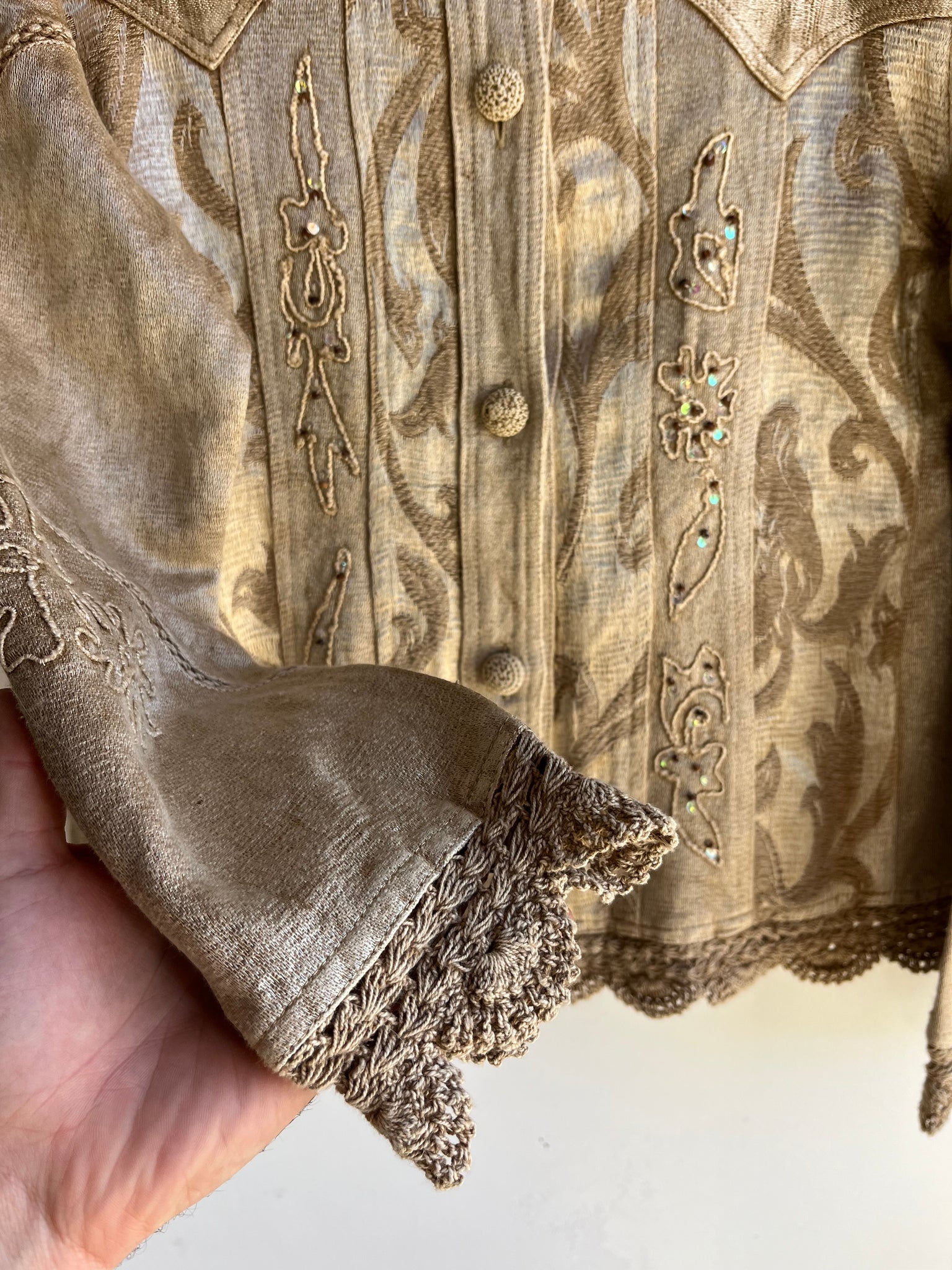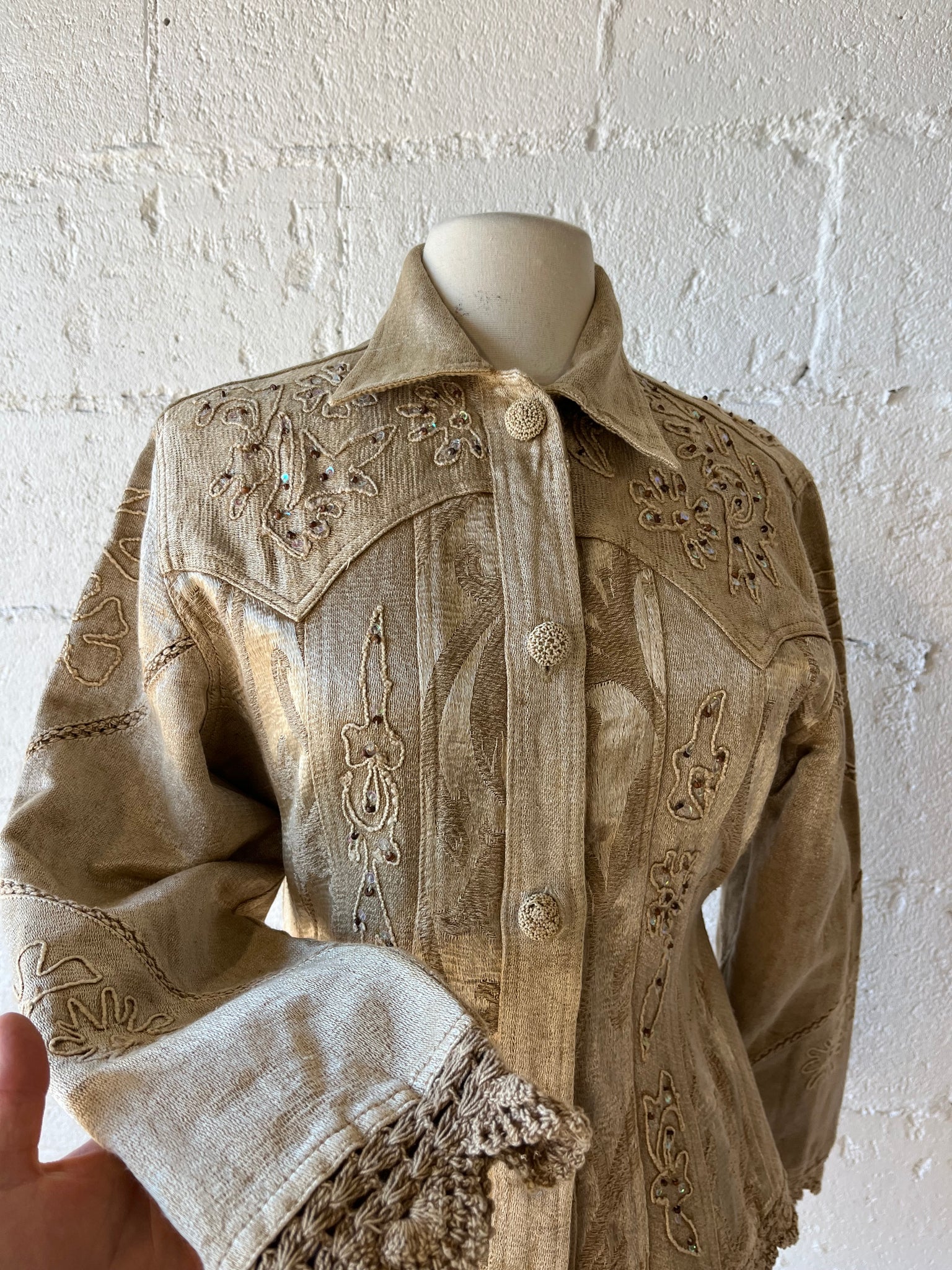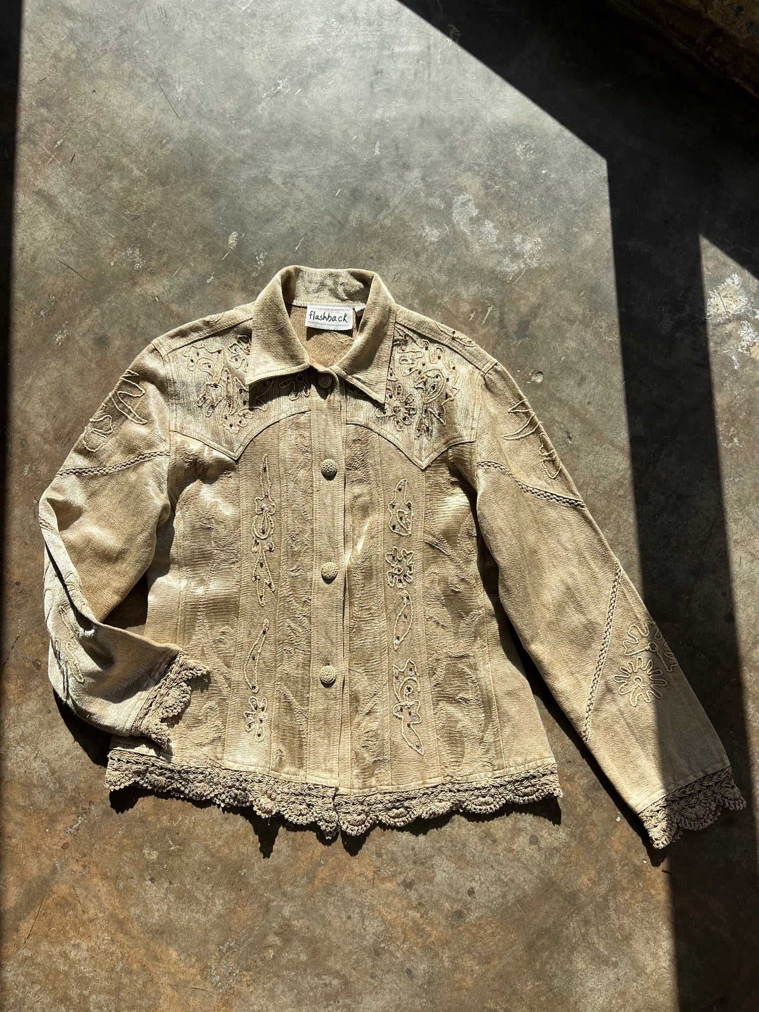 90s Western Cut Hand Embroidered Crochet Trim Jacket