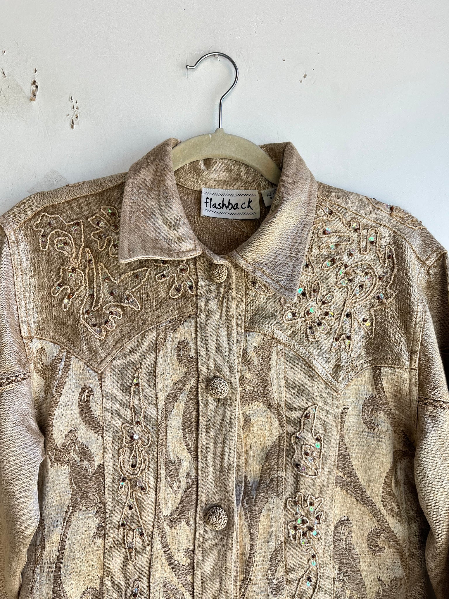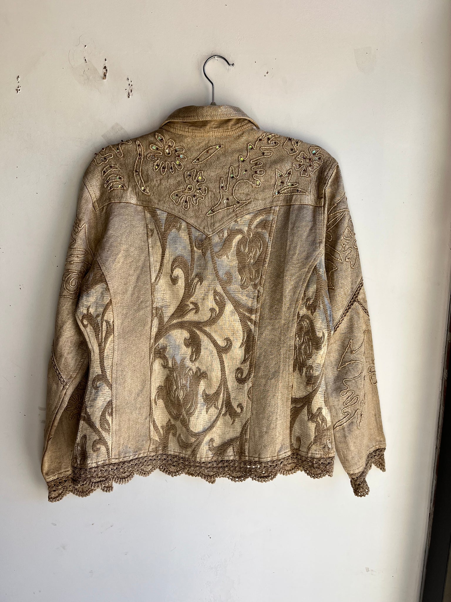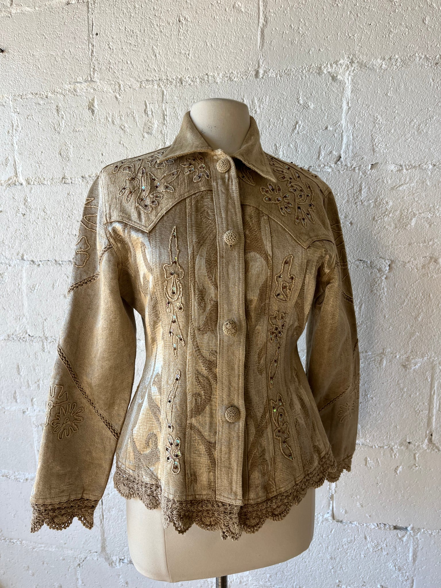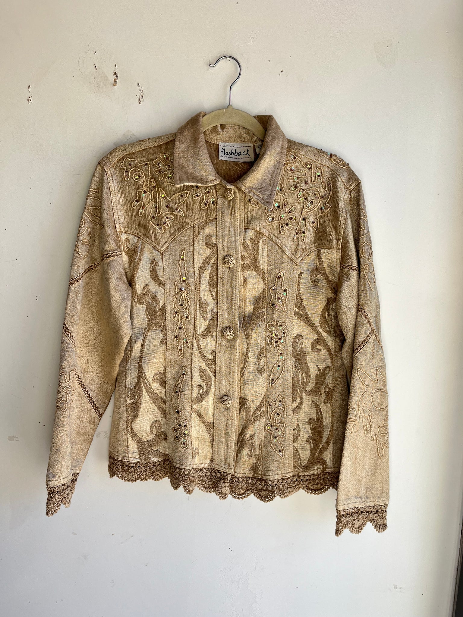 90s Western Cut Hand Embroidered Crochet Trim Jacket