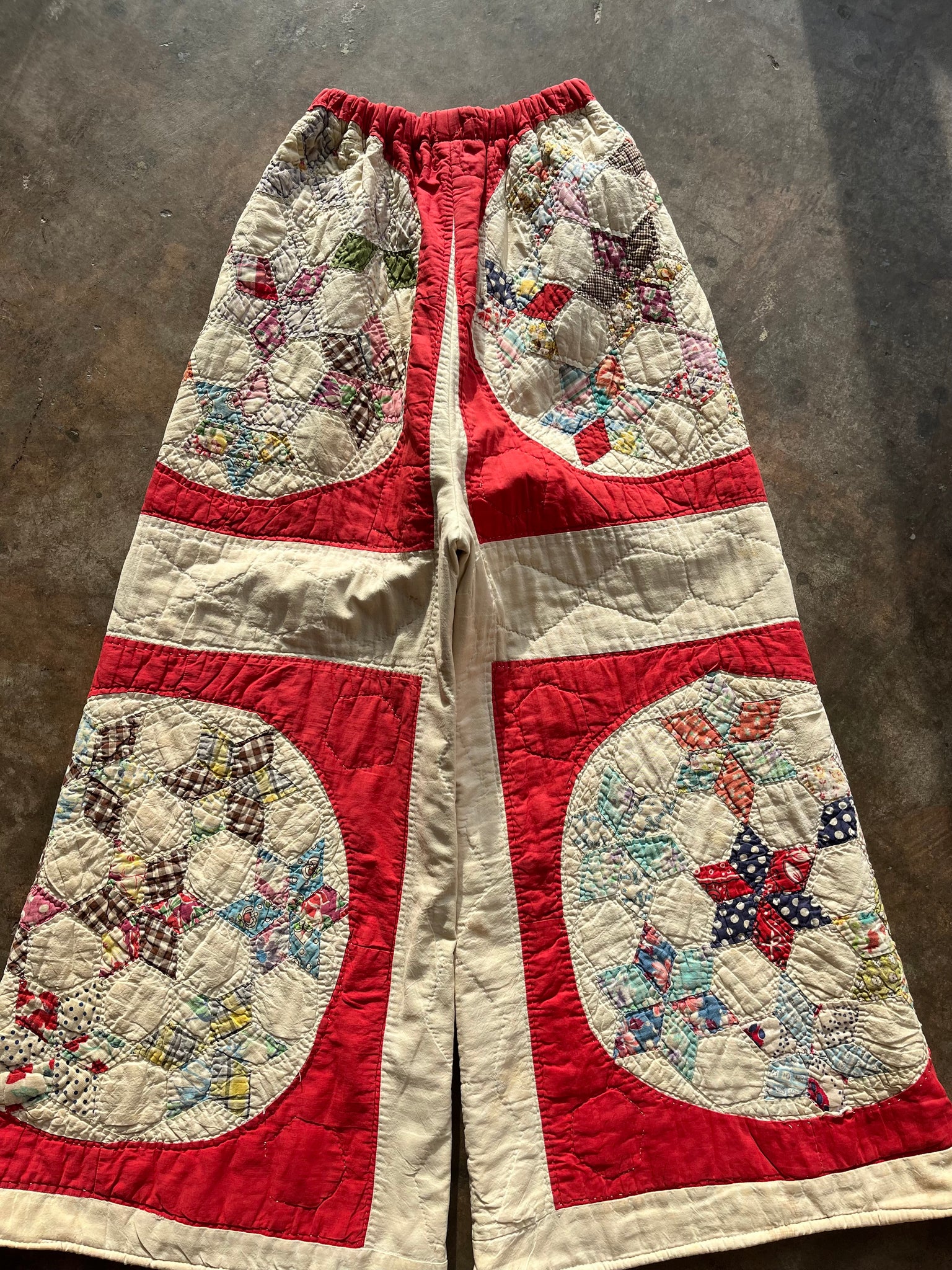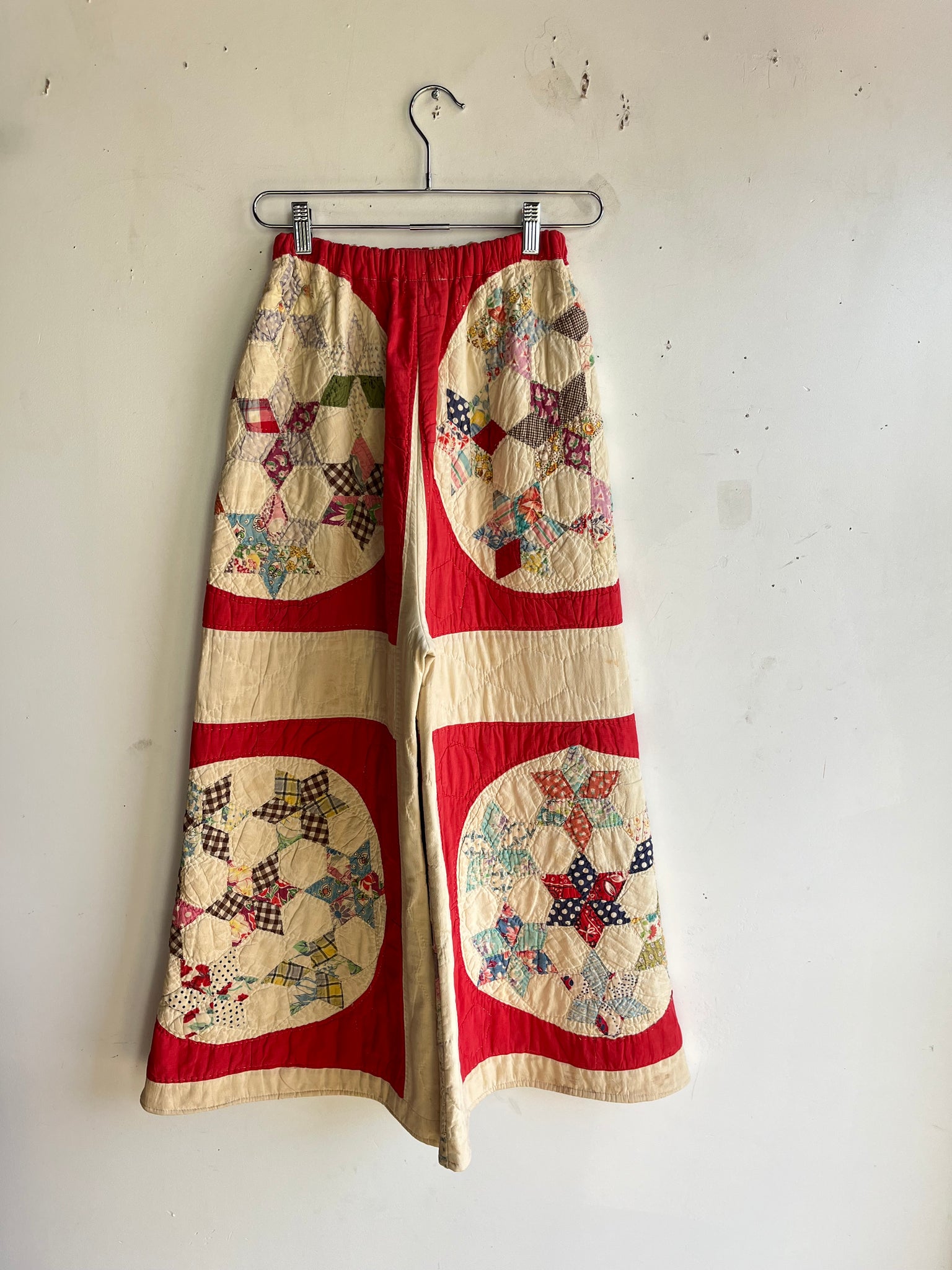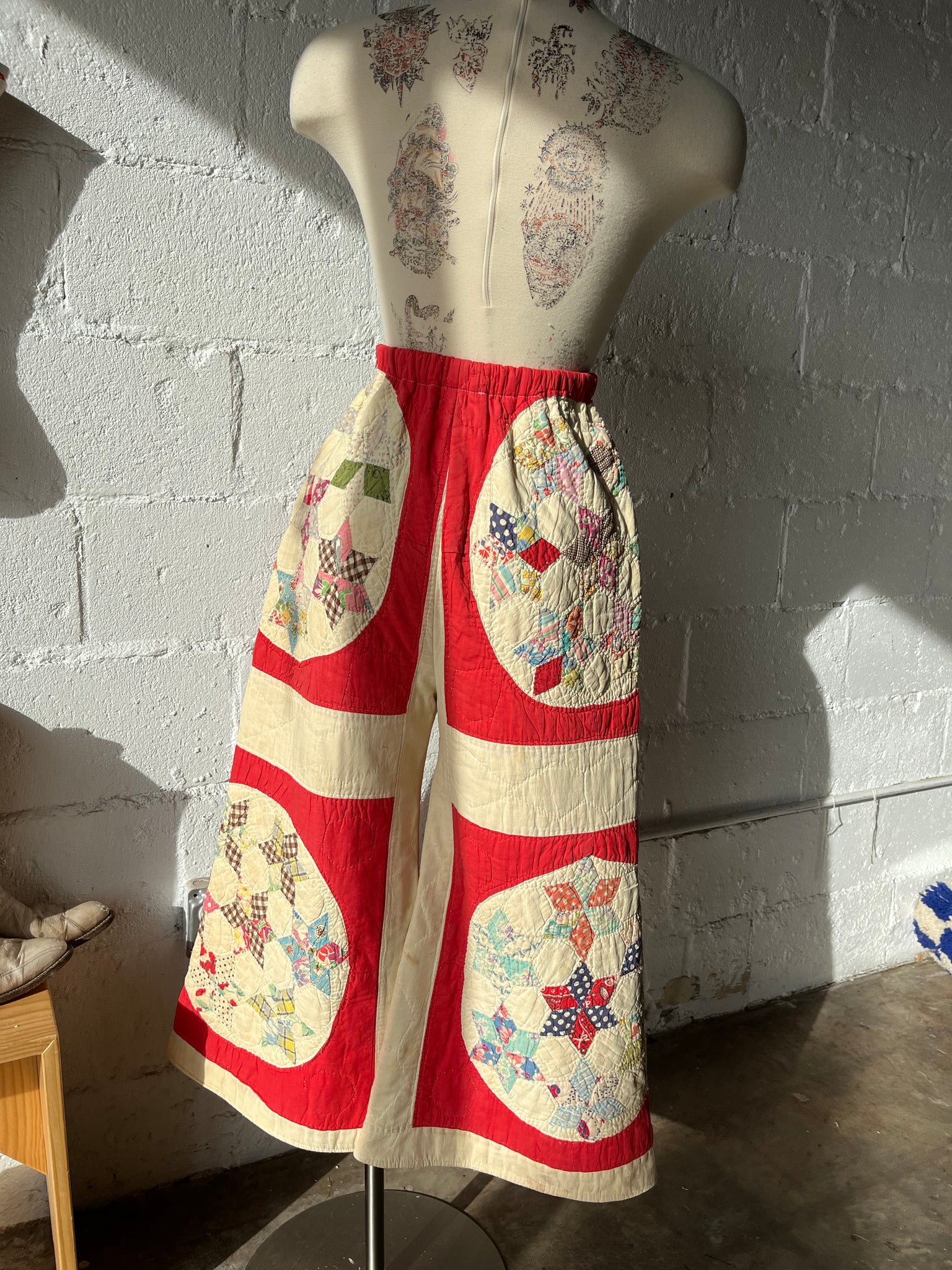 Handmade High Waist Quilt Palazzo Pants-Ultra Rare 1920s Seven Stars for Seven Sisters Flour Sack