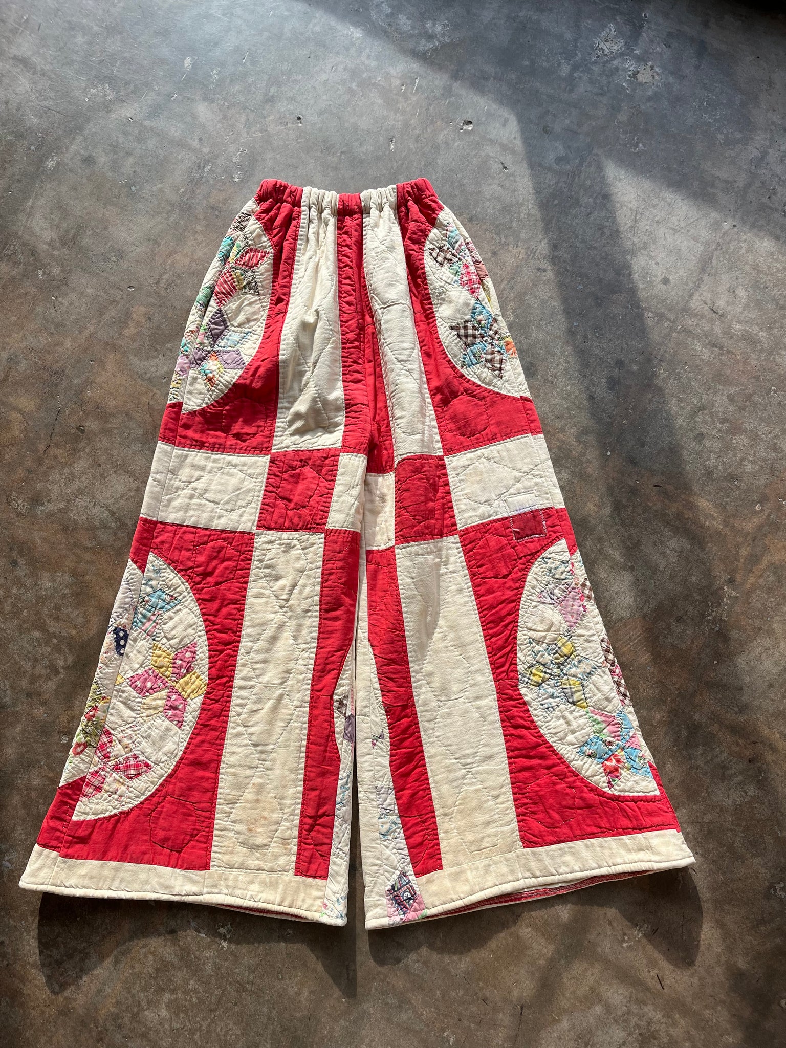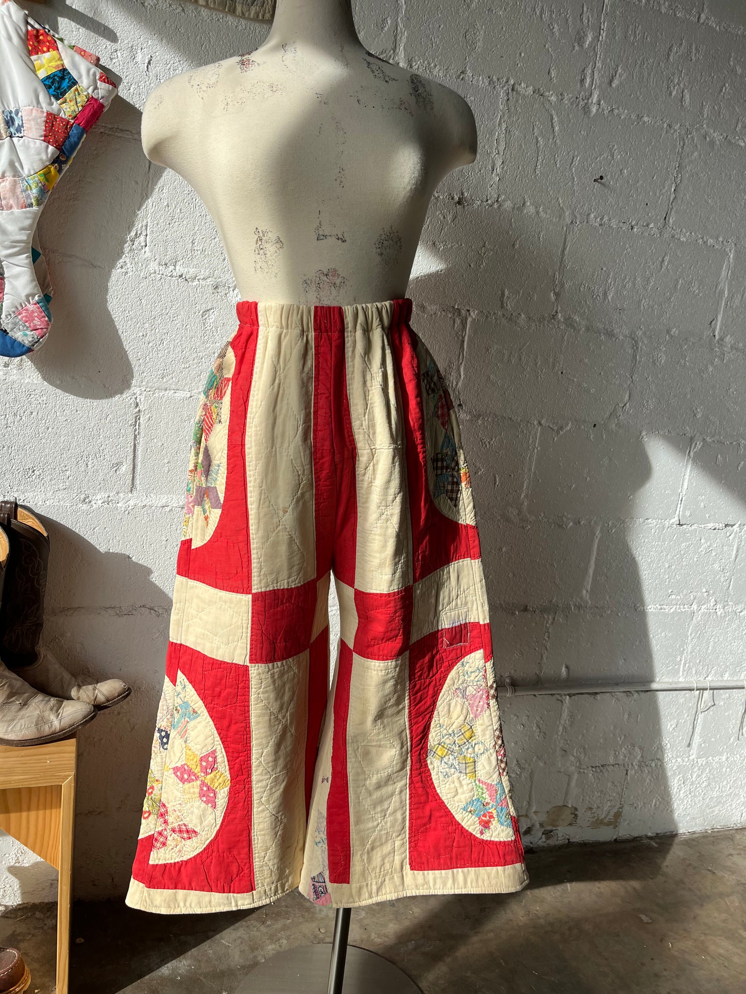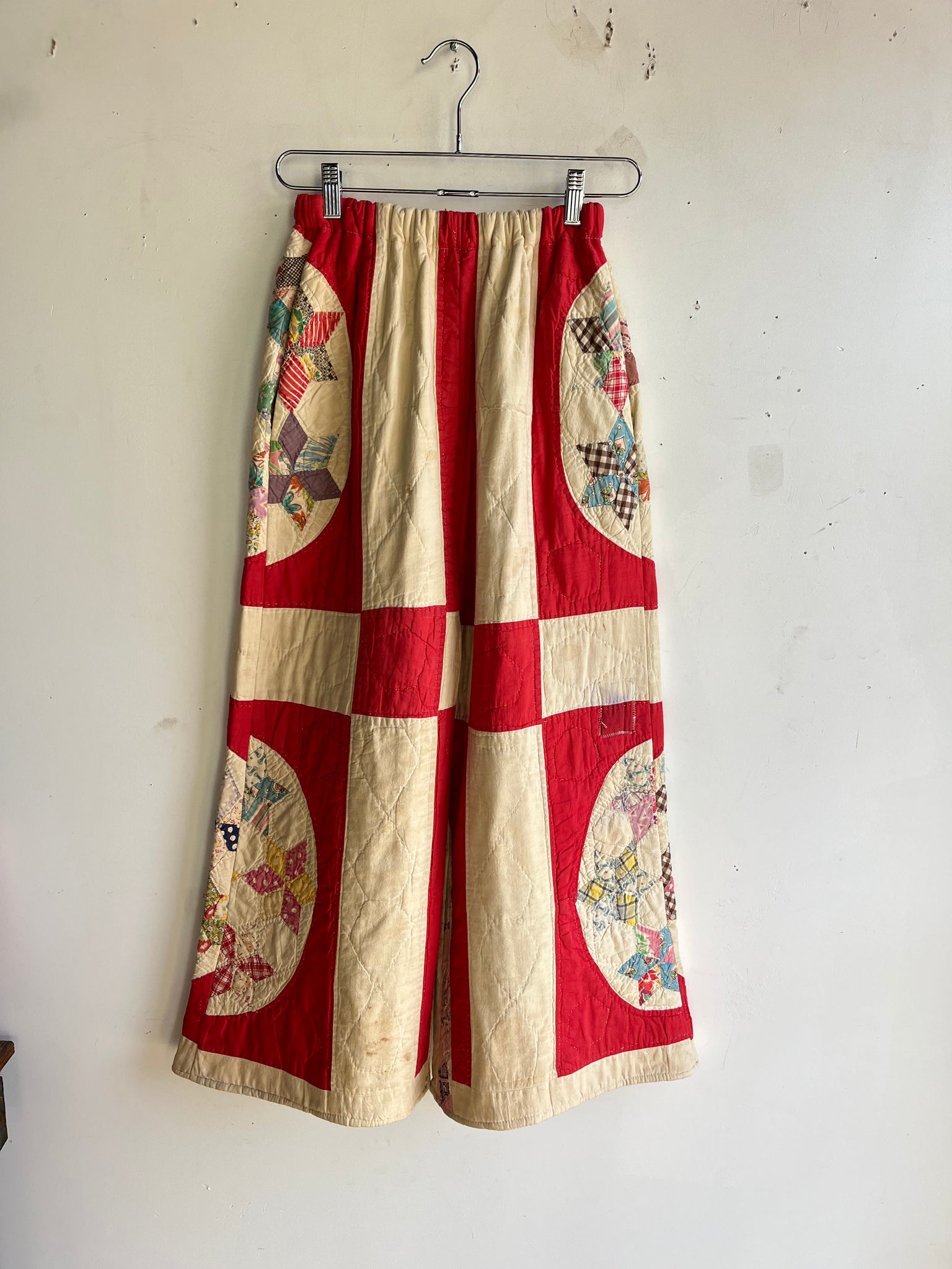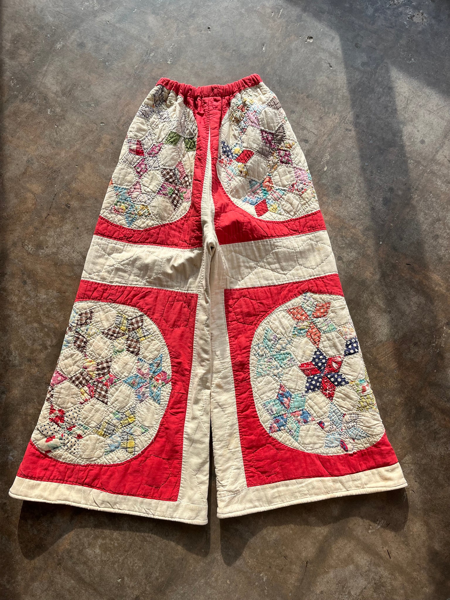 Handmade High Waist Quilt Palazzo Pants-Ultra Rare 1920s Seven Stars for Seven Sisters Flour Sack