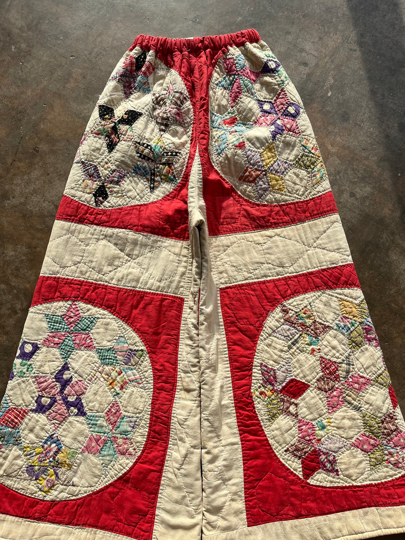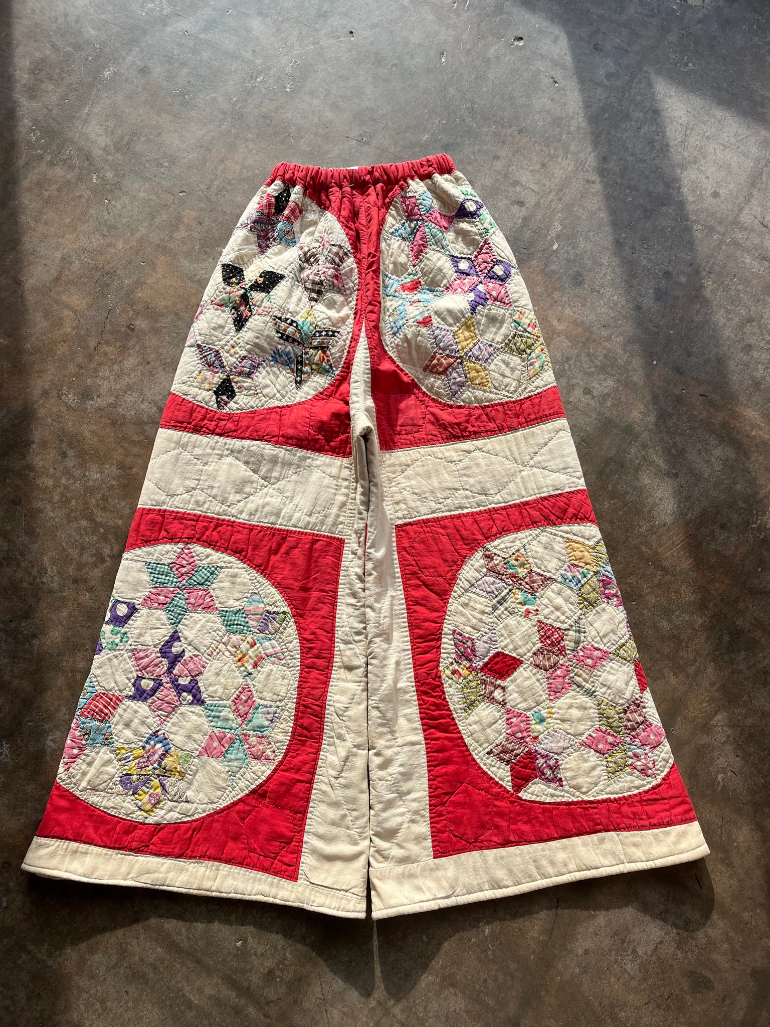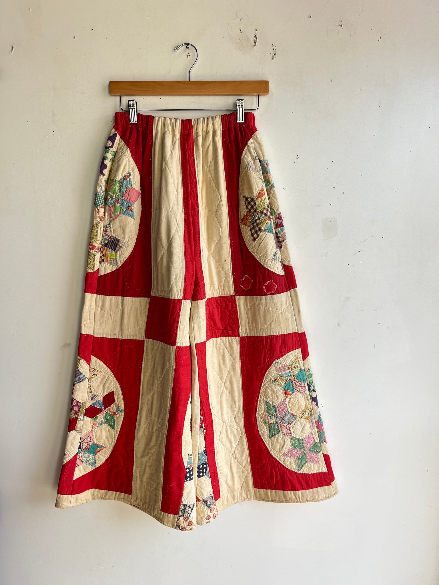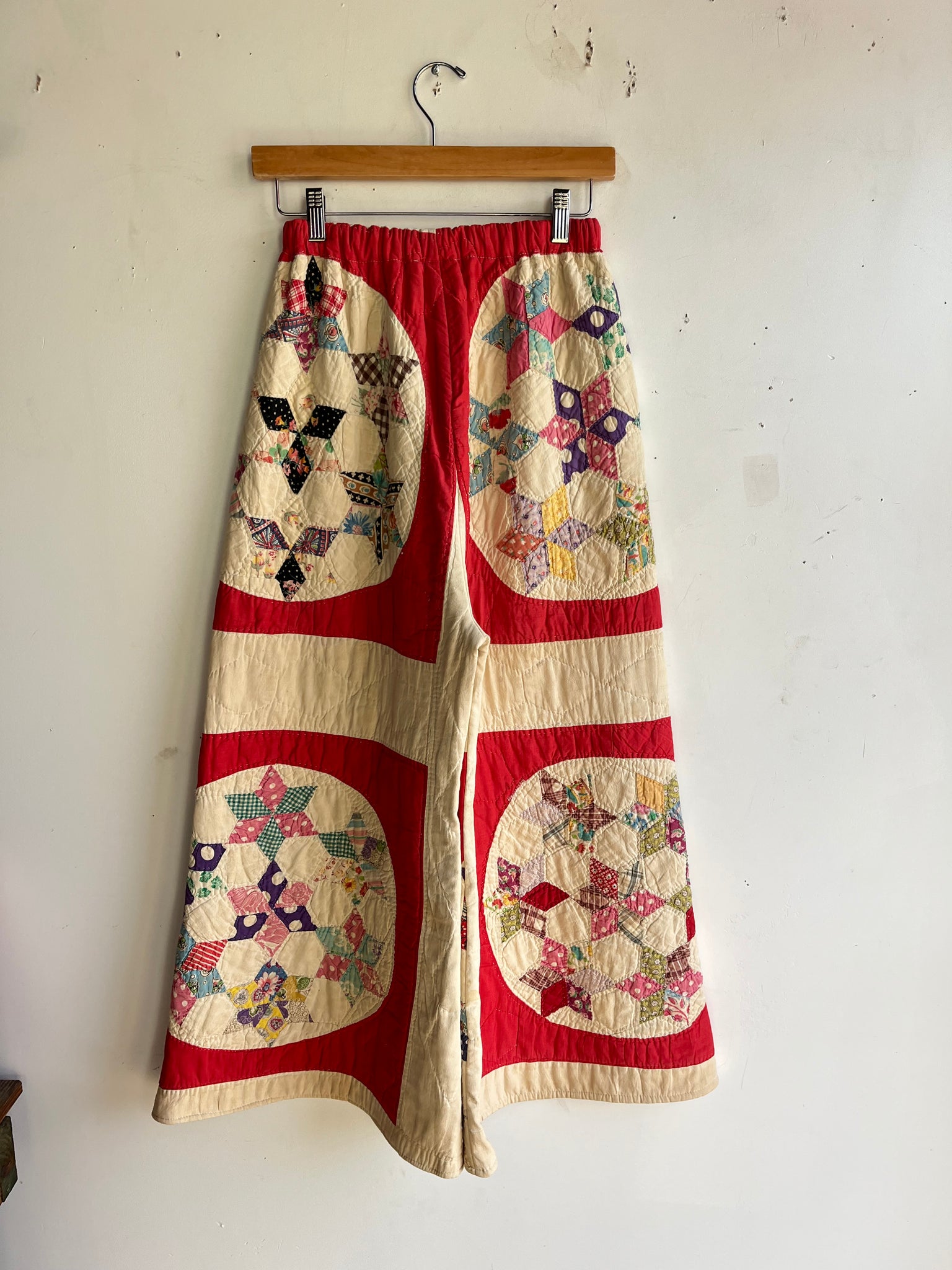 Handmade High Waist Quilt Palazzo Pants-Ultra Rare 1920s Seven Stars for Seven Sisters Flour Sack