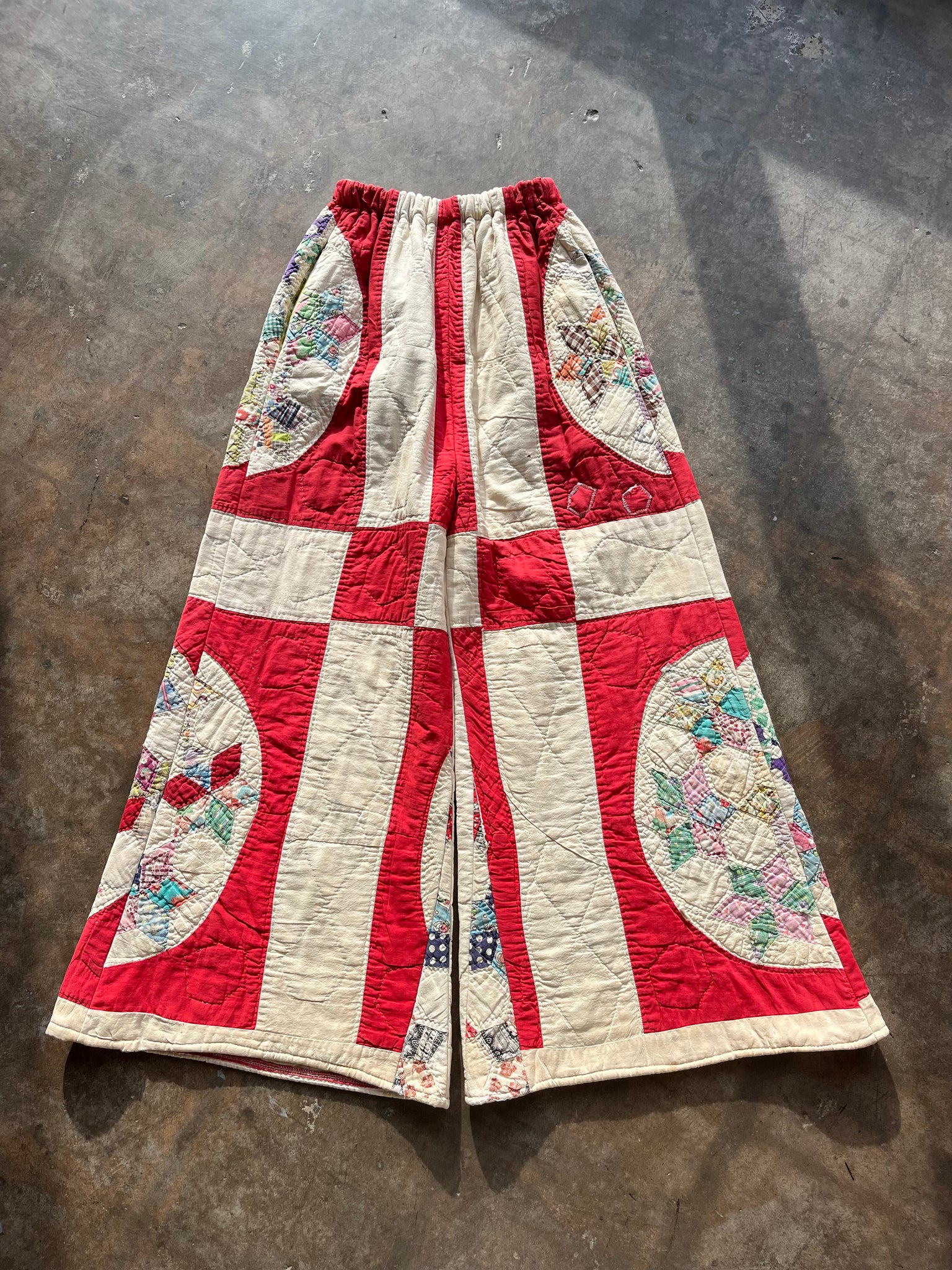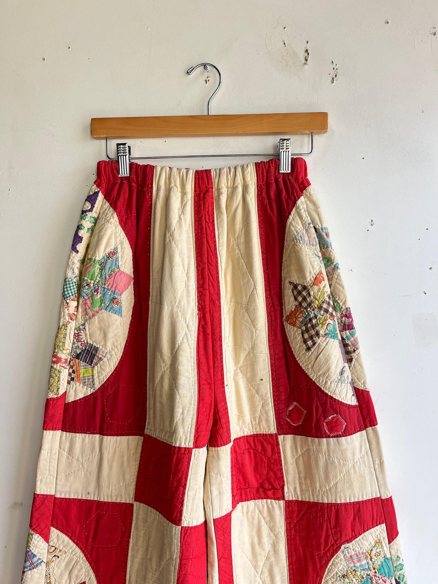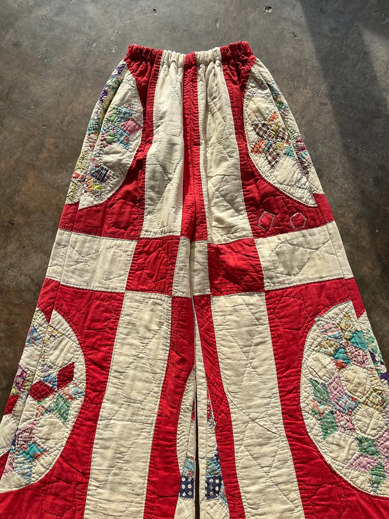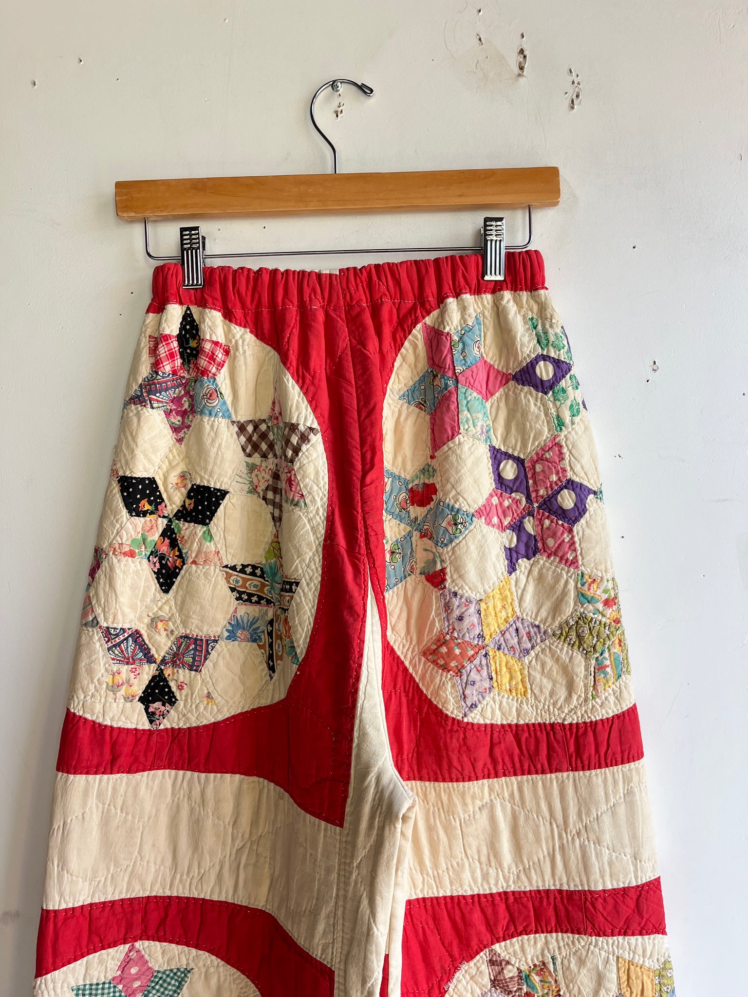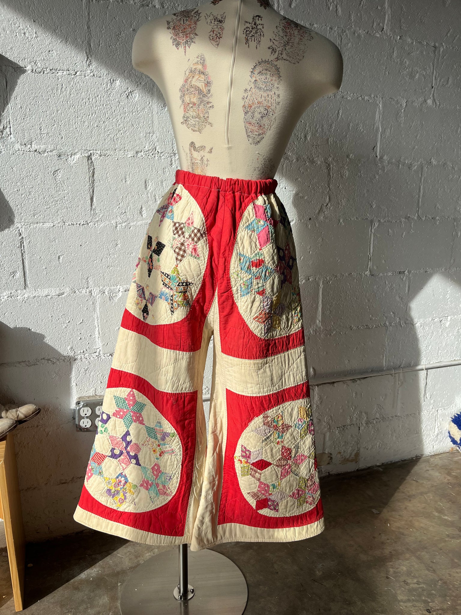 Handmade High Waist Quilt Palazzo Pants-Ultra Rare 1920s Seven Stars for Seven Sisters Flour Sack