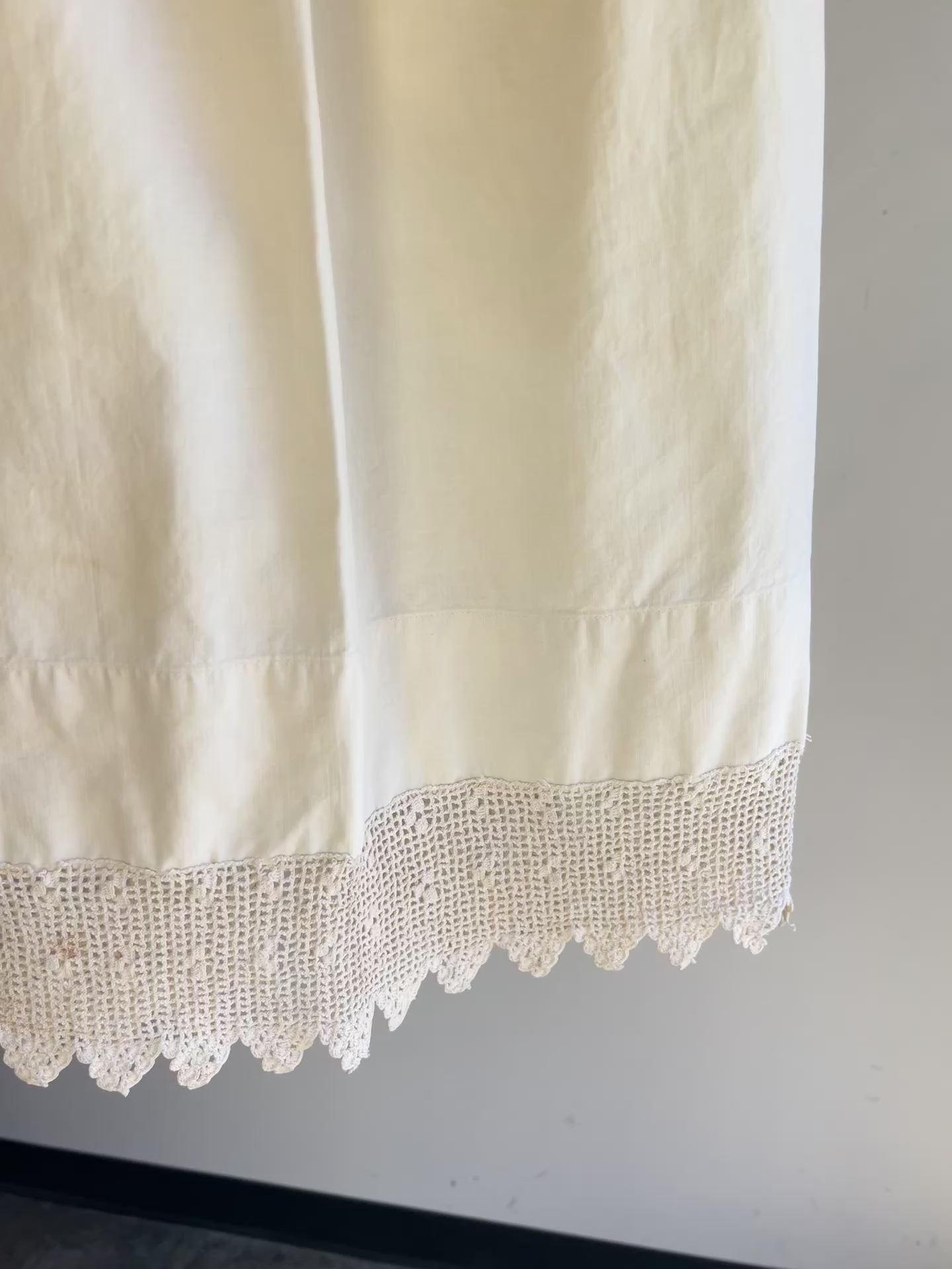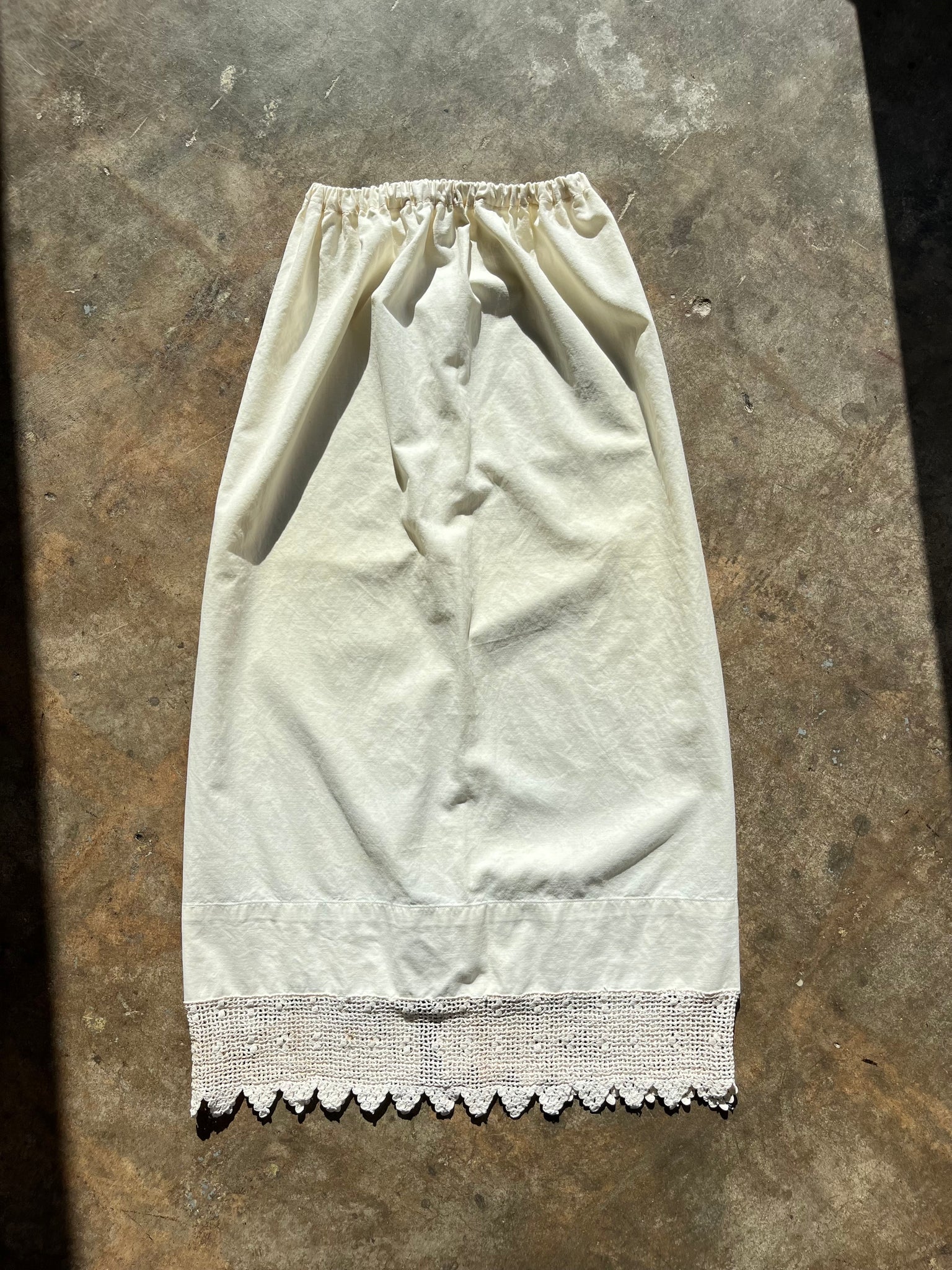 This skirt is made from a vintage (possibly antique) hand crochet trim pillowcase