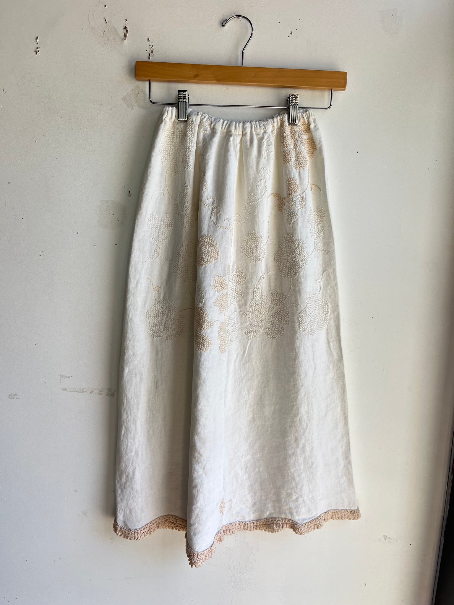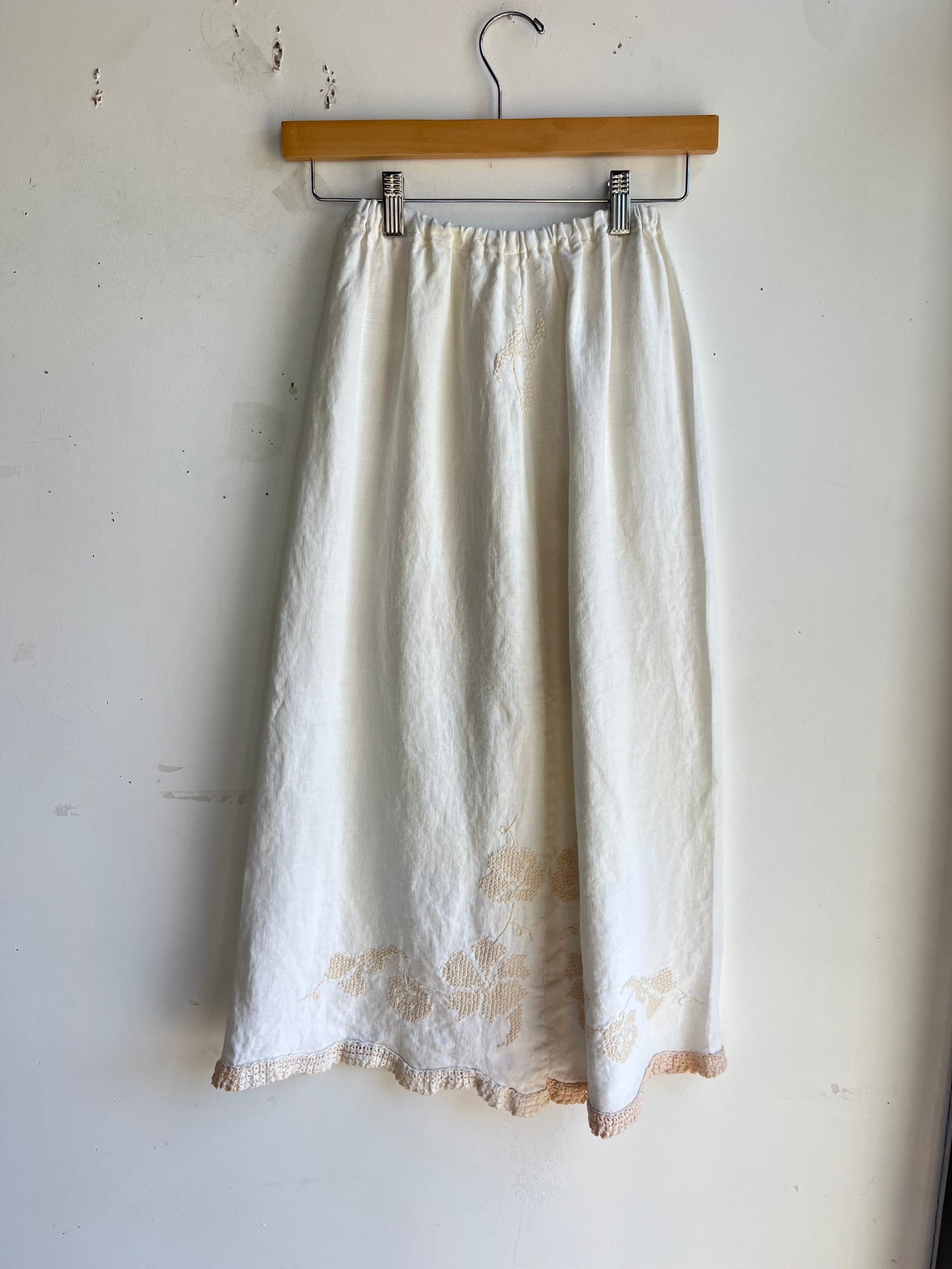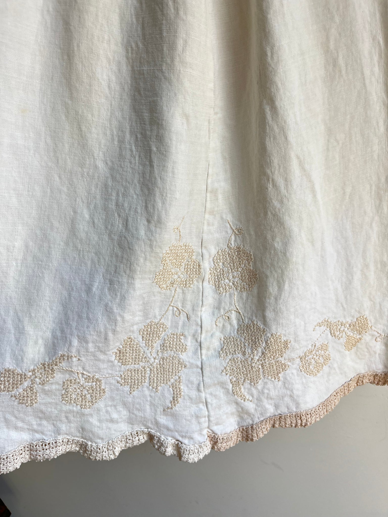 Handmade Skirt-1930s Embroidered Linen with Crochet Trim