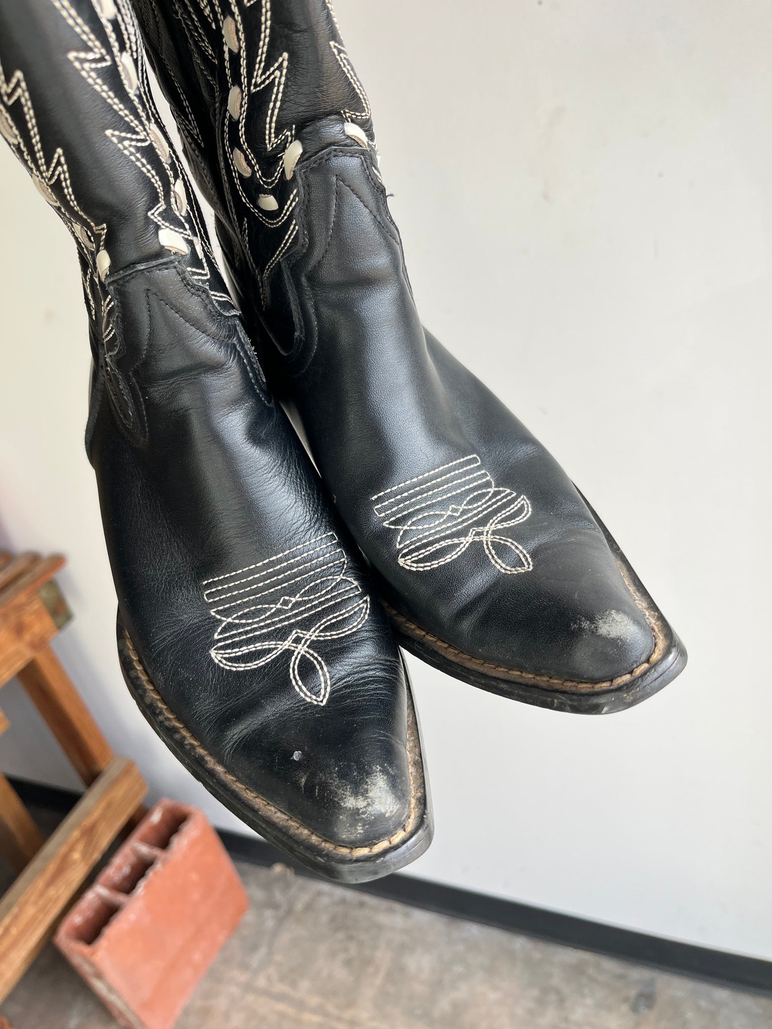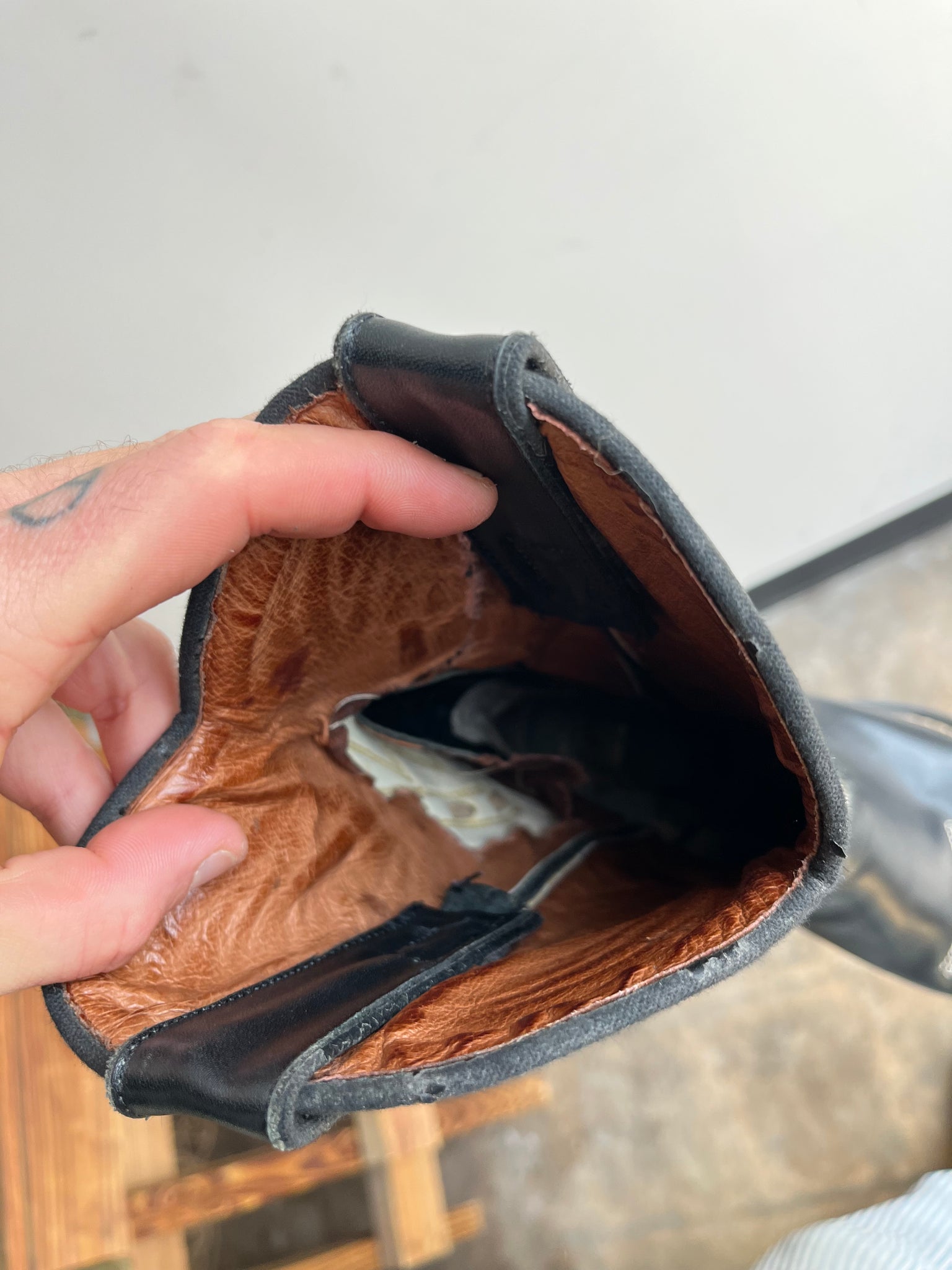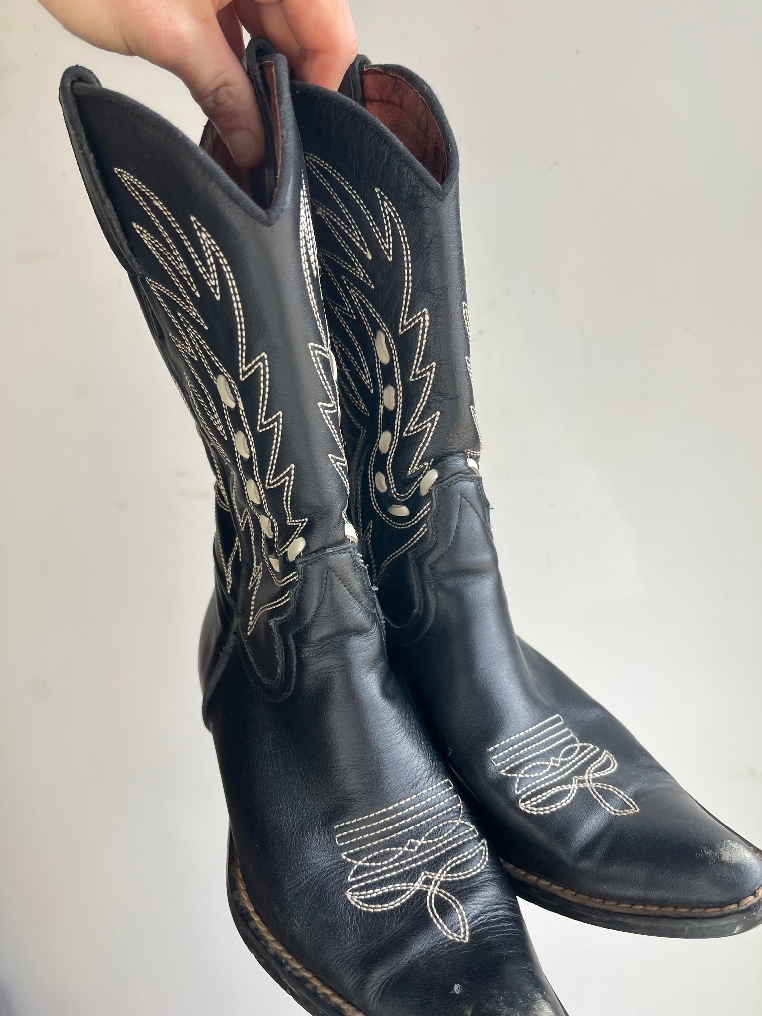 Condition: Very Good usable condition, no holes, there is some light wear around the heels and toes, the inside lining on the left boot has a tear