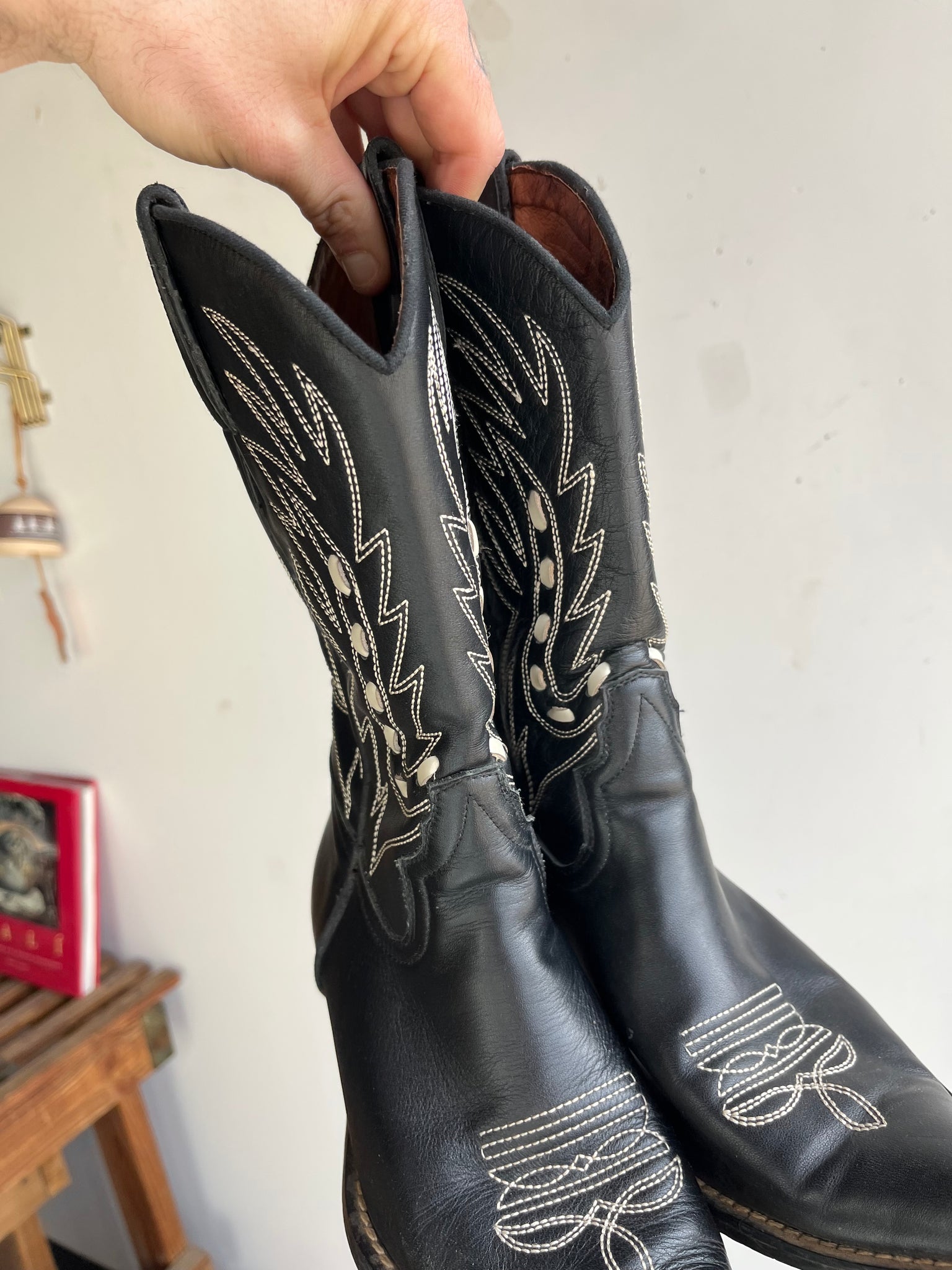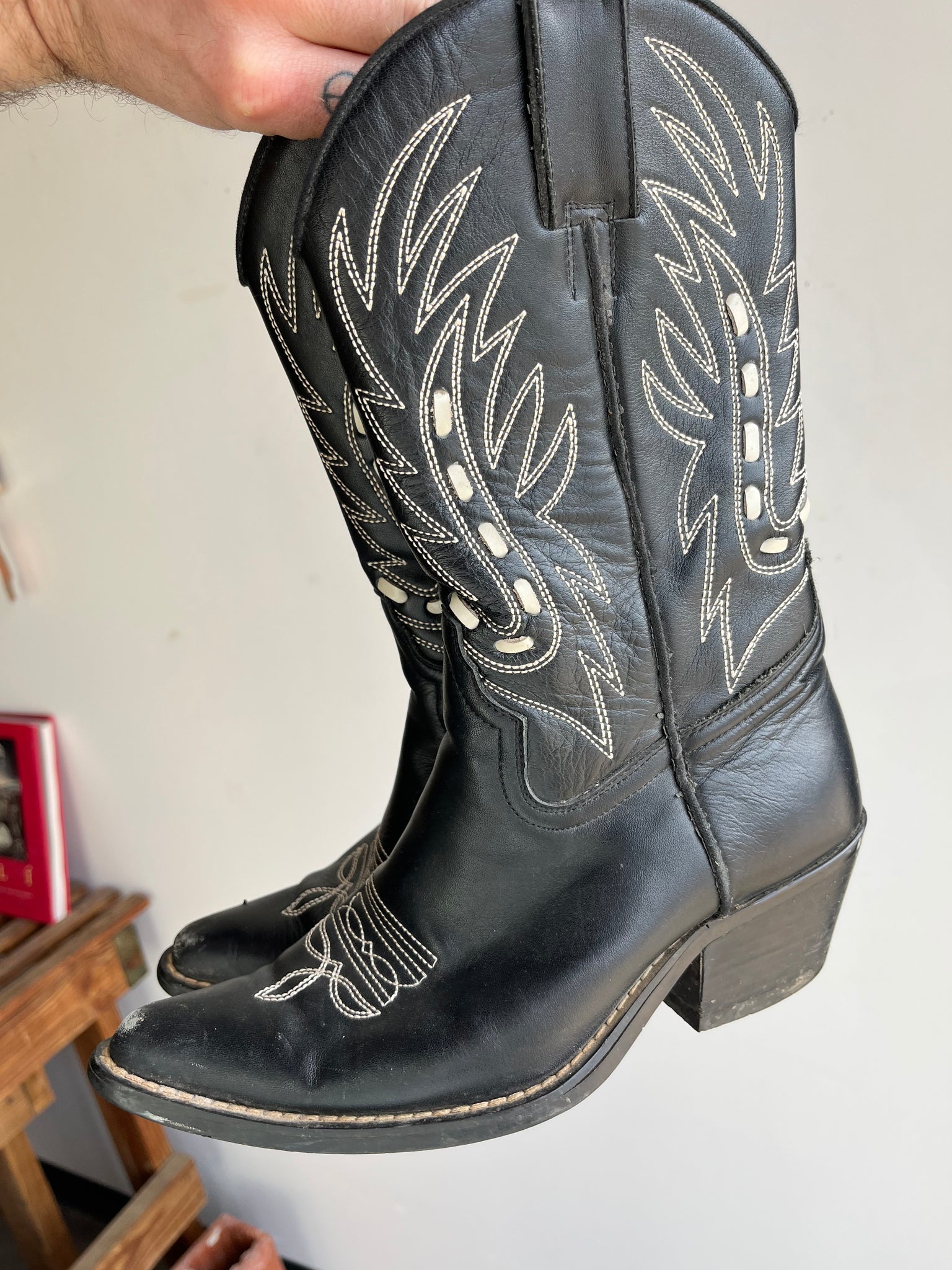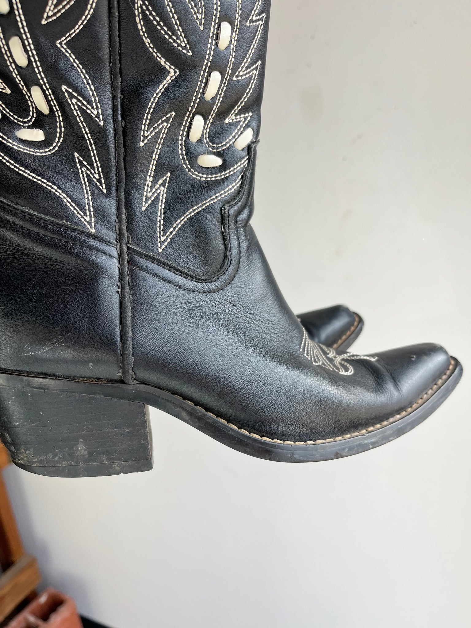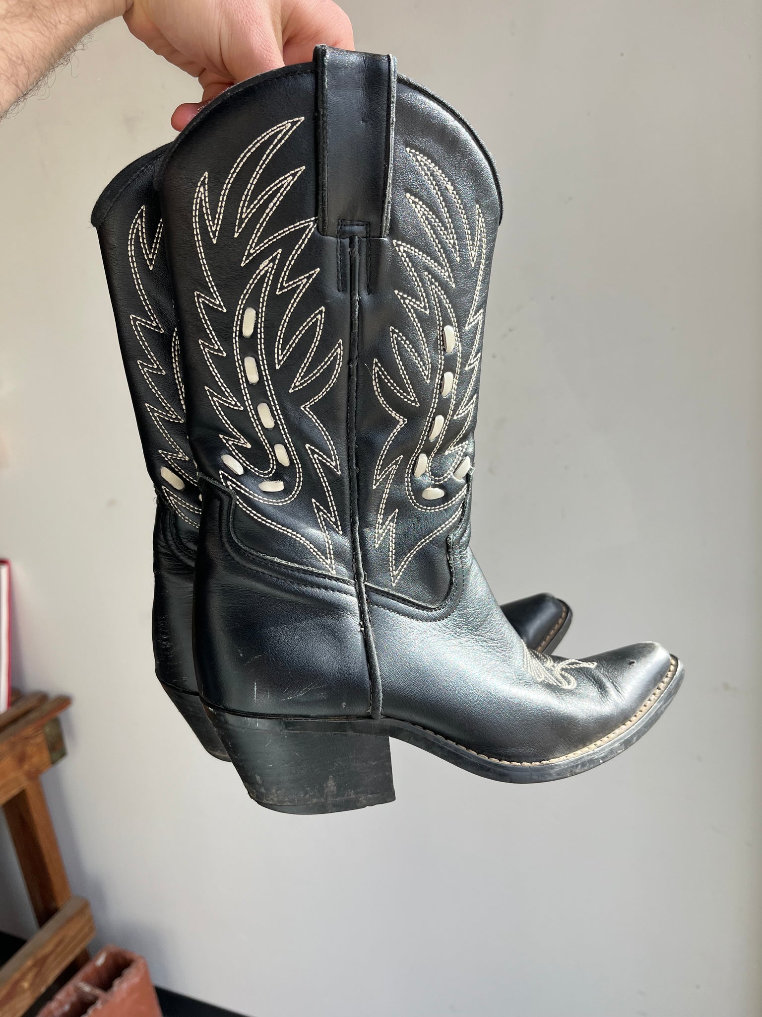 Condition: Very Good usable condition, no holes, there is some light wear around the heels and toes, the inside lining on the left boot has a tear