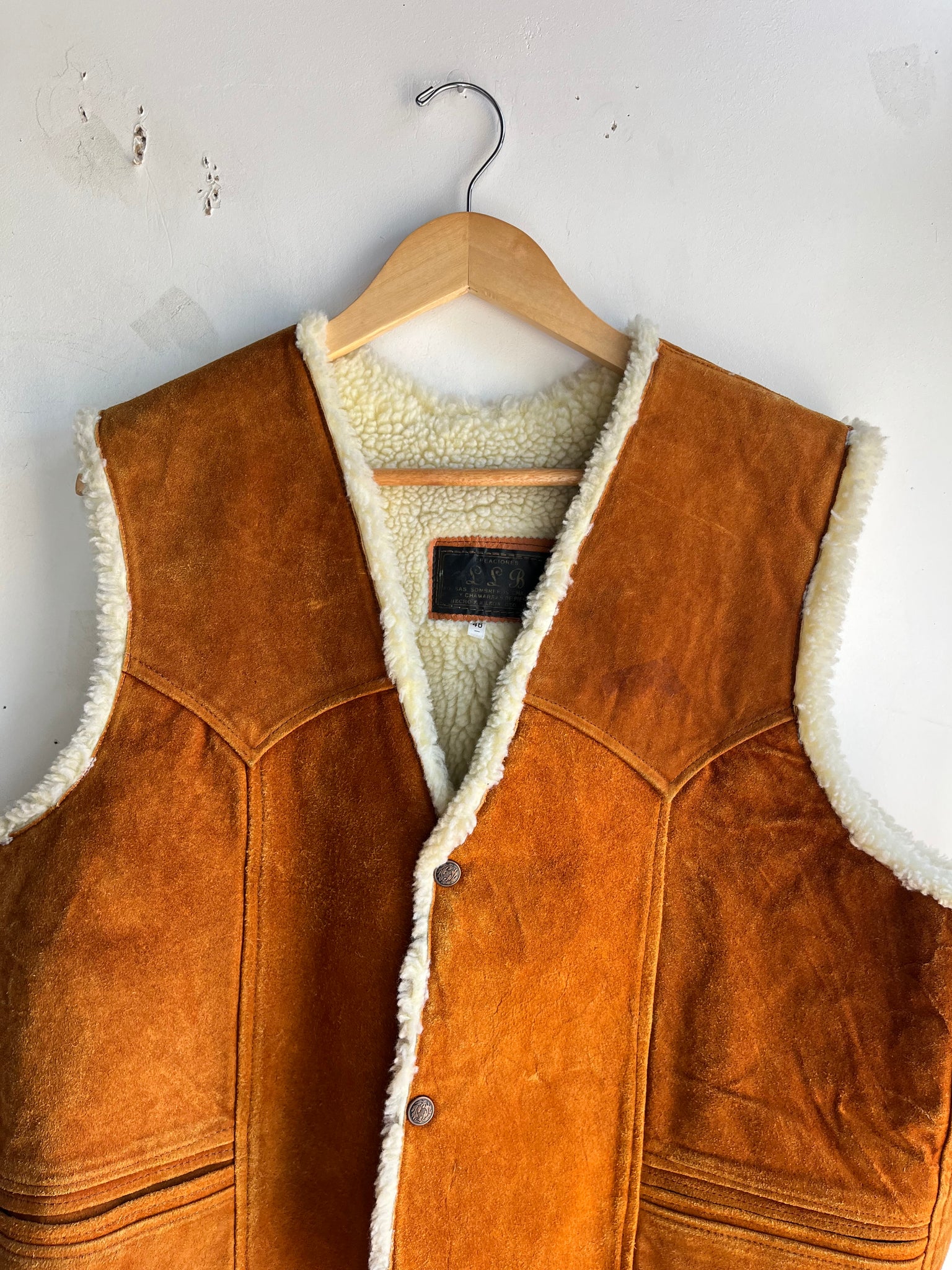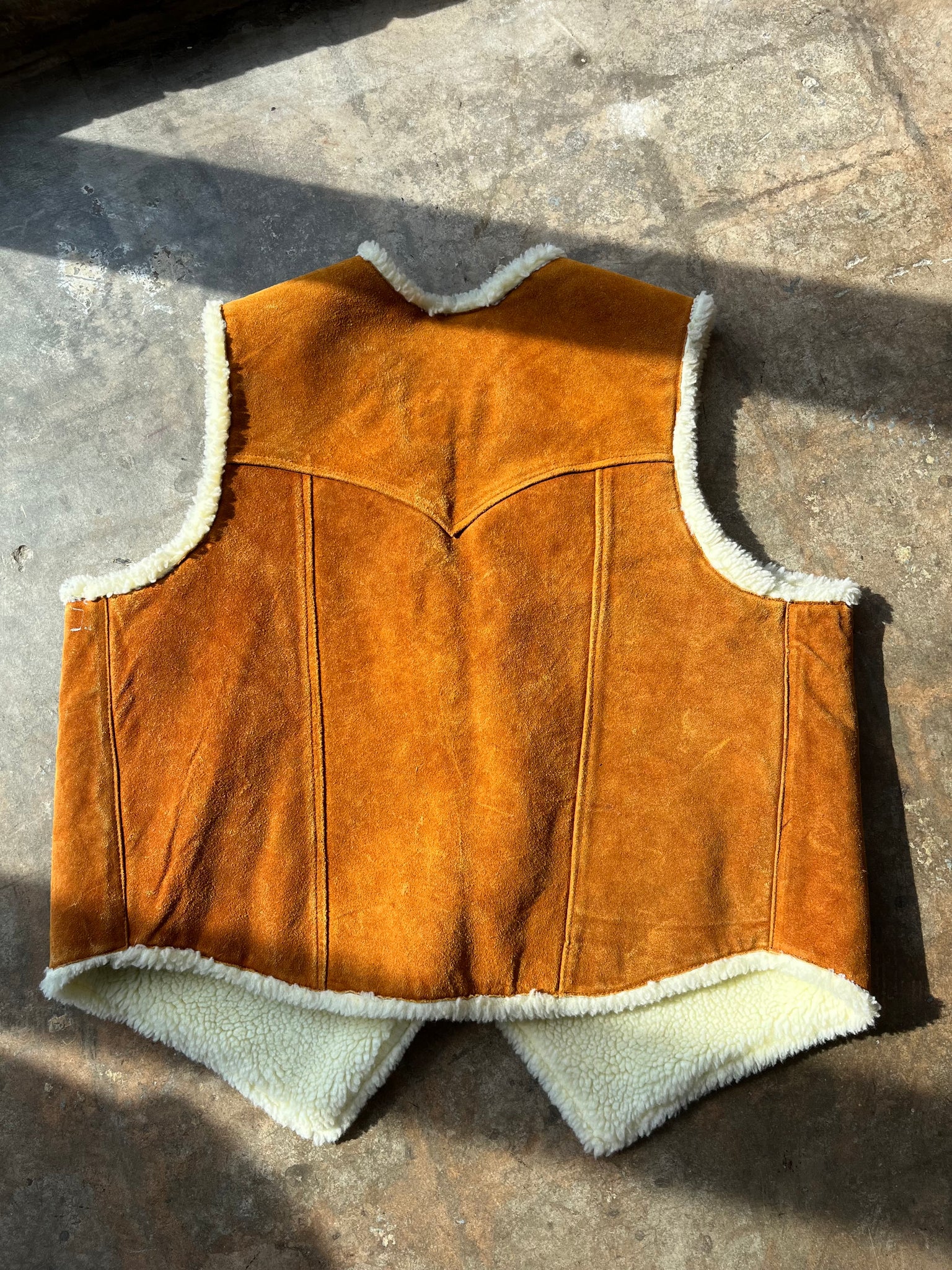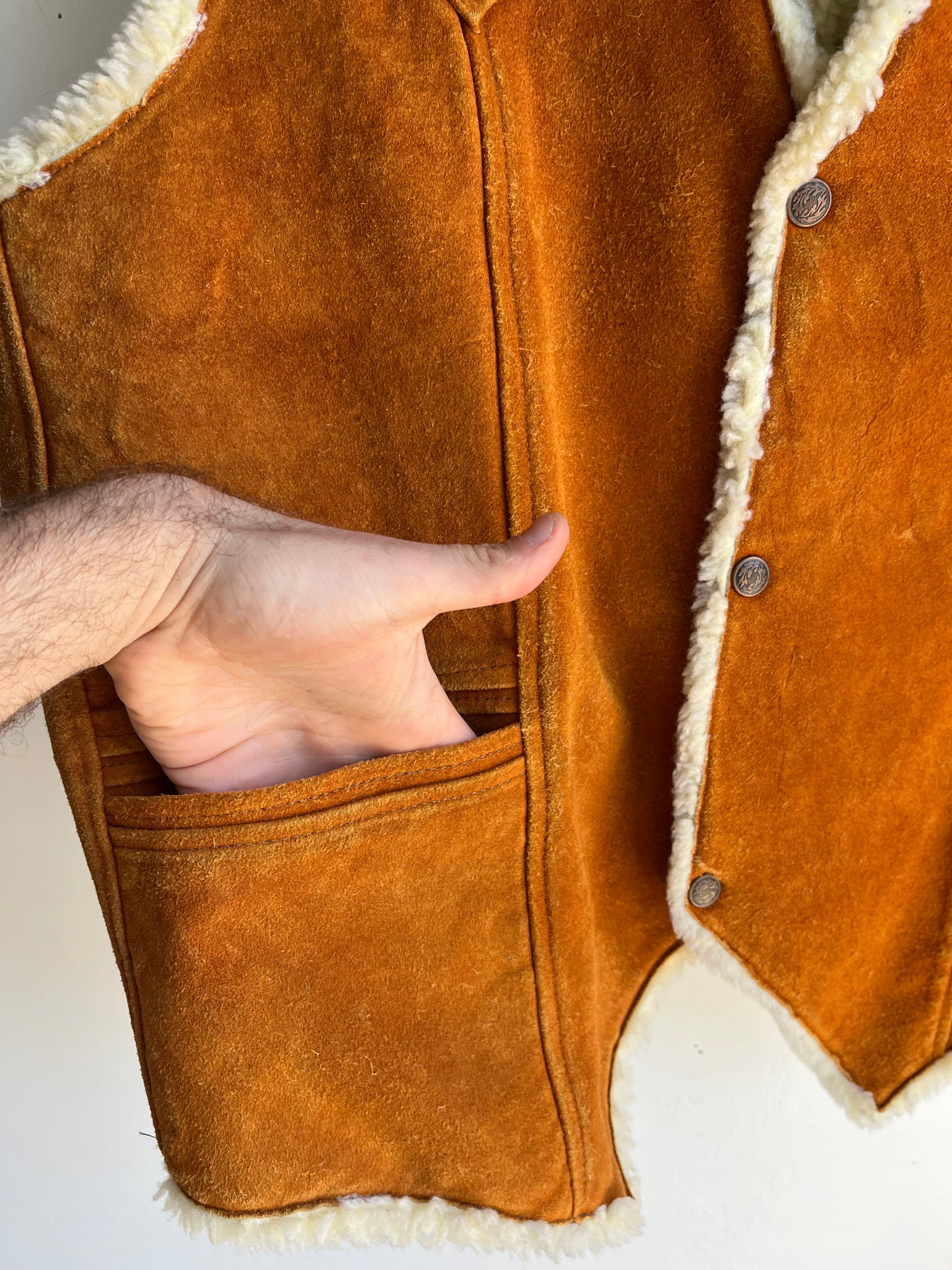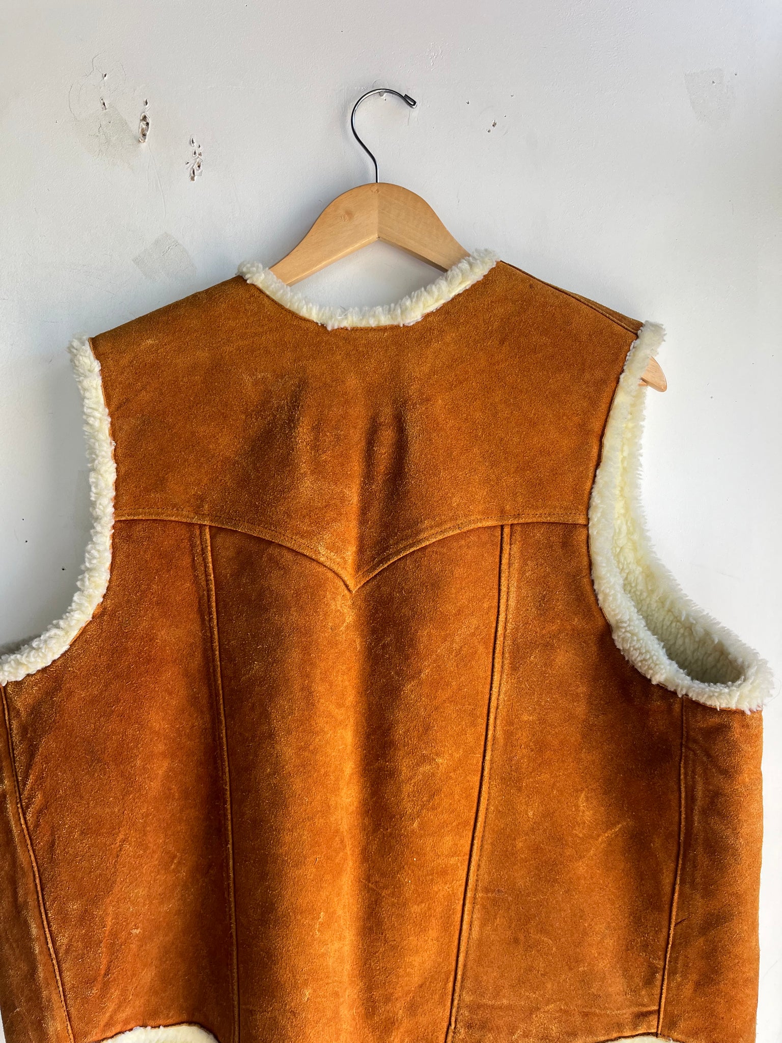 70s Orange Suede and Faux Sherpa Vest