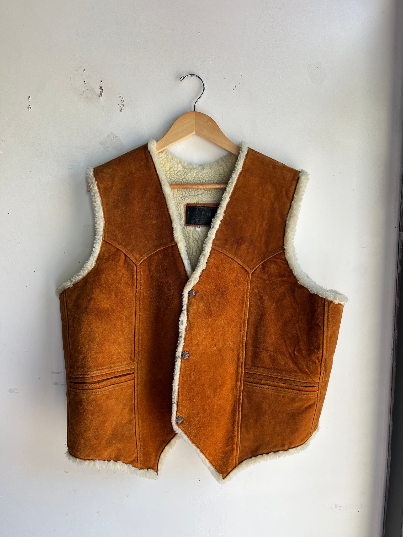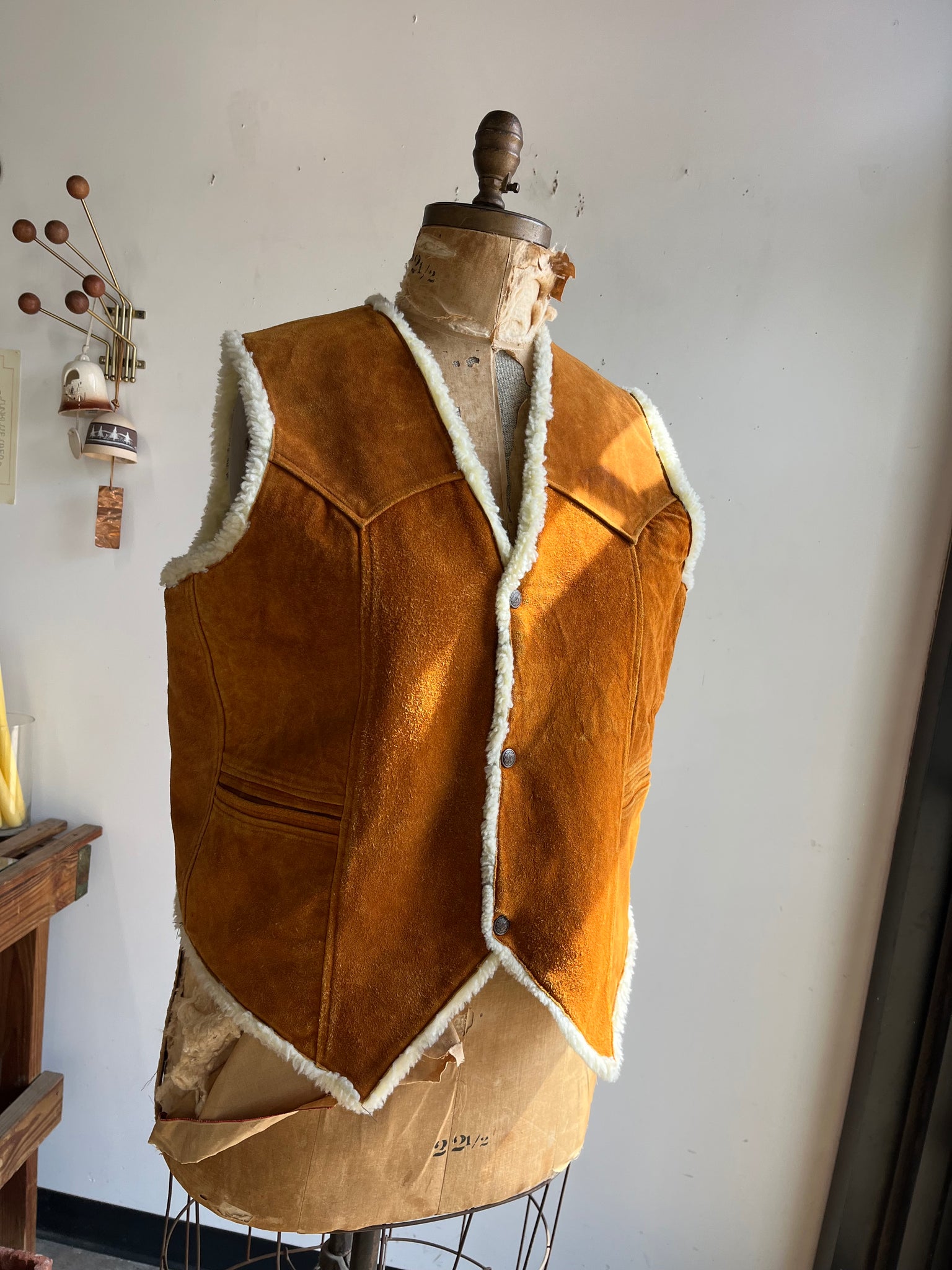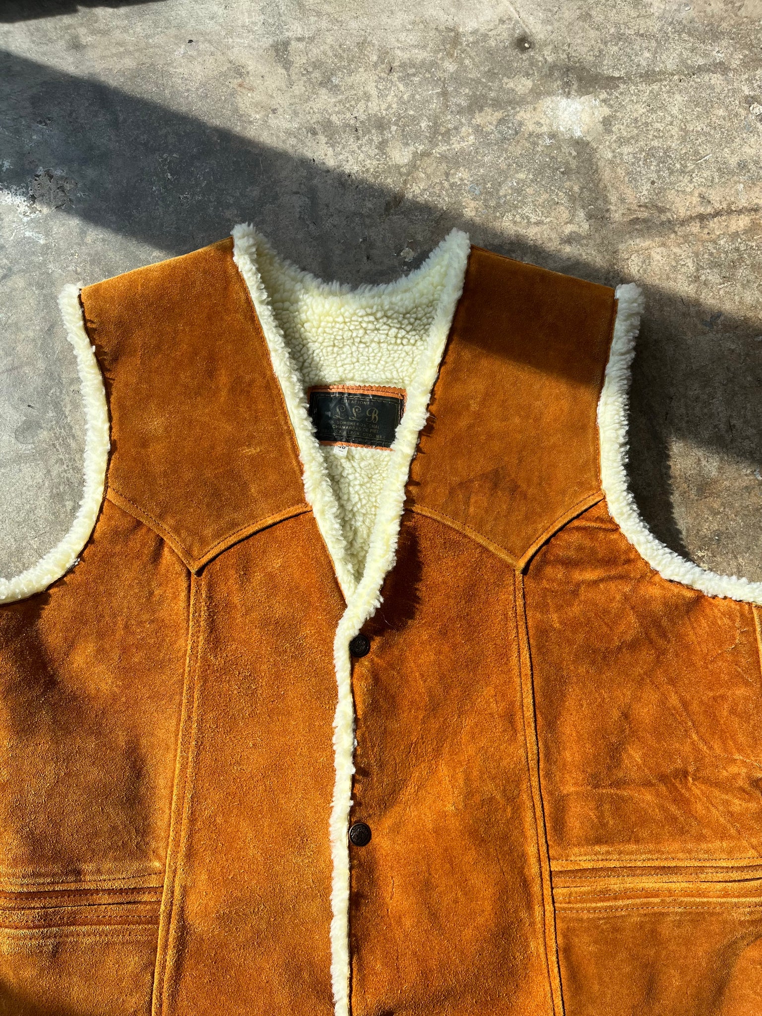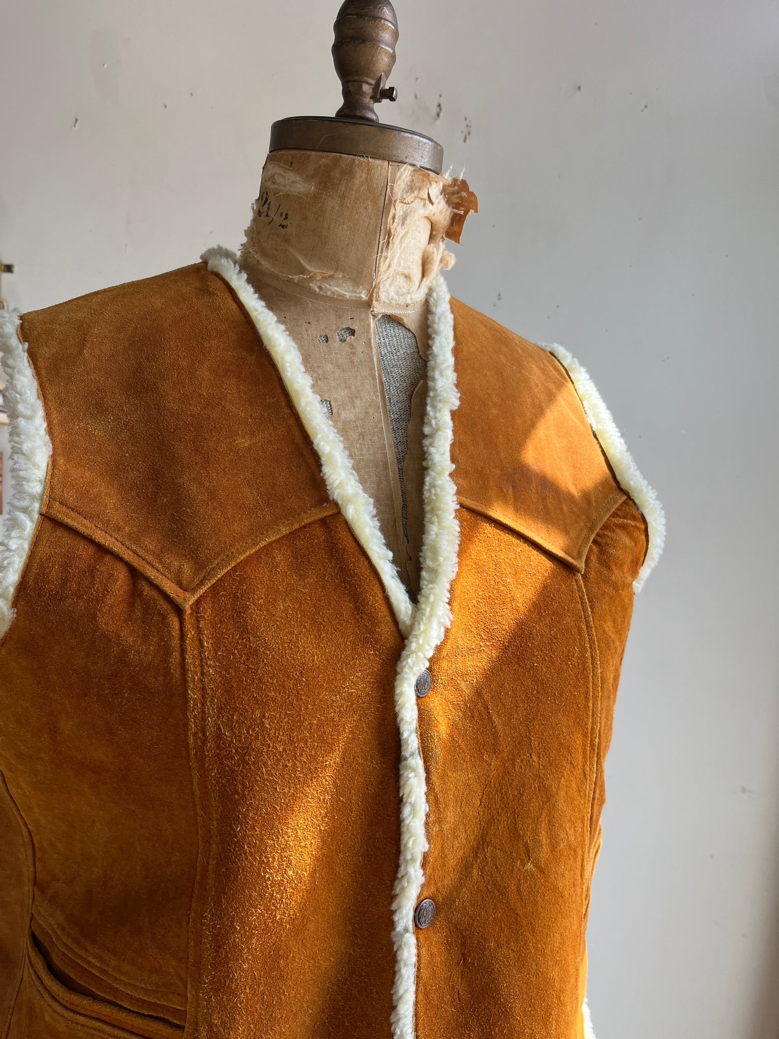 70s Orange Suede and Faux Sherpa Vest