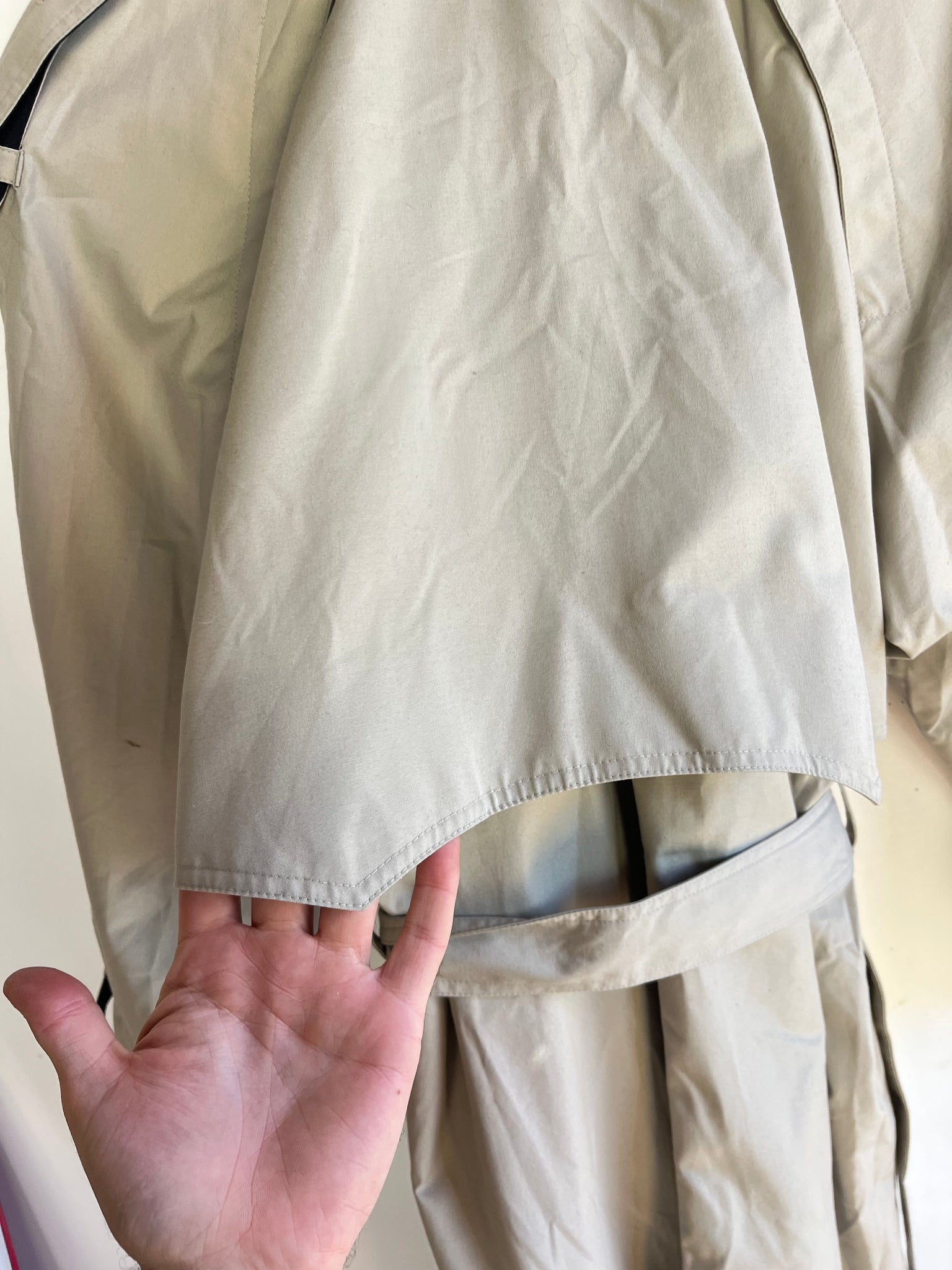 Condition: Very Good wearable condition, no holes or stains noted, it has all the buttons and the original waist tie, please note, I things it had a removable lining at some point, but not anymore