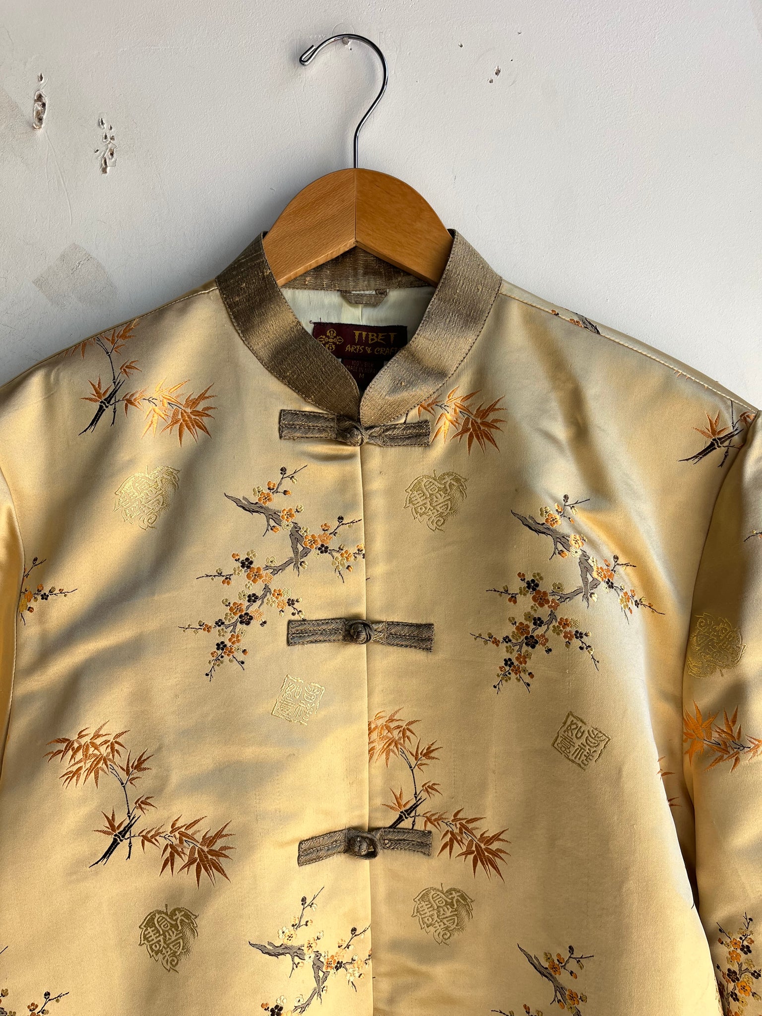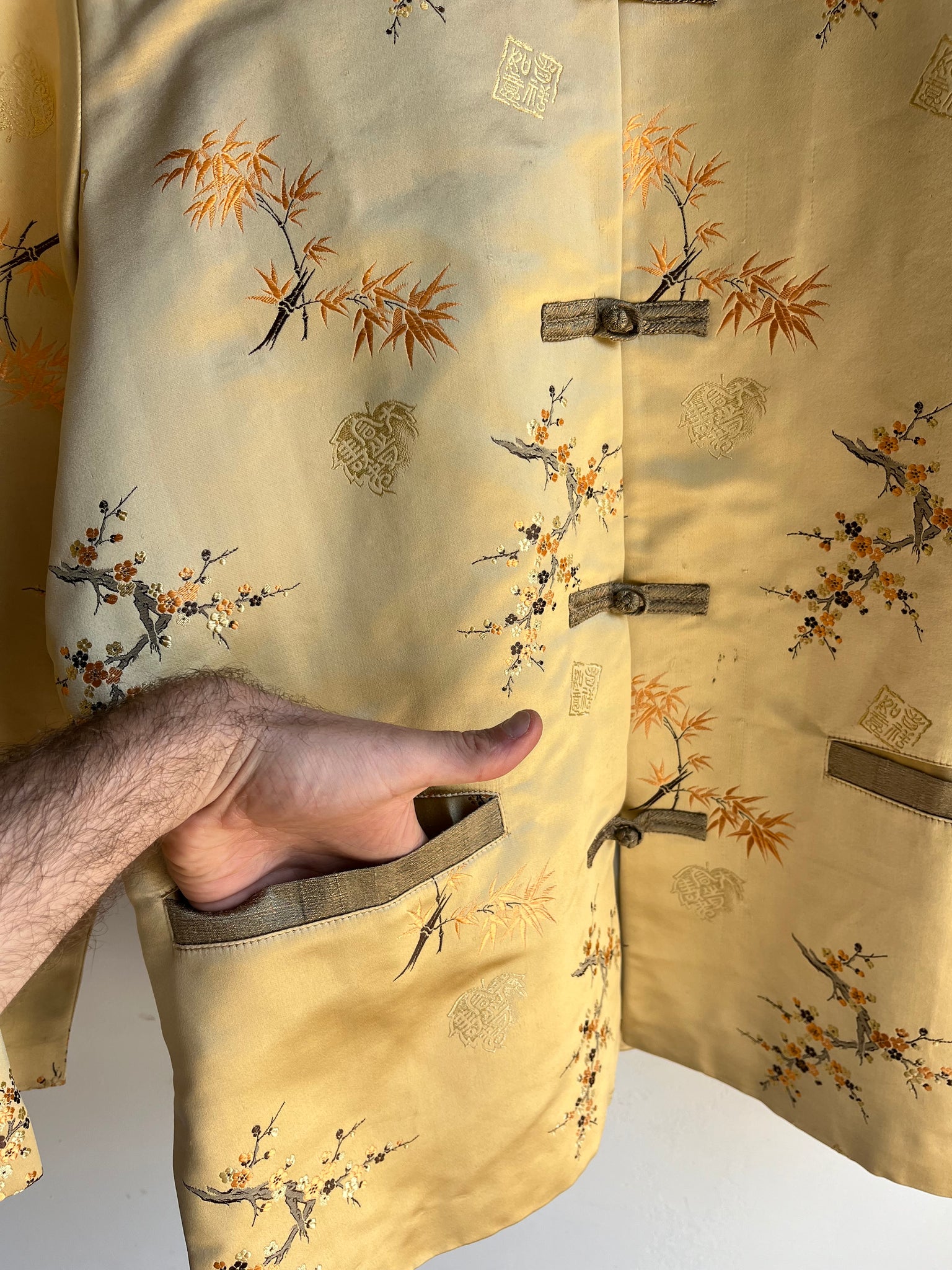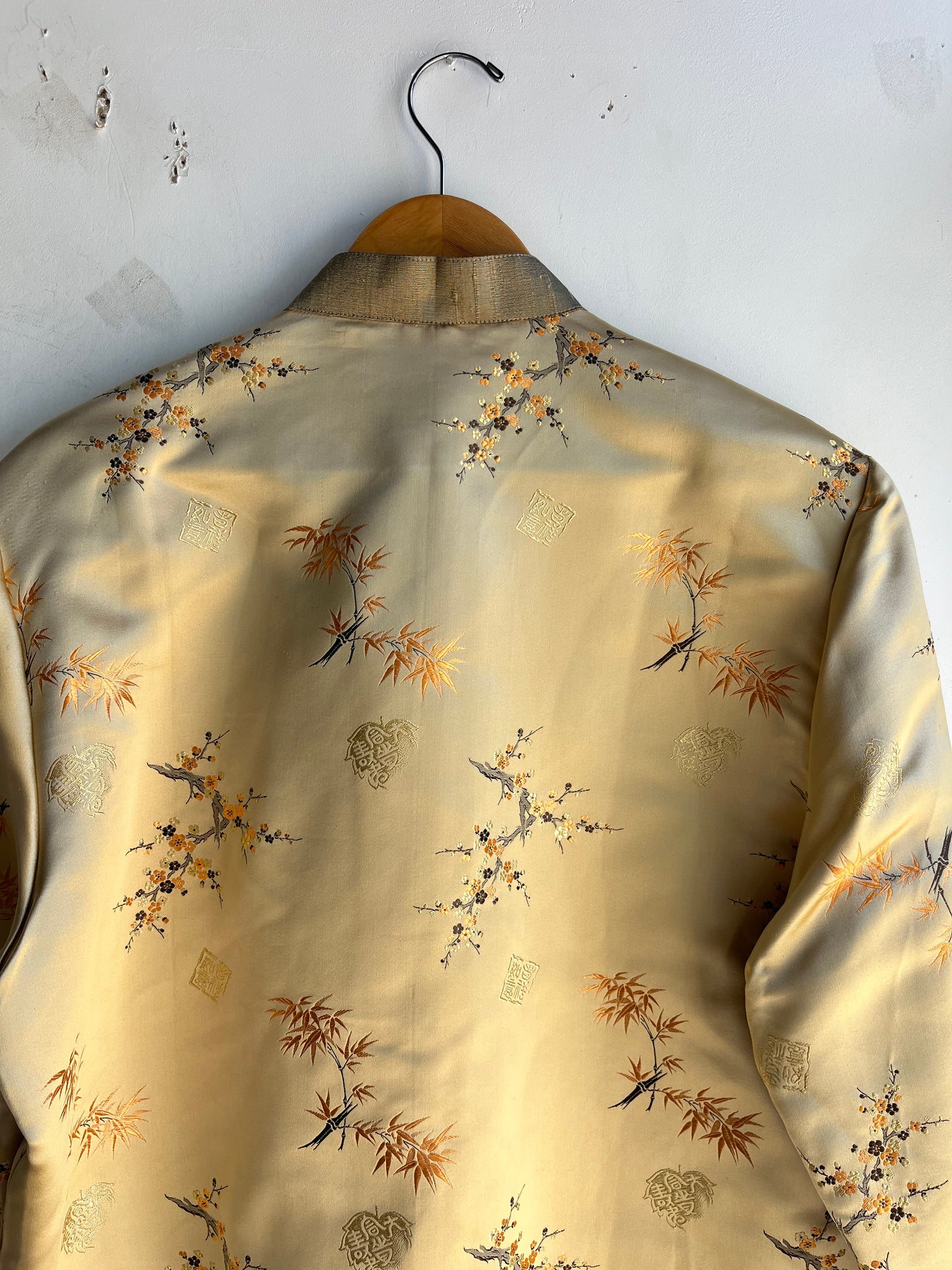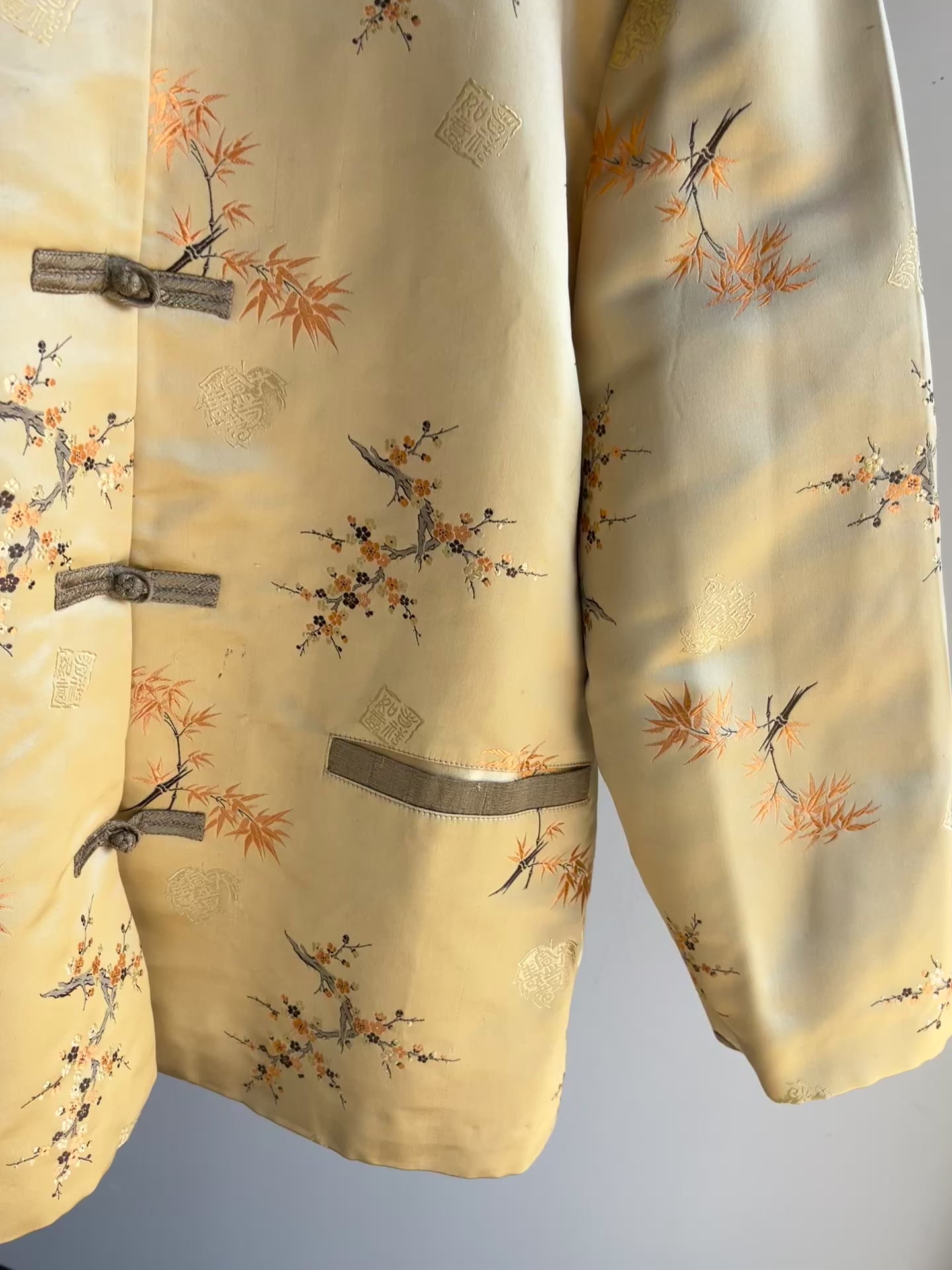 90s Silk Hand Embroidered Bamboo and Cherry Blossom Jacket