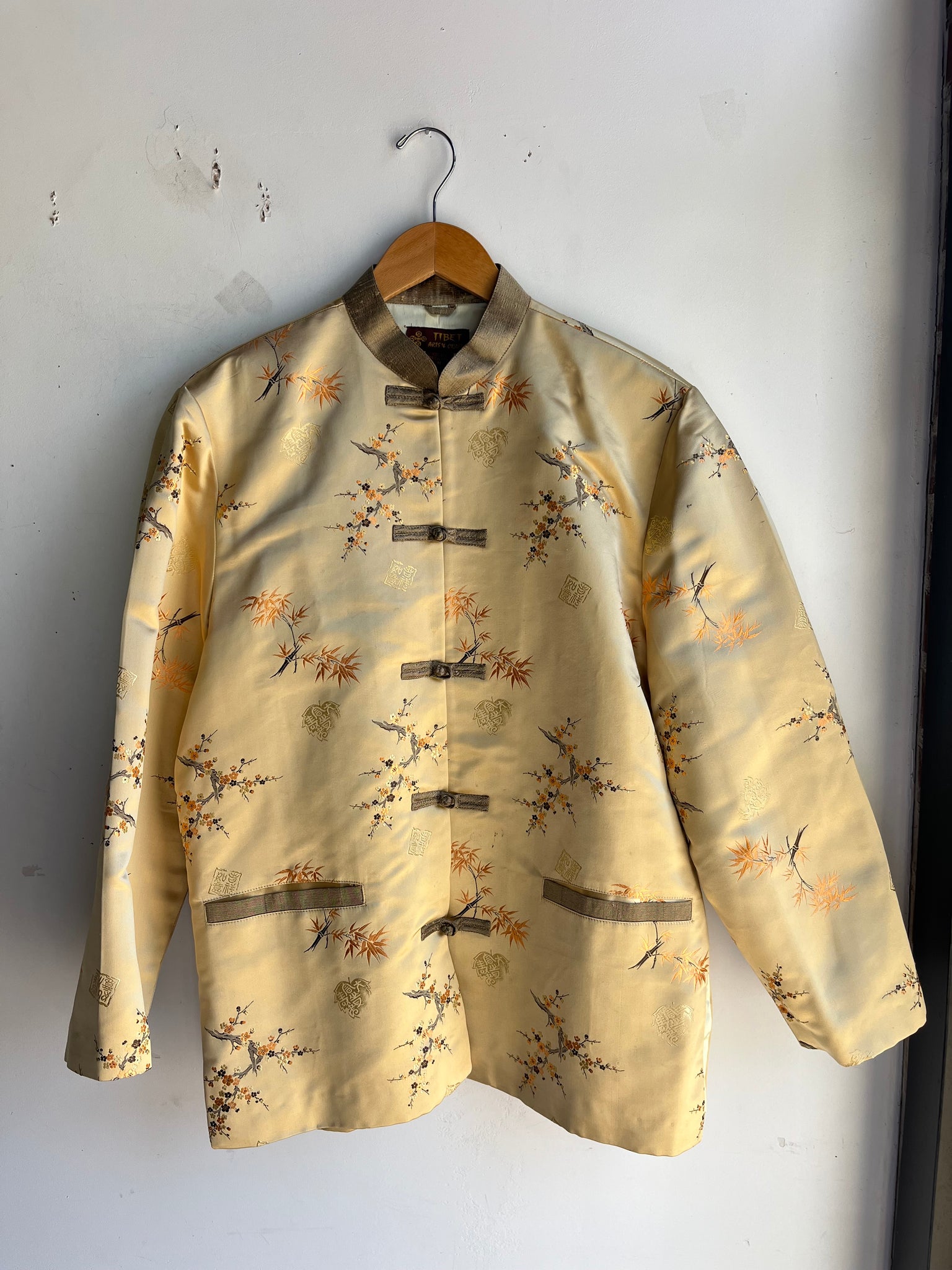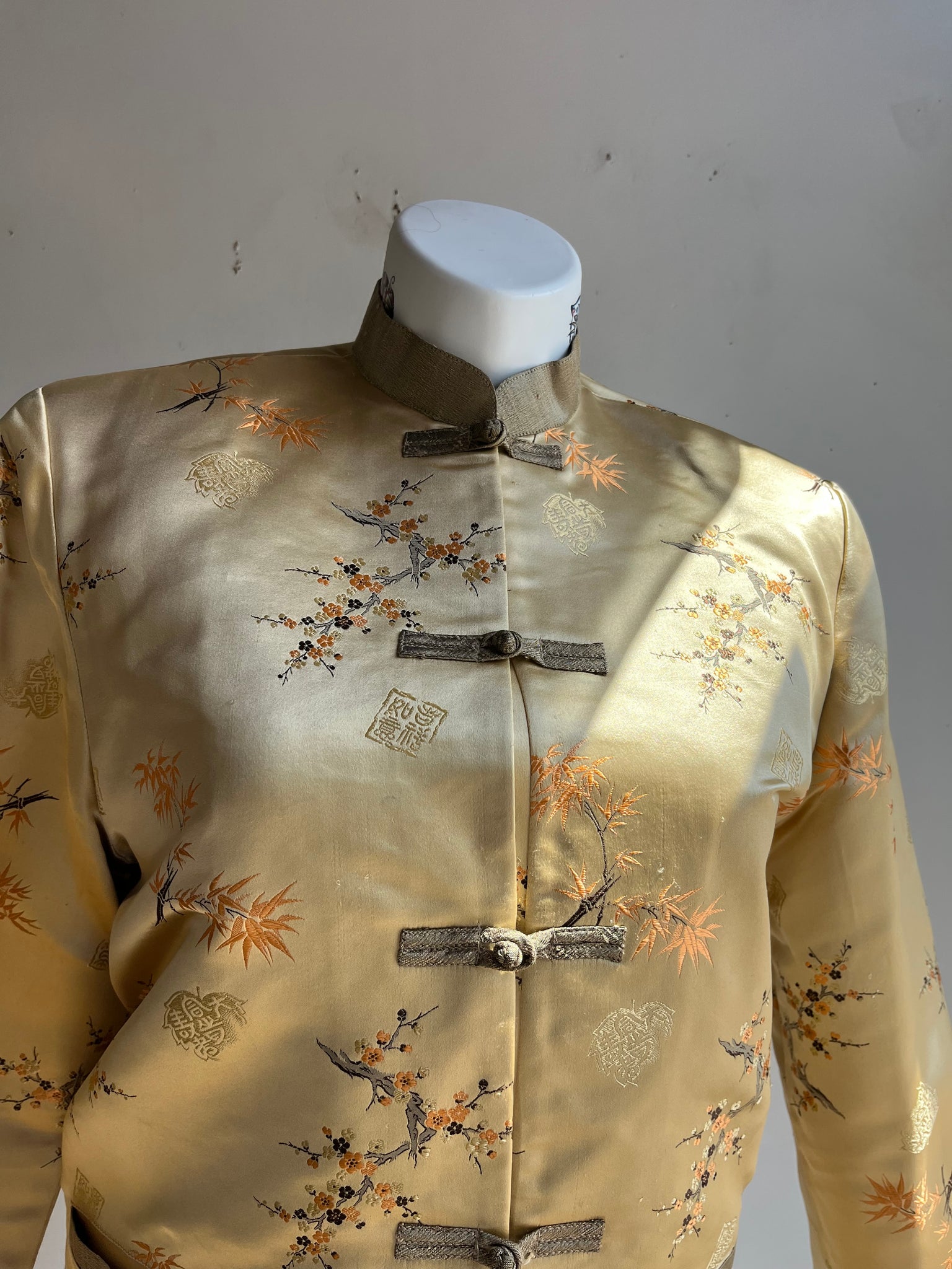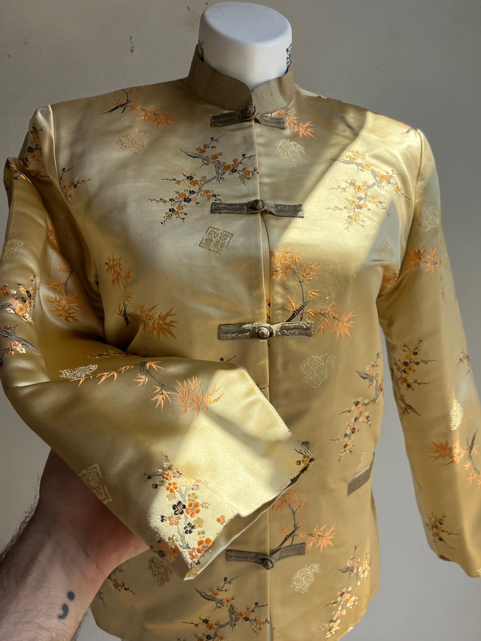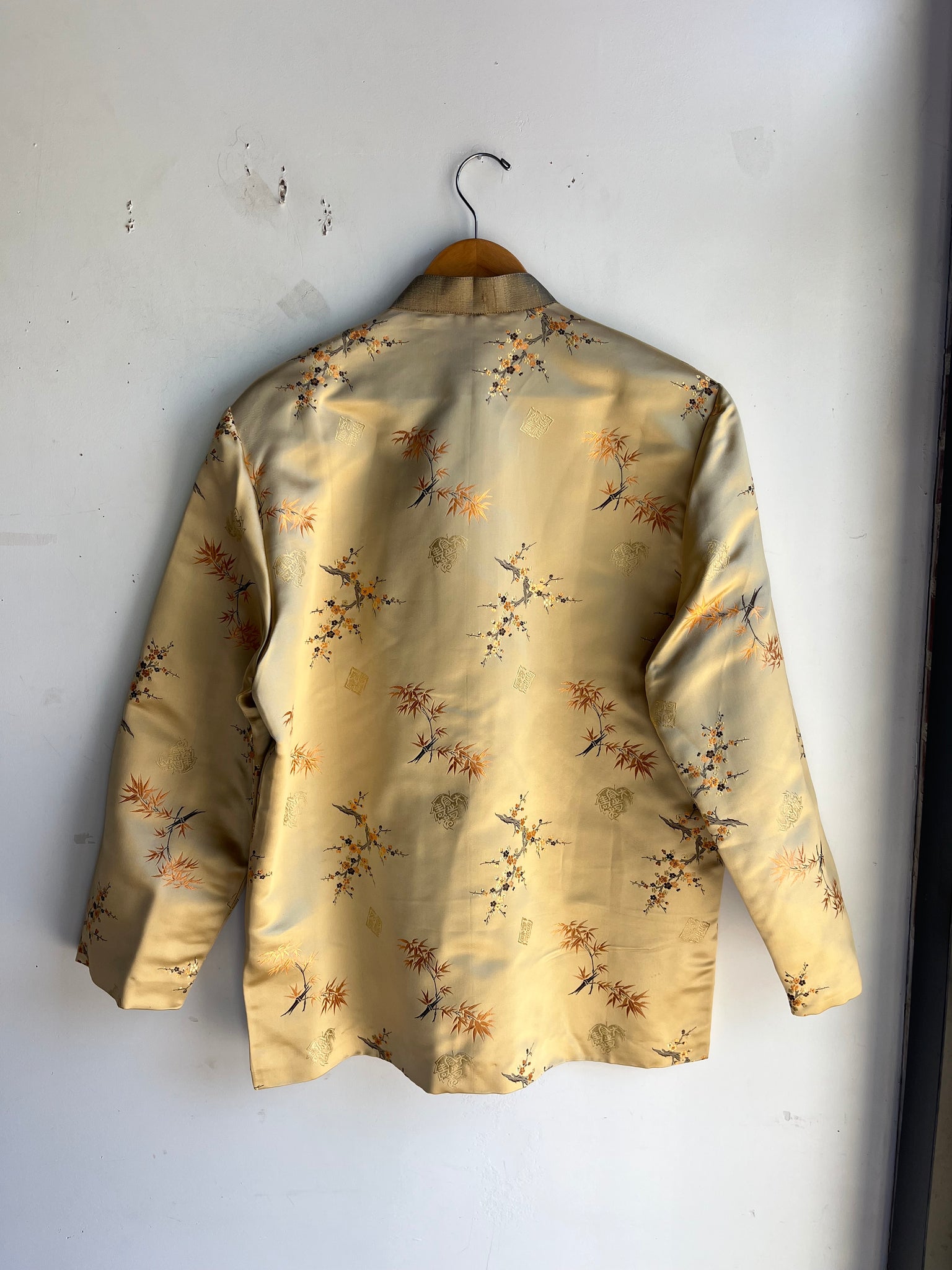90s Silk Hand Embroidered Bamboo and Cherry Blossom Jacket