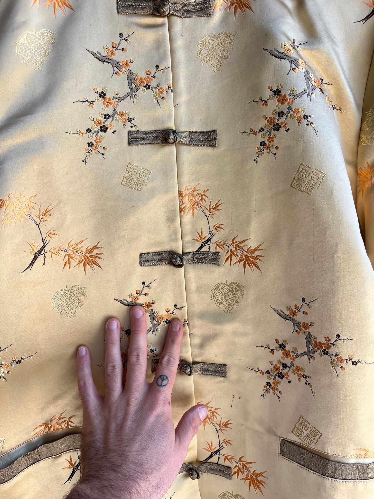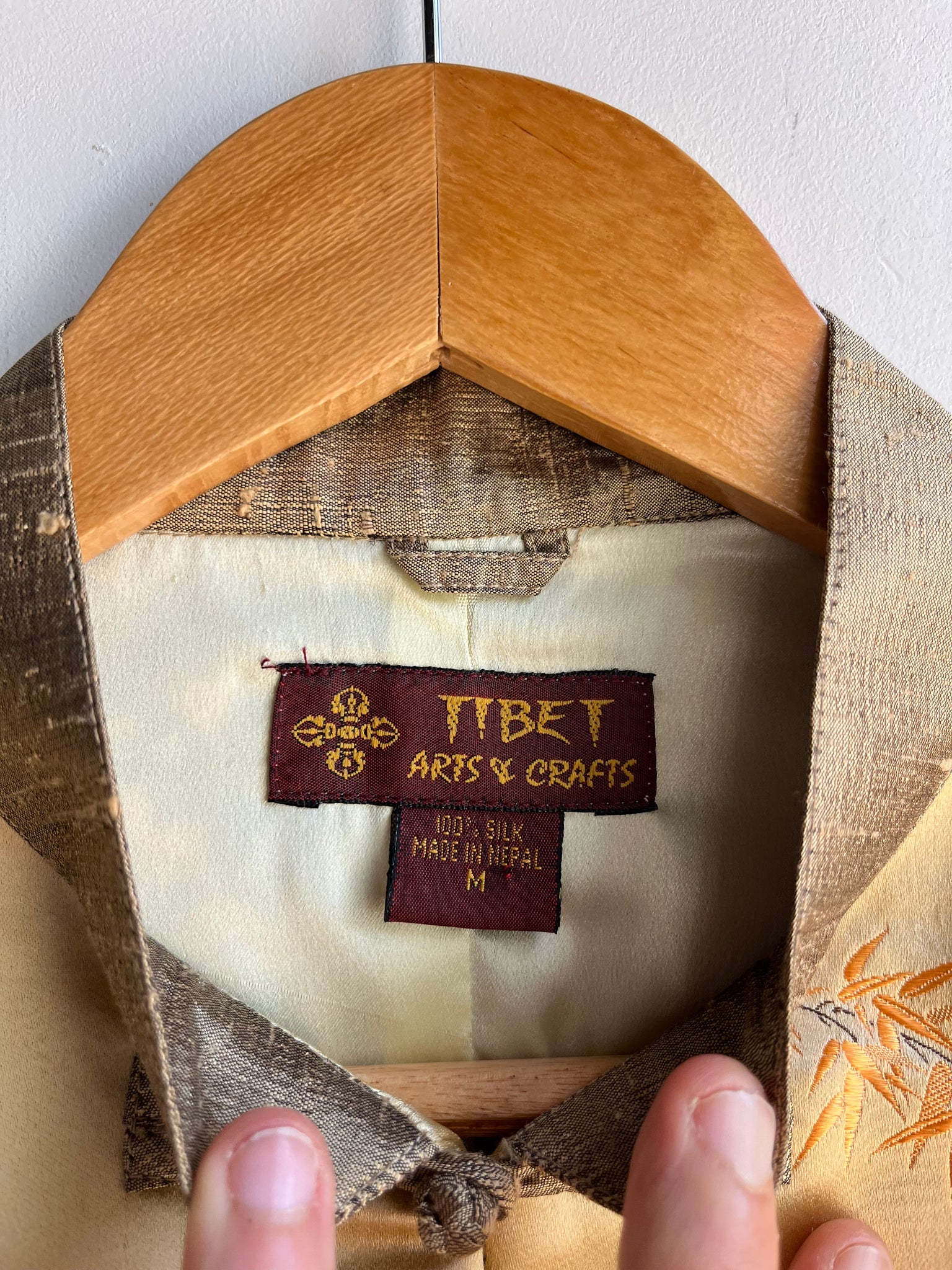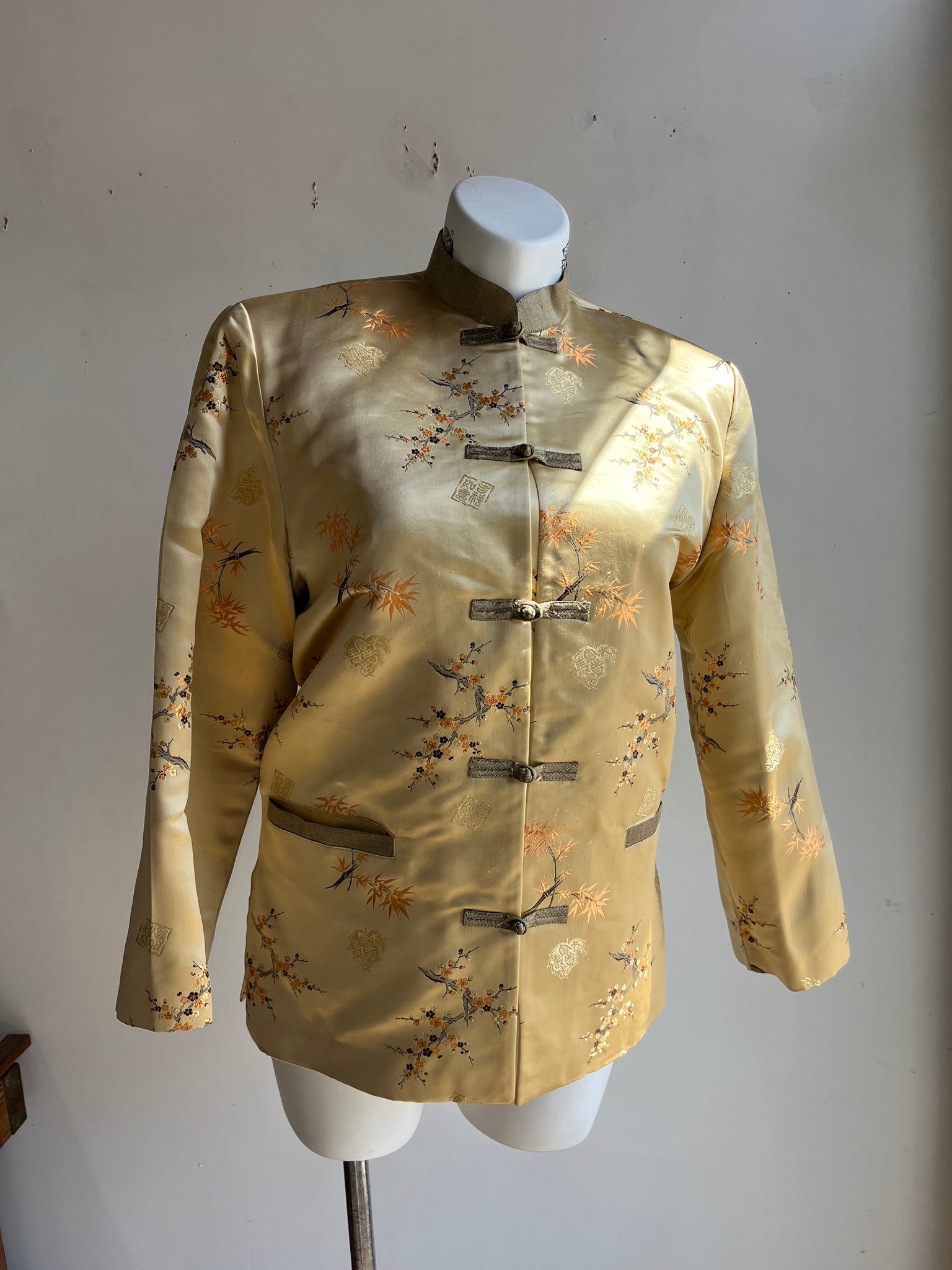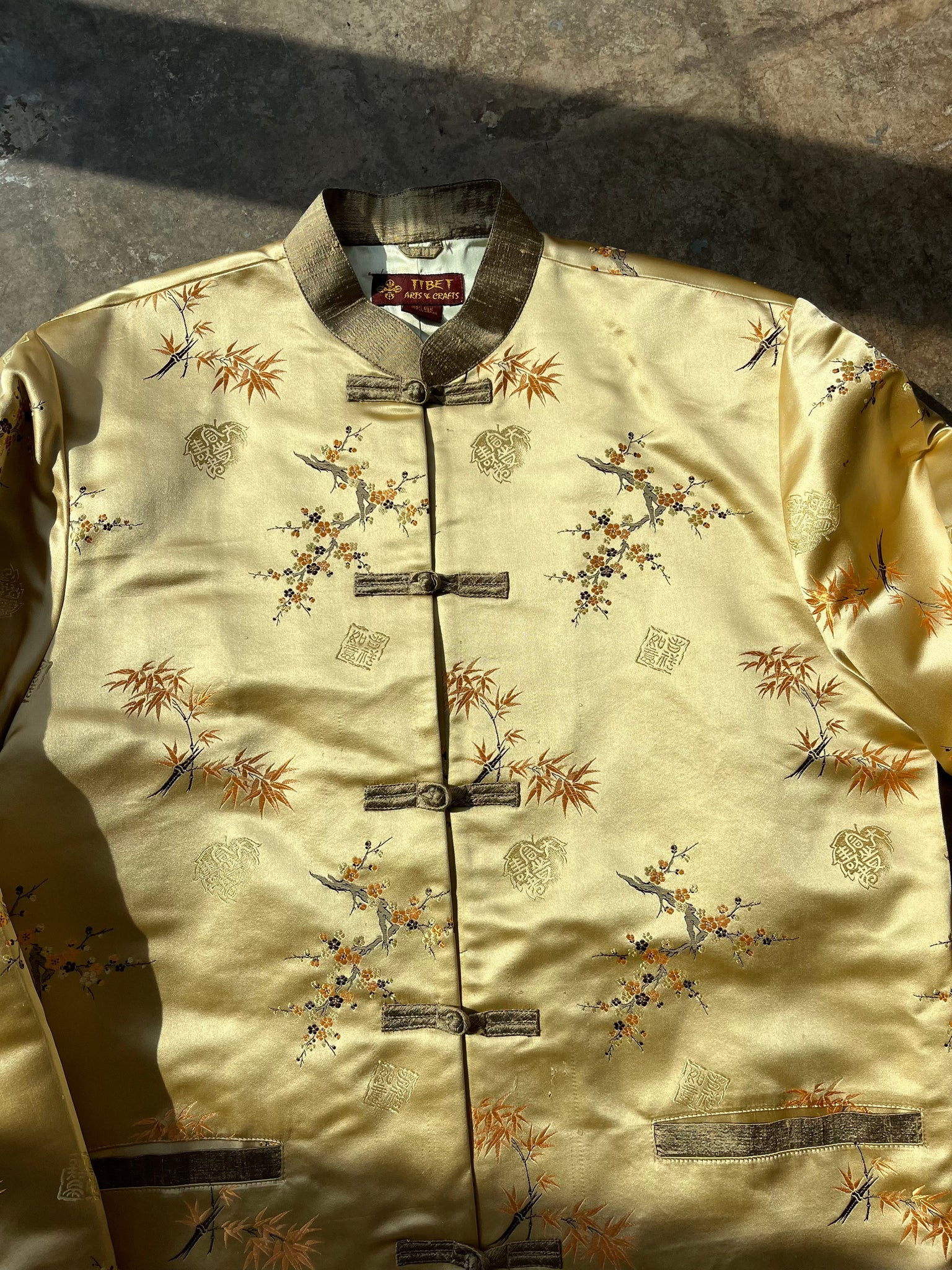 90s Silk Hand Embroidered Bamboo and Cherry Blossom Jacket