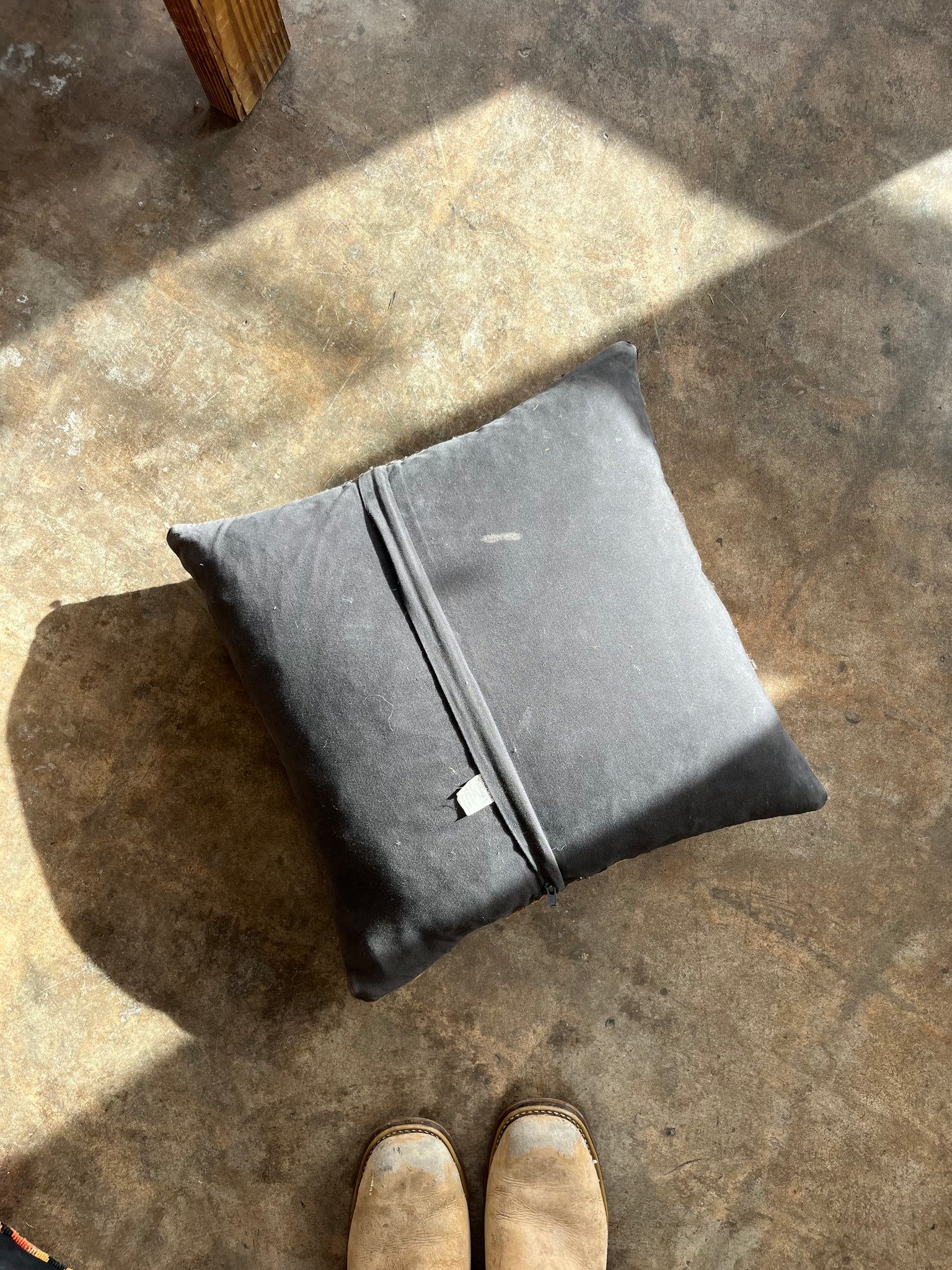 Material: 100% Wool front, 100% Cotton back, it comes with a feather insert