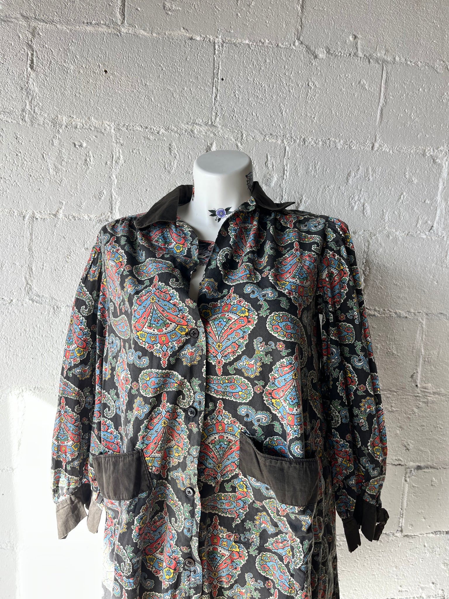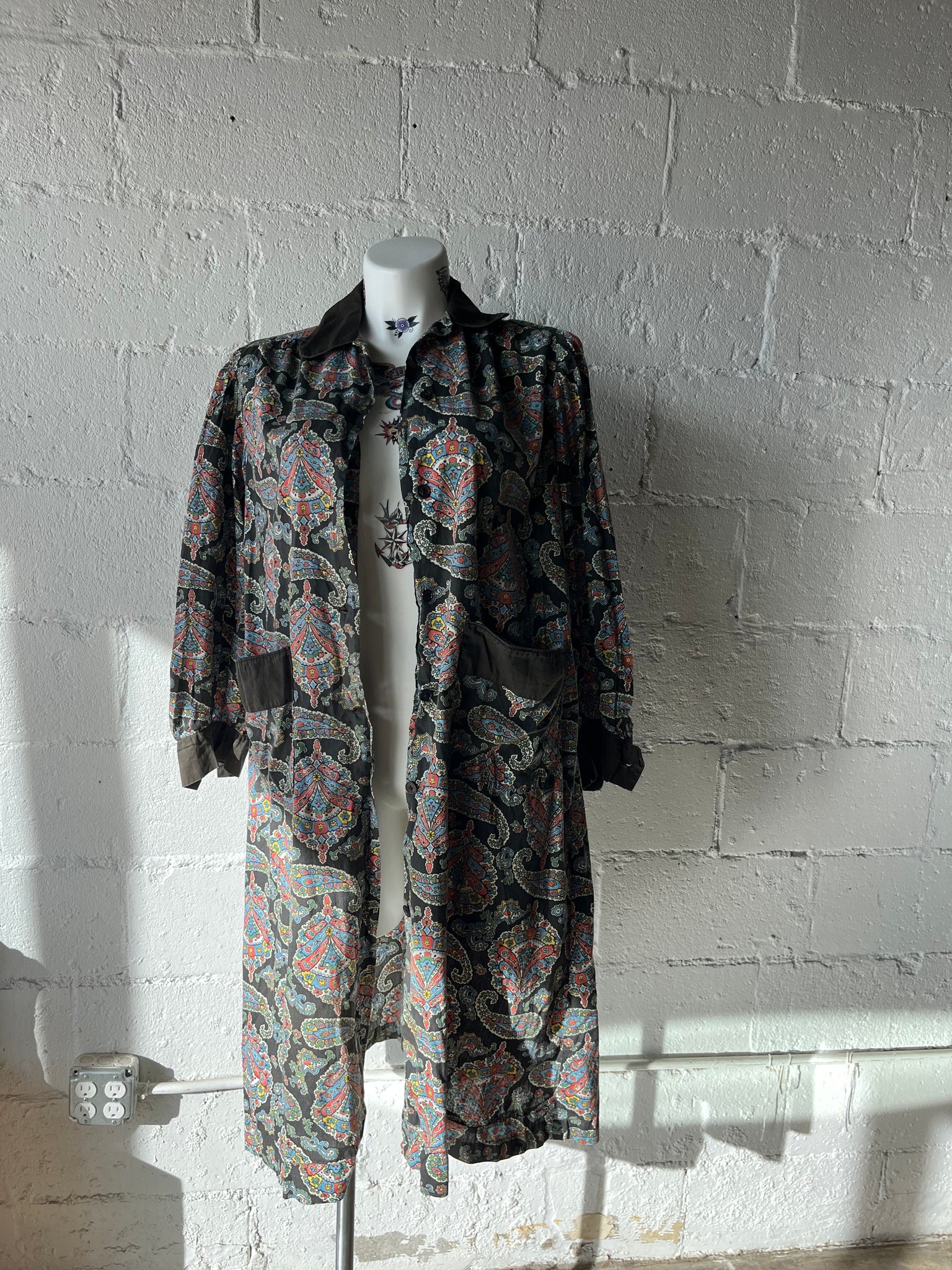 Fabric: no tags, its definitely cotton, I'm calling this block print because its in the style of, but when I look at the design, its all fairly consistent, so I don't believe it has hand stamped
