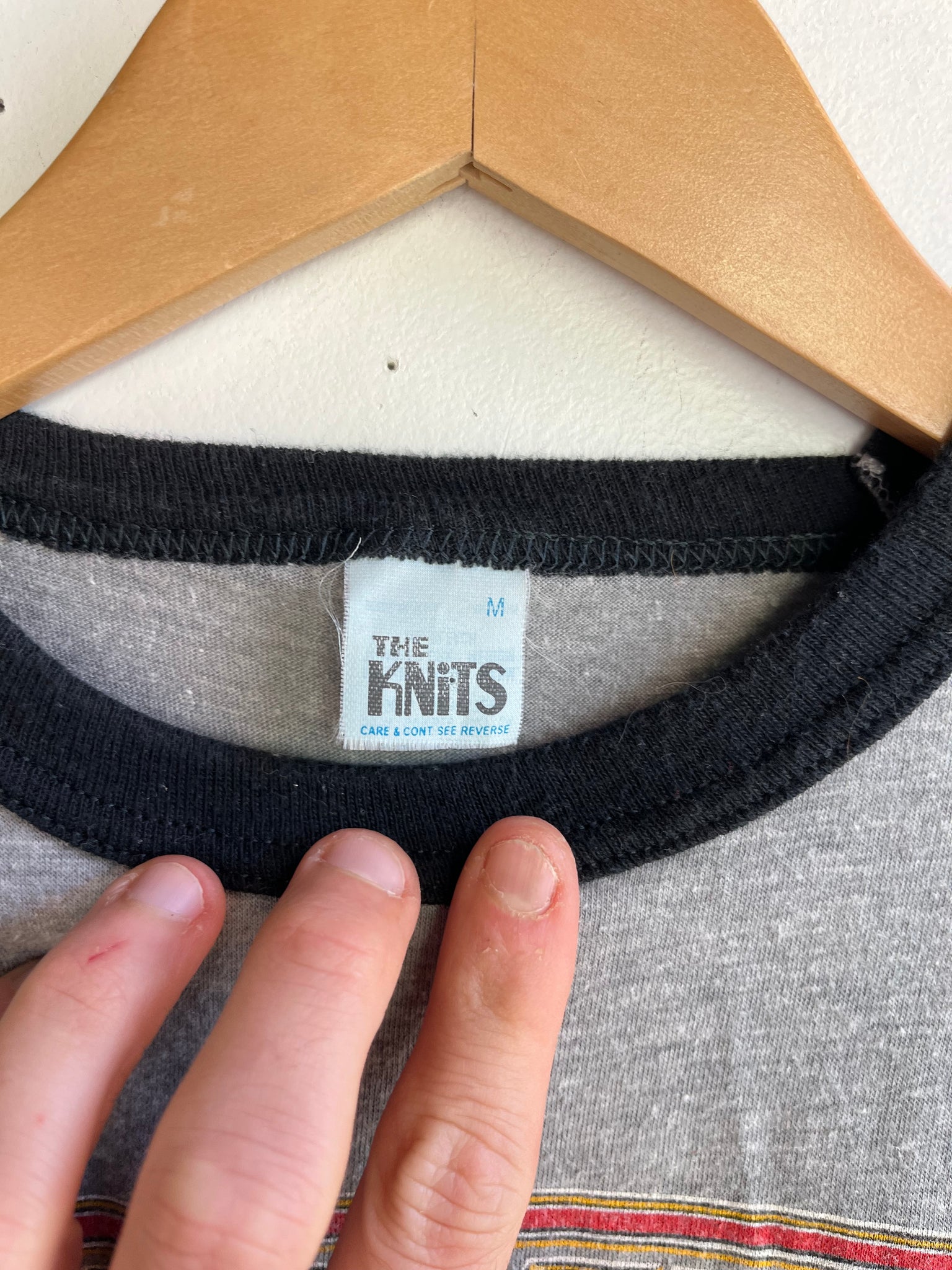 Brand Tag: tee tag-The Knits, made in USA. Decal brand-Artist and friends INC.