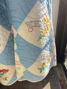 Color Scheme: Blue and White with multi-colored hand embroidered states and state flowers
