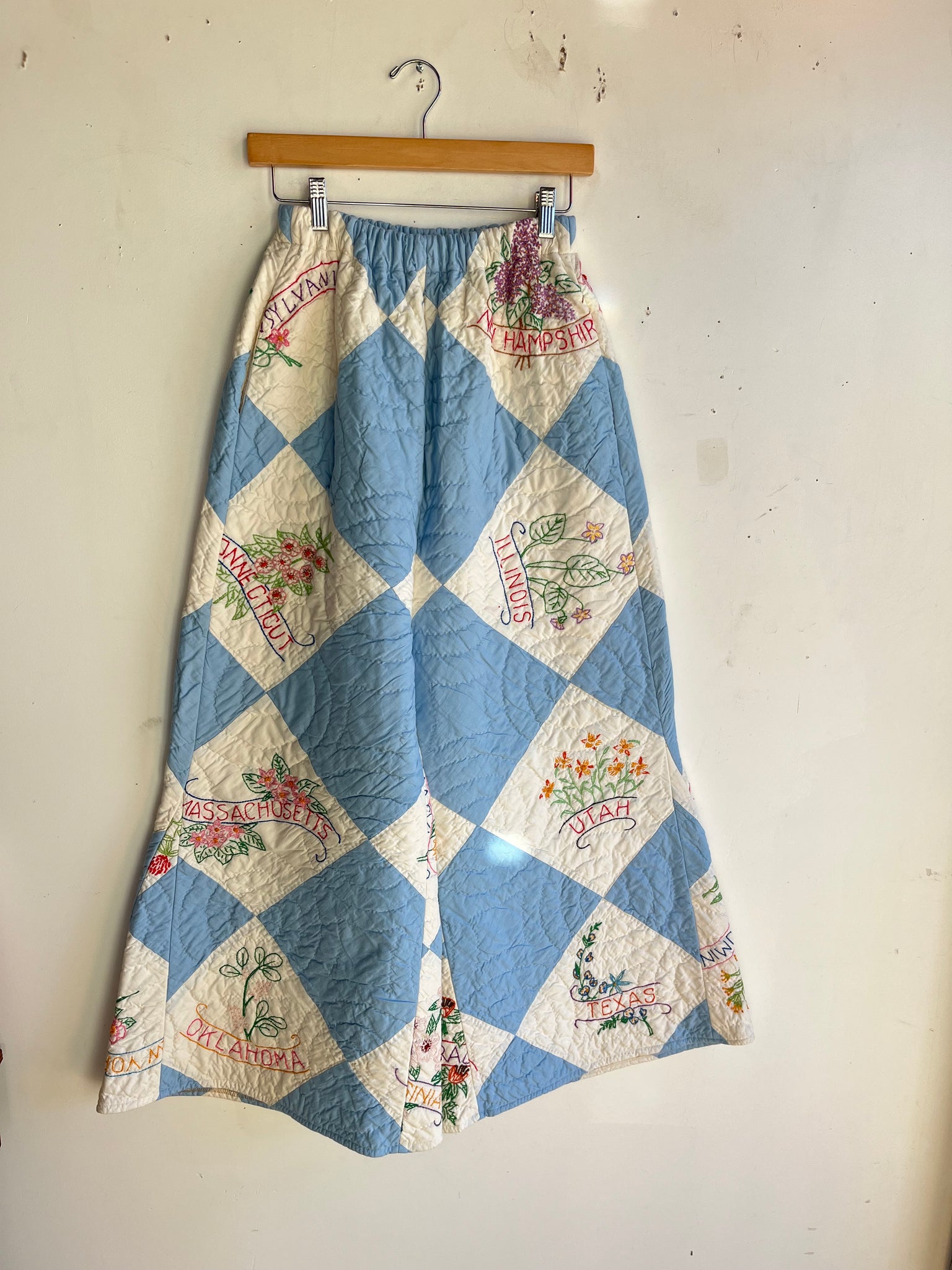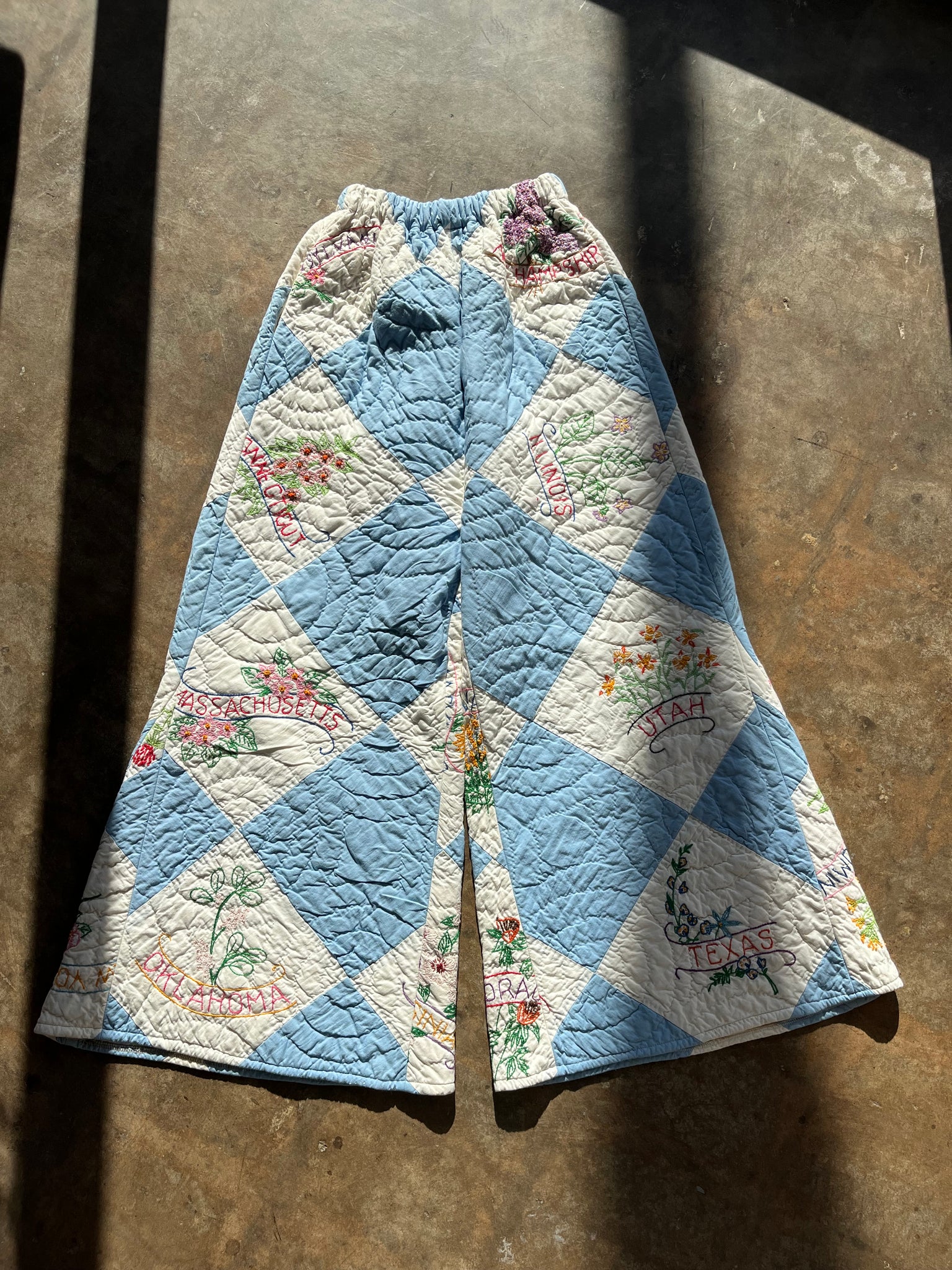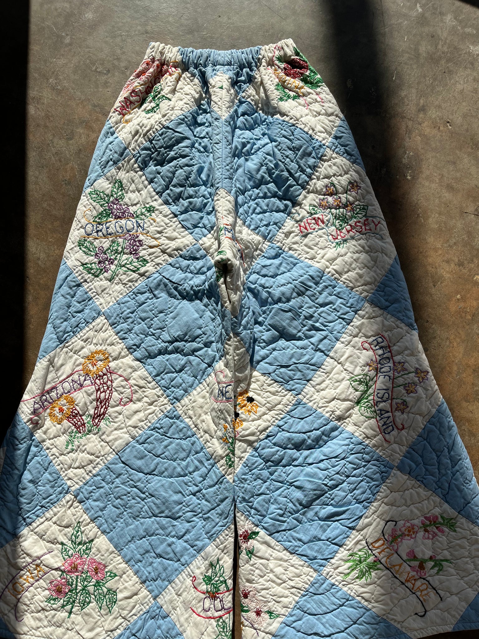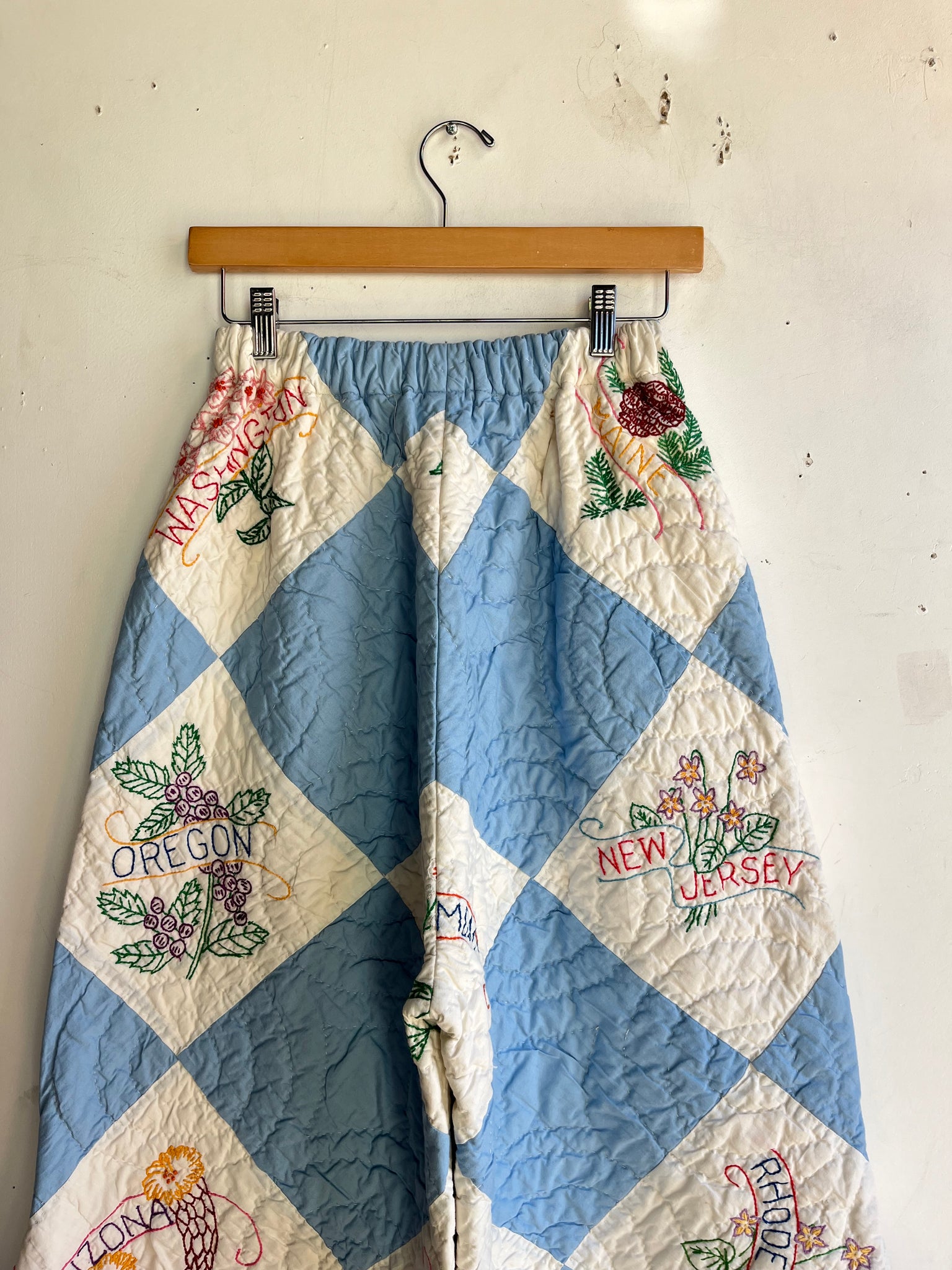 Handmade High Waist Quilt Palazzo Pants- Ultra Rare 1940s Embroidered State Flower