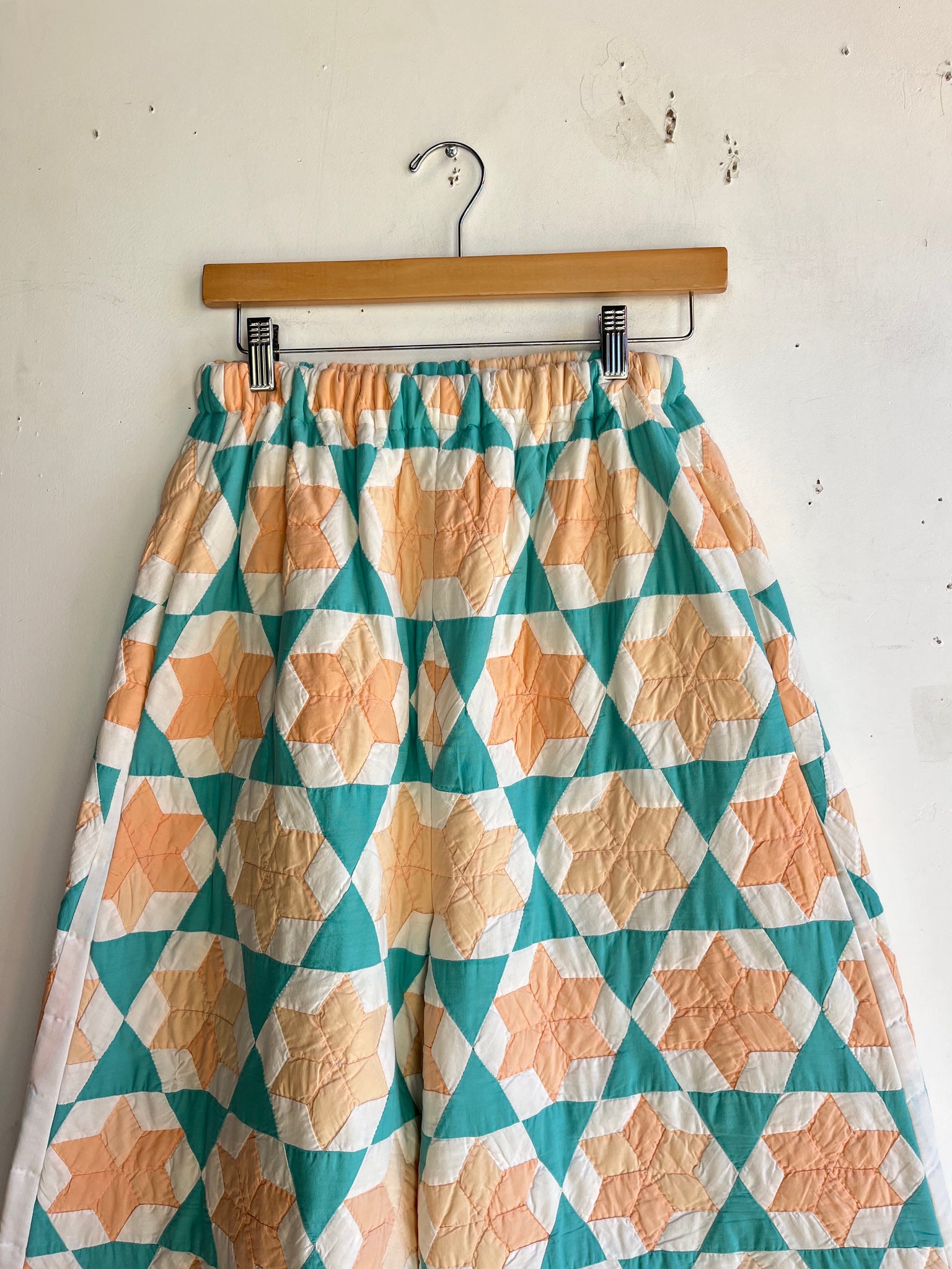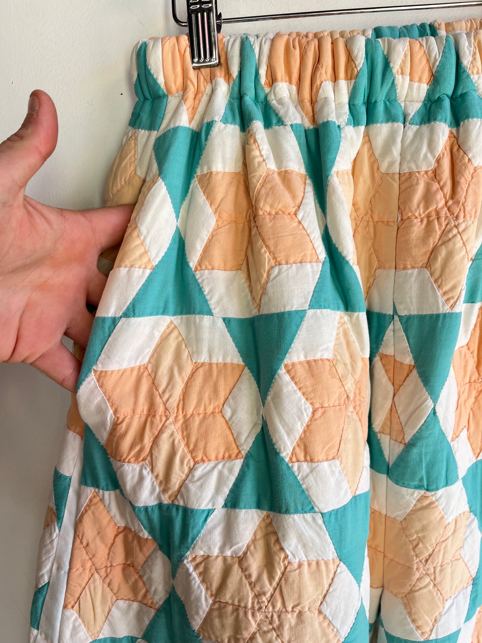 Handmade High Waist Quilt Palazzo Pants- Ultra Rare 1950s 6 Point Star in a Star