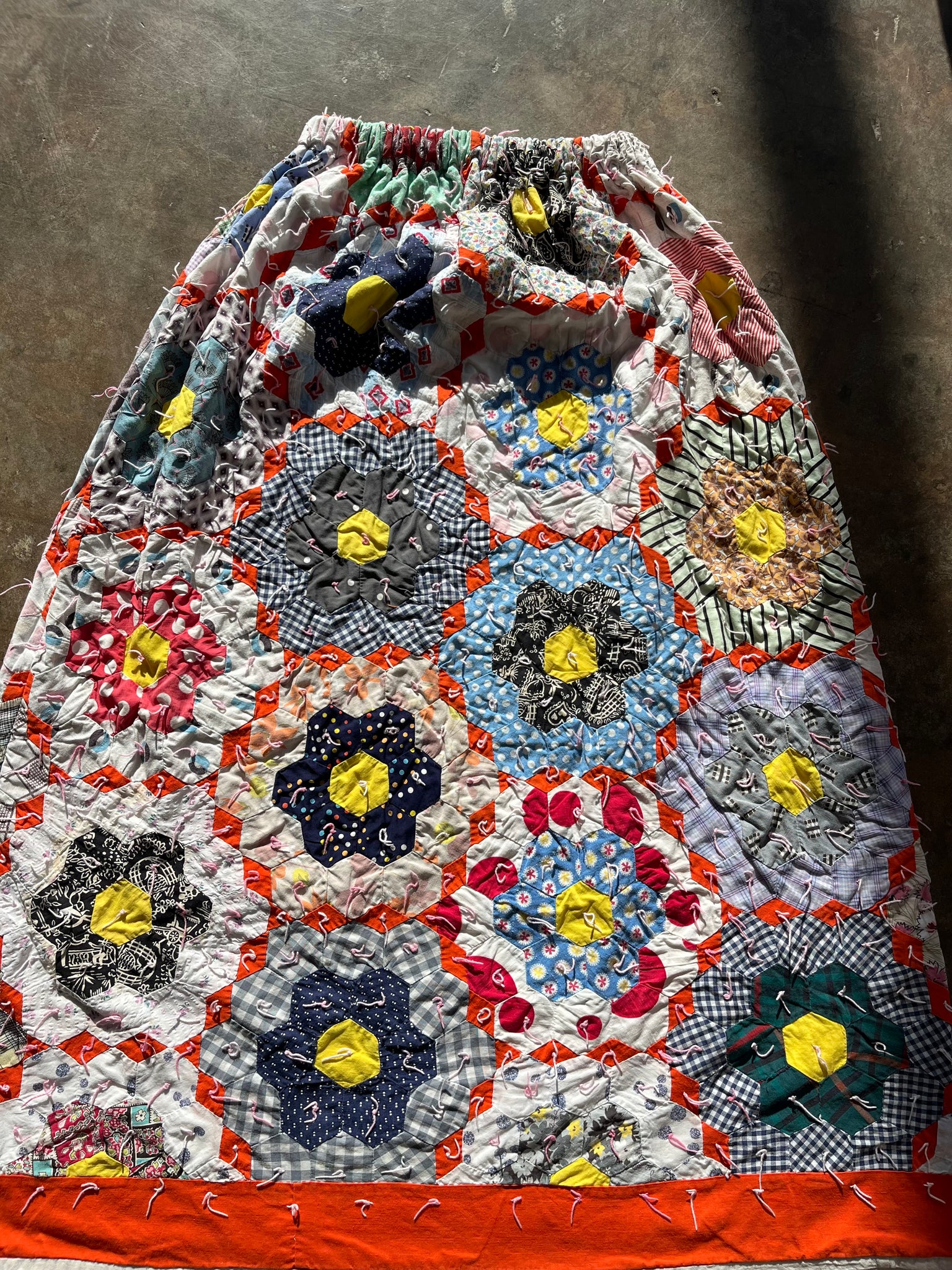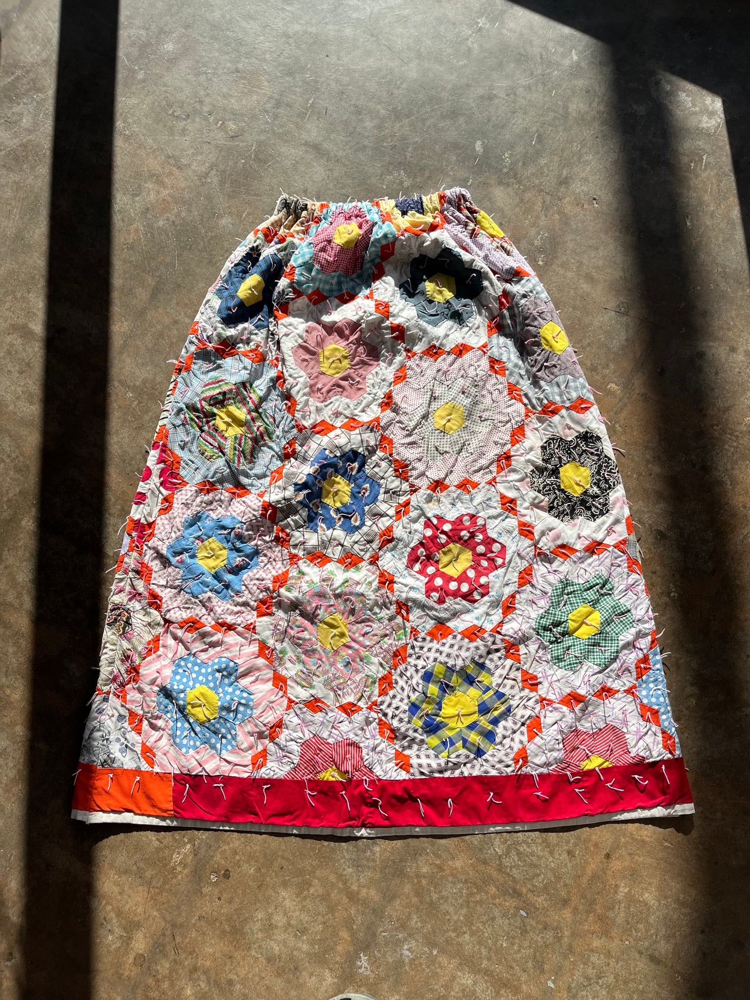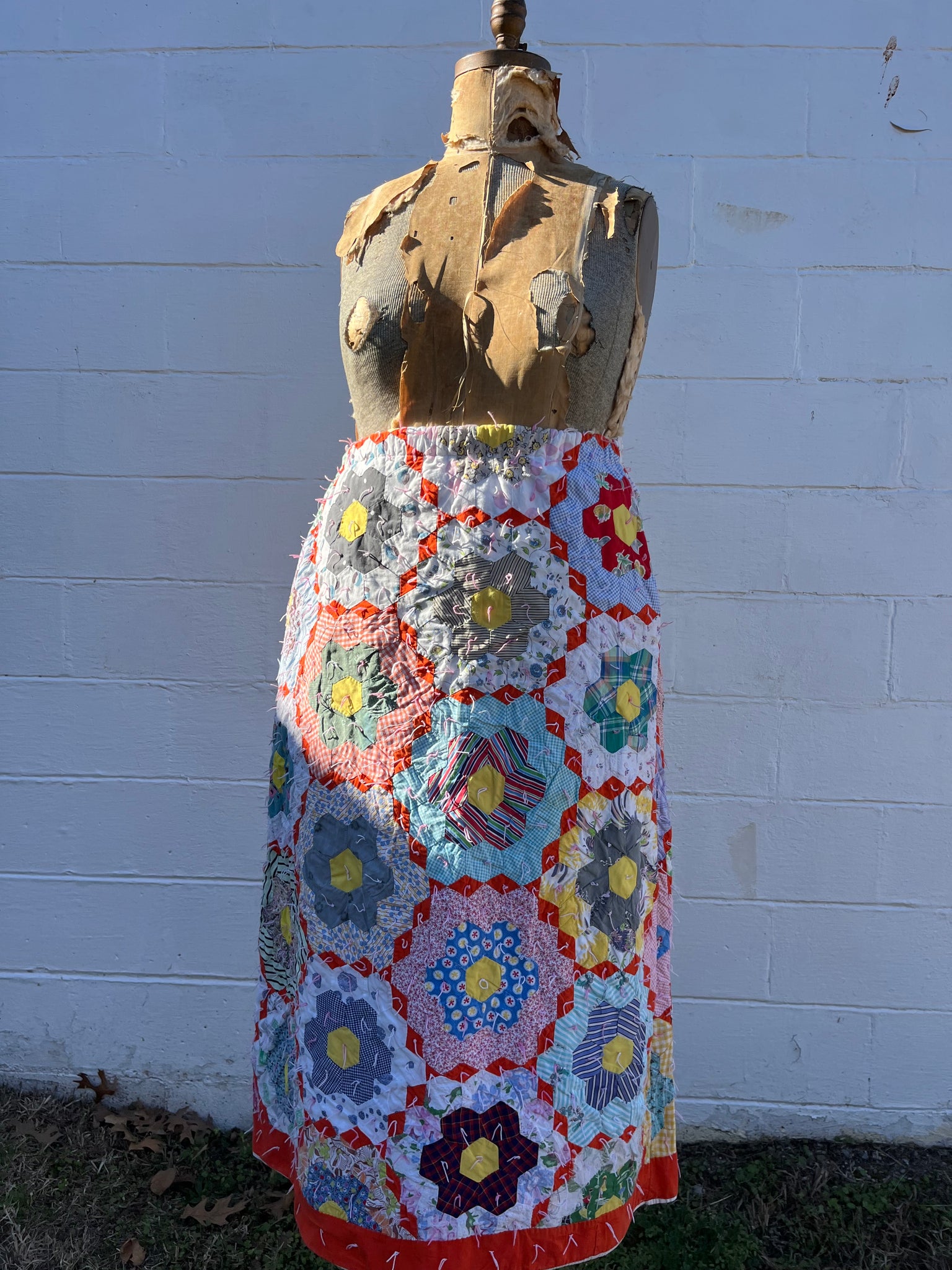 Handmade Quilt Skirt-Rare 1950s Grandmother's Flower Garden